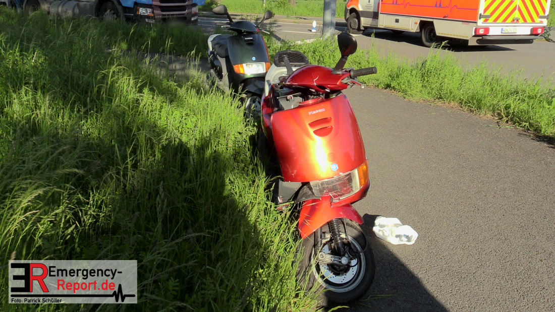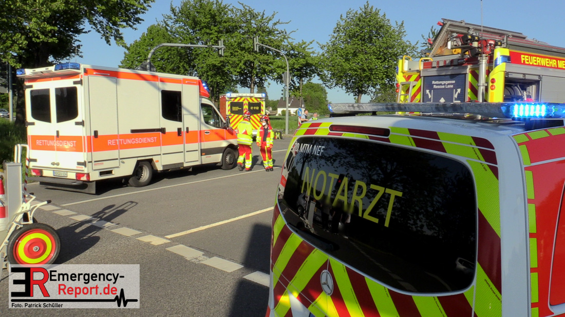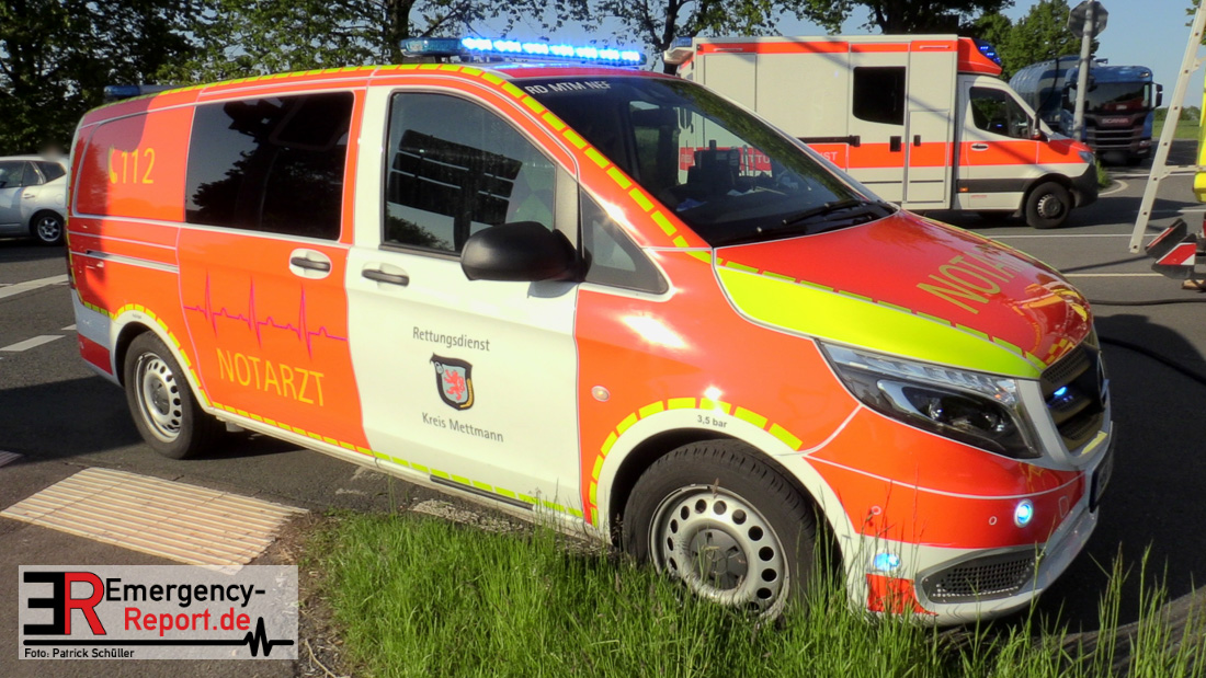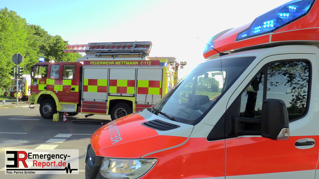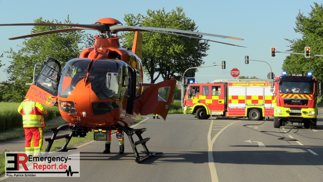 Am Sonntagabend (30. Mai 2021) stieß im Kreuzungsbereich Südring / Gruitener Weg in Mettmann der 18-jährige Fahrer eines VW Polo mit einem Kleinkraftrad einer 36-jährigen Wuppertalerin zusammen. Die 36-Jährige wurde schwer verletzt und mittels eines Rettungshubschraubers in eine Spezialklinik gebracht. Der leicht verletzte 18-Jährige wurde mit einem Rettungswagen ein nahegelegenes Krankenhaus gebracht.