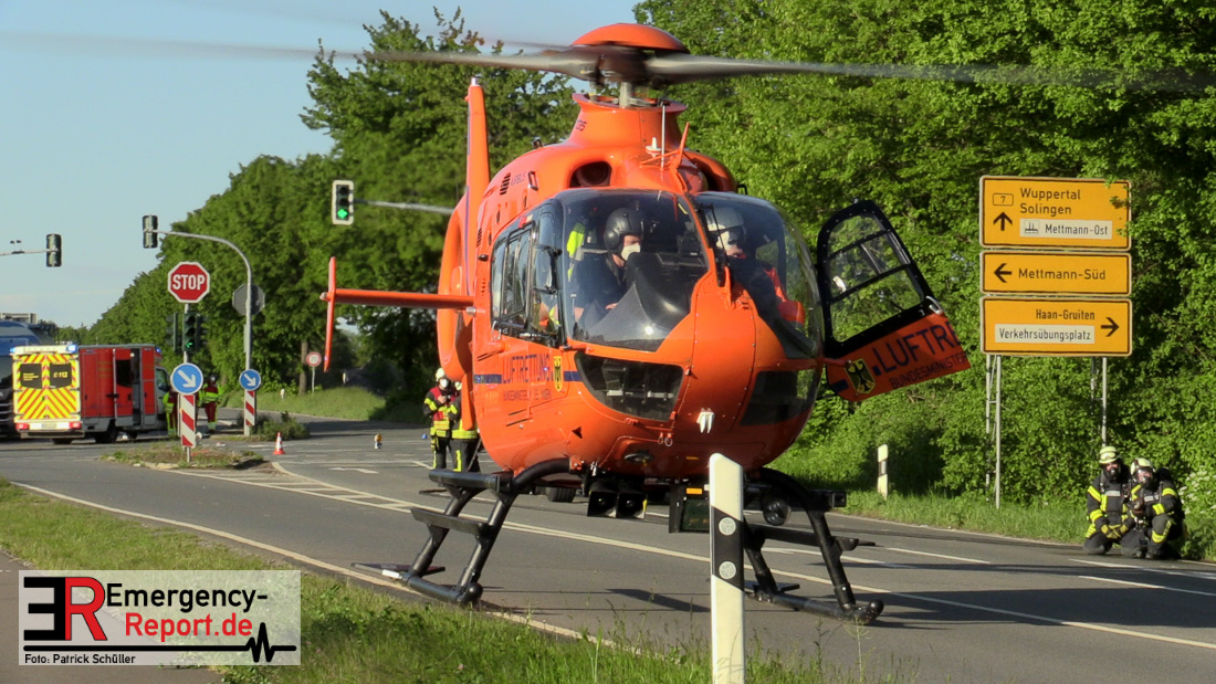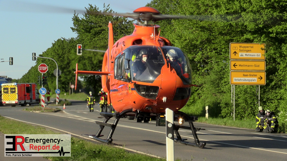Am Sonntagabend (30. Mai 2021) stieß im Kreuzungsbereich Südring / Gruitener Weg in Mettmann der 18-jährige Fahrer eines VW Polo mit einem Kleinkraftrad einer 36-jährigen Wuppertalerin zusammen. Die 36-Jährige wurde schwer verletzt und mittels eines Rettungshubschraubers in eine Spezialklinik gebracht. Der leicht verletzte 18-Jährige wurde mit einem Rettungswagen ein nahegelegenes Krankenhaus gebracht.