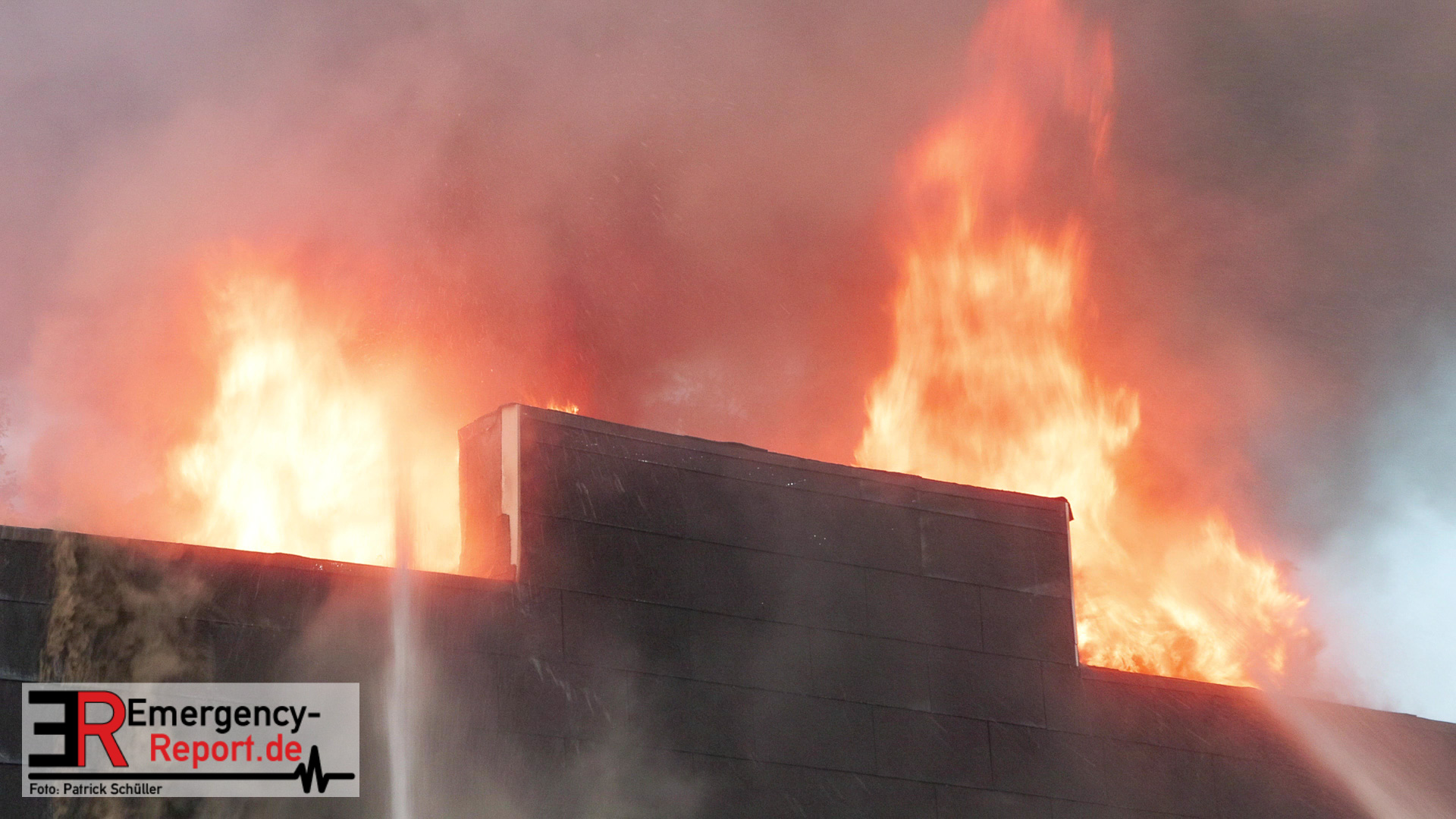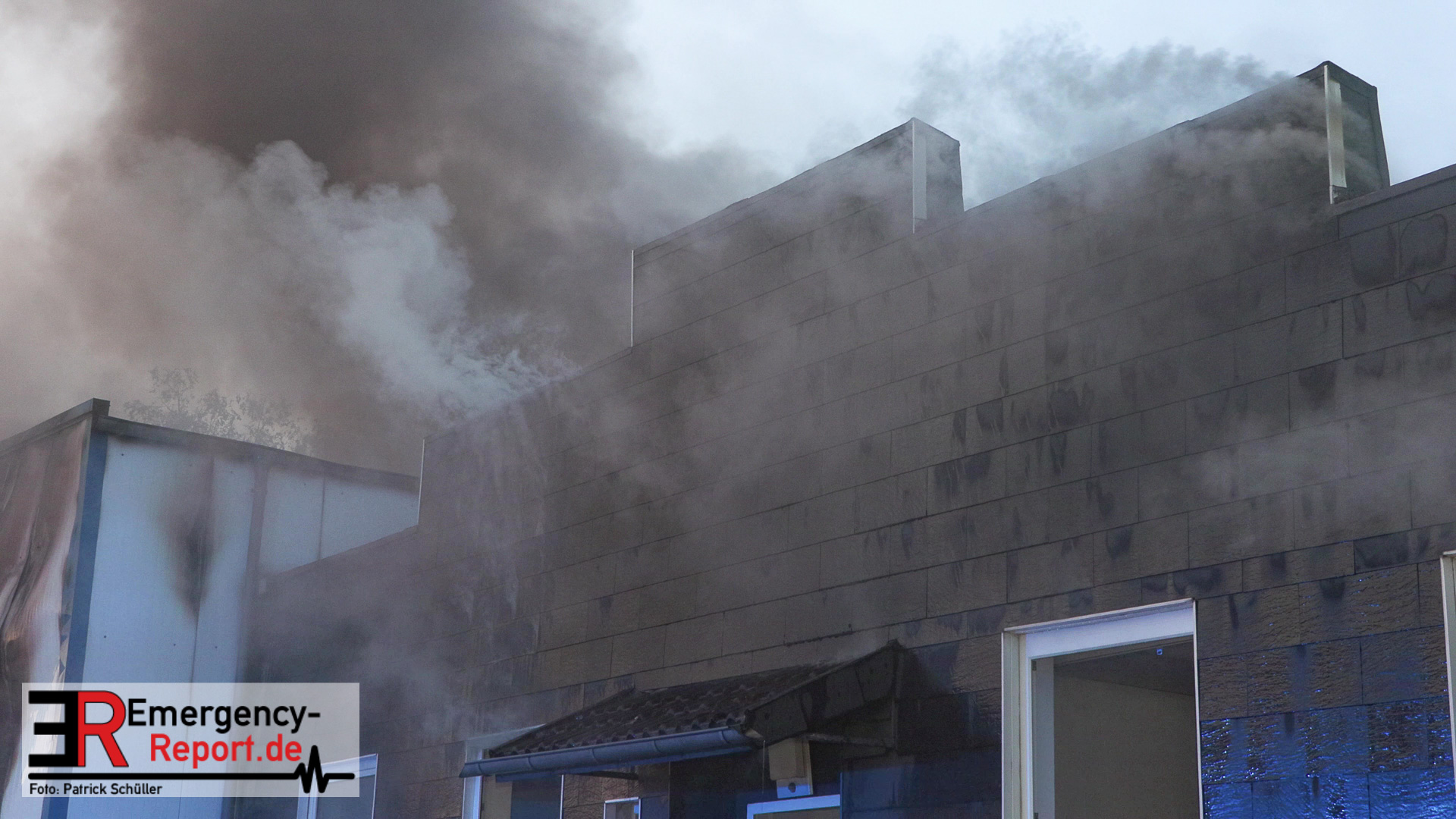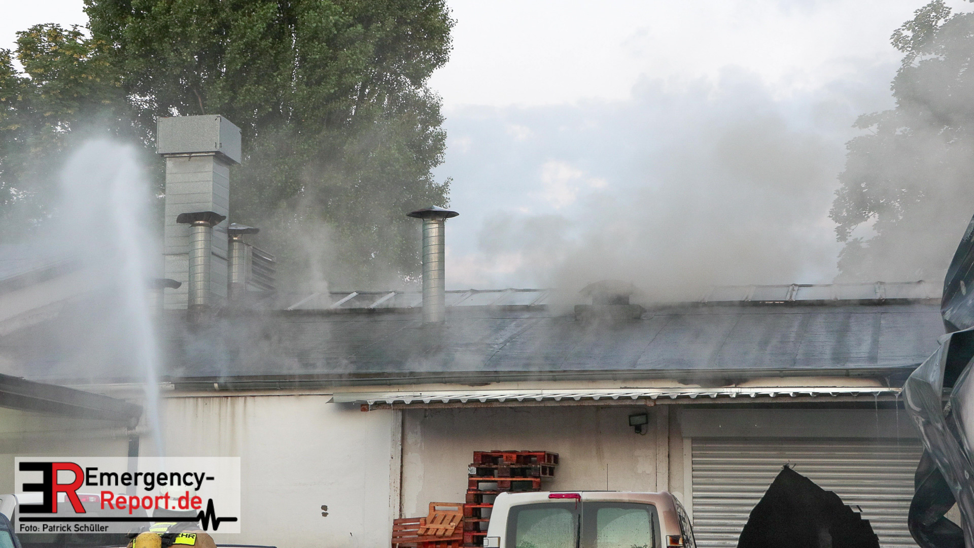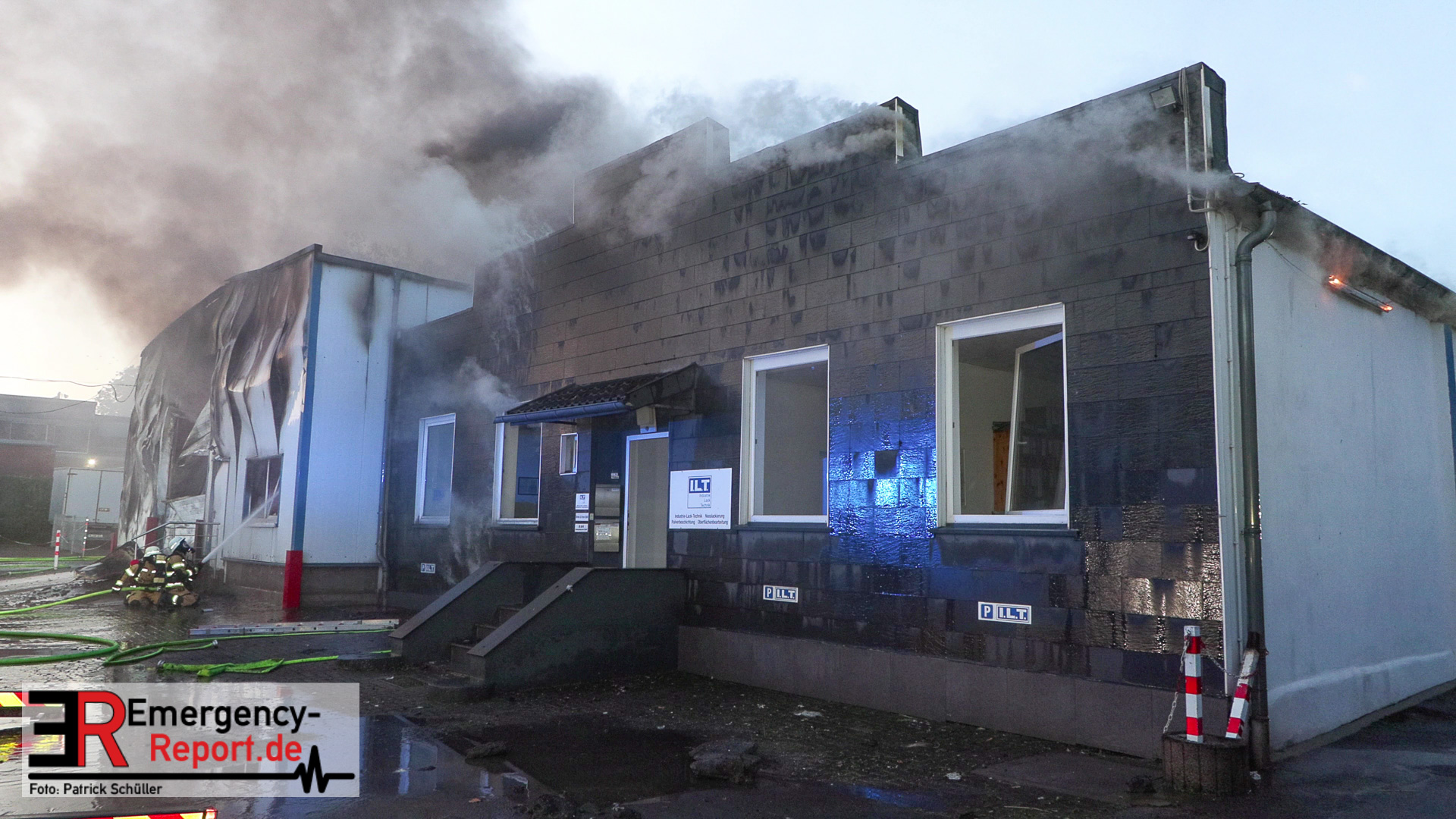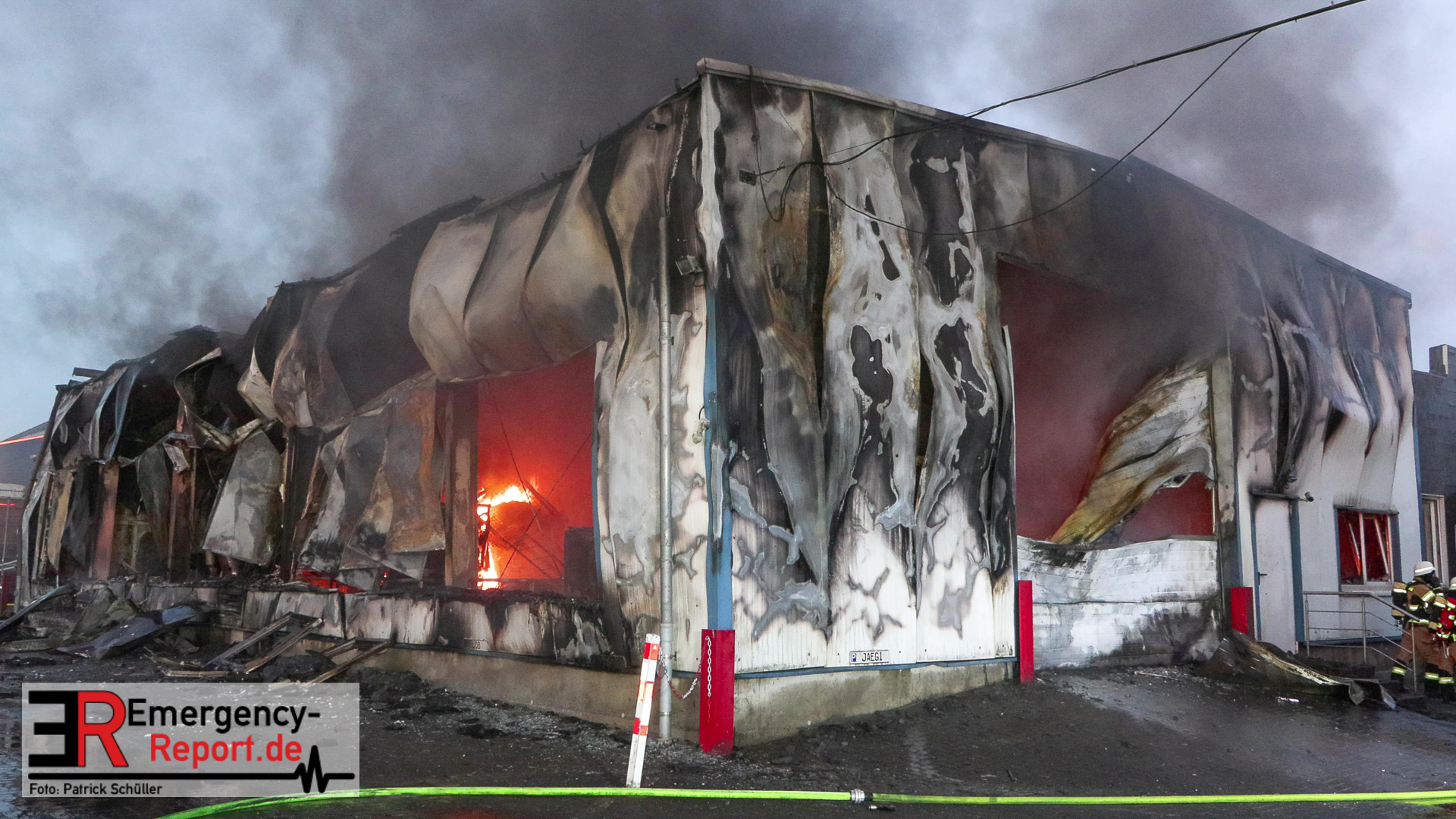 Bei der betroffenen Halle handelt es sich um den Firmensitz von drei Firmen. Diese wurde bereits durch die massive Brandausbreitung massiv in Mitleidenschaft gezogen und die darin gelagerten Materialien (Kunststoffgranulat und Lacke) sorgten für eine weithin sichtbare und wahrnehmbare Rauchwolke.