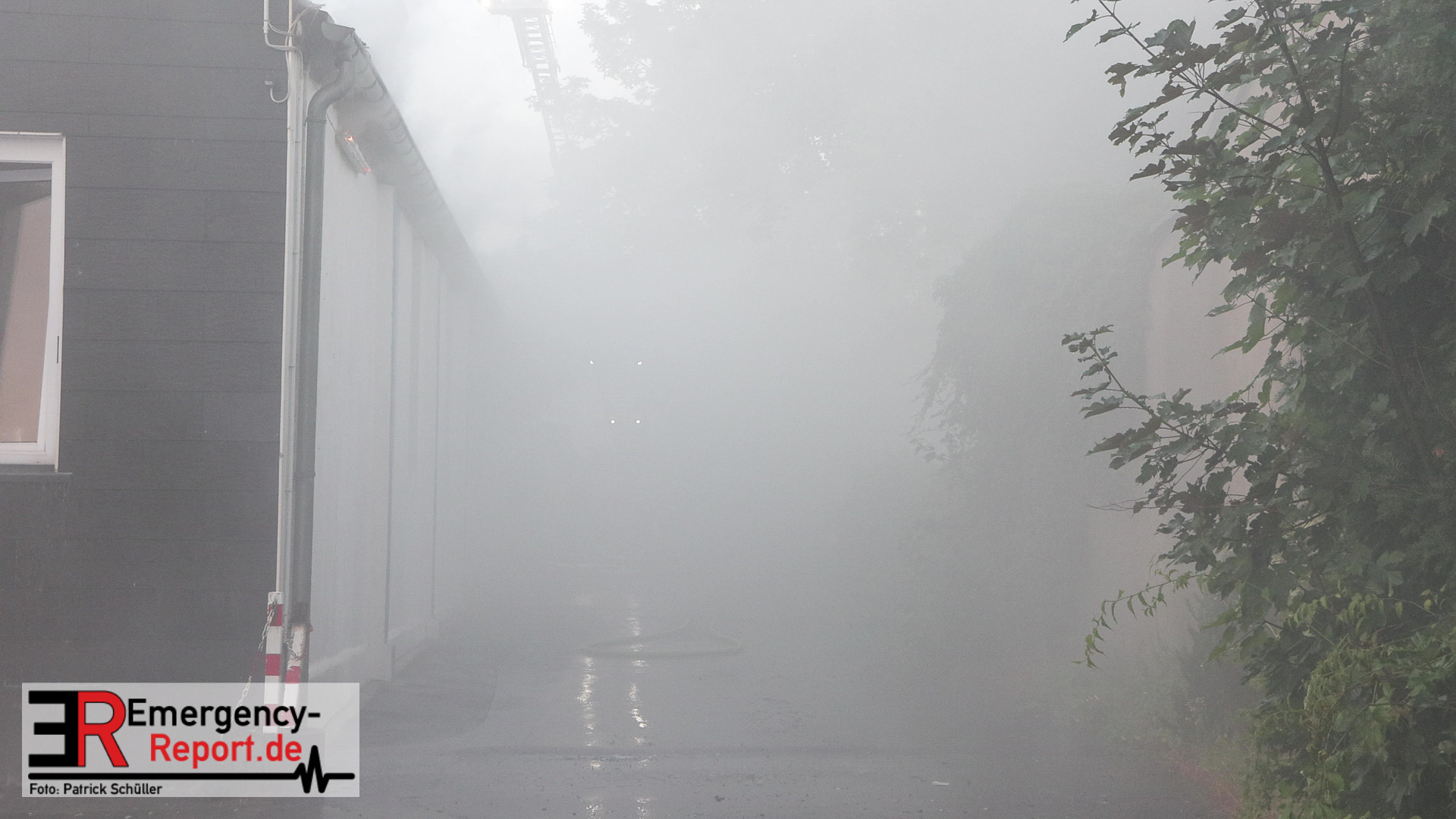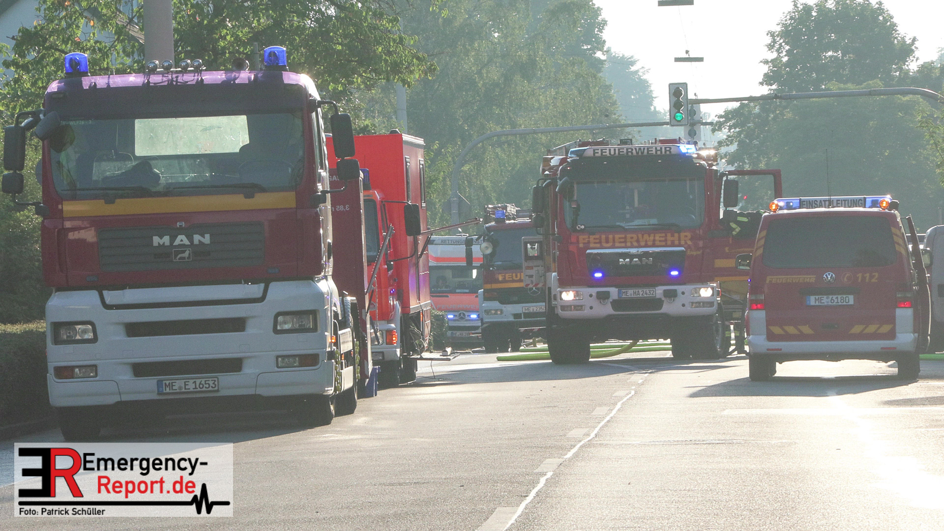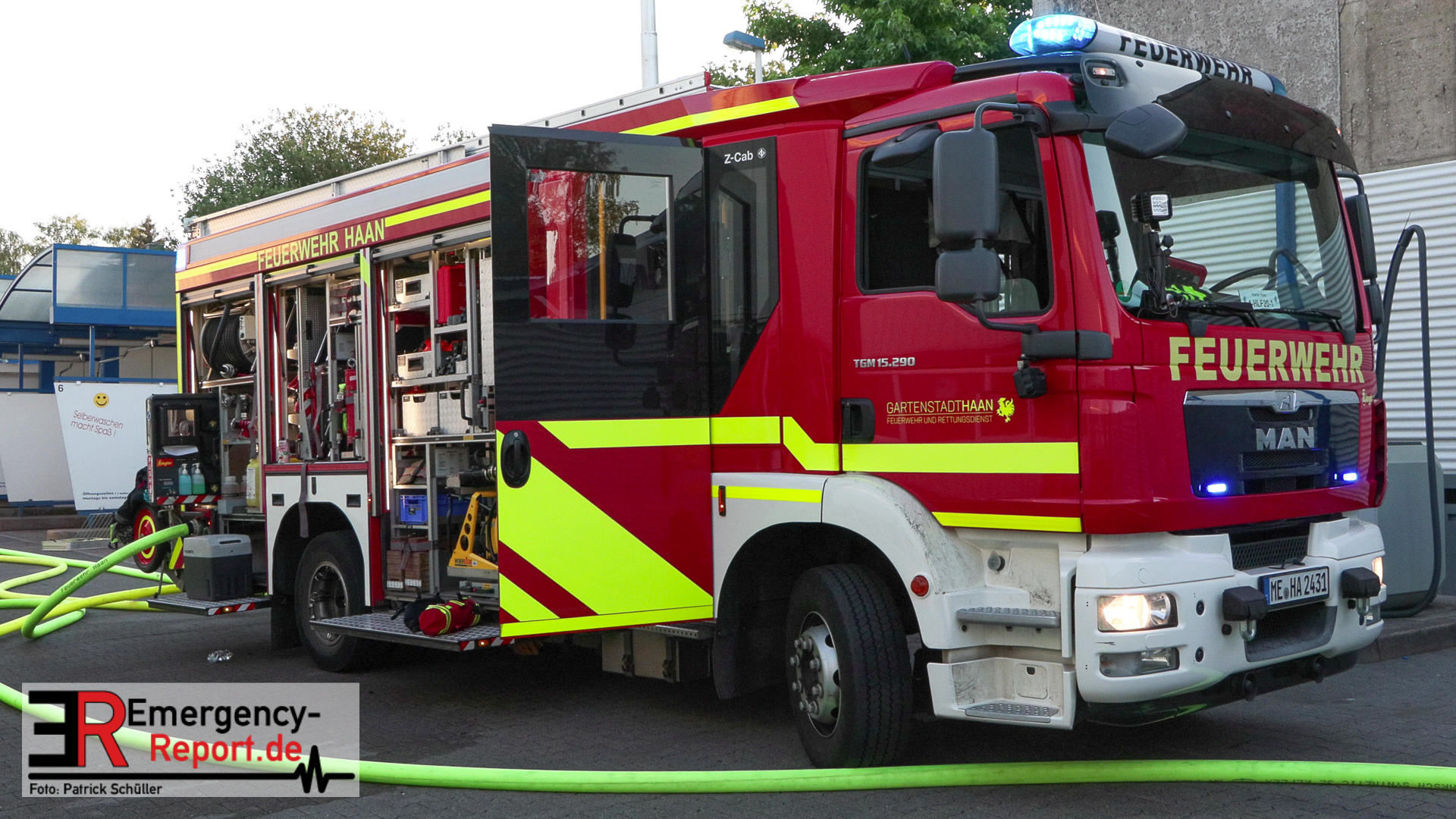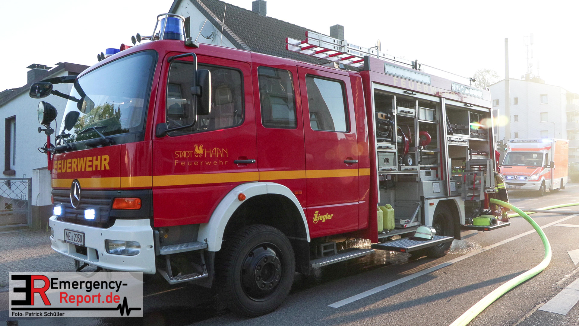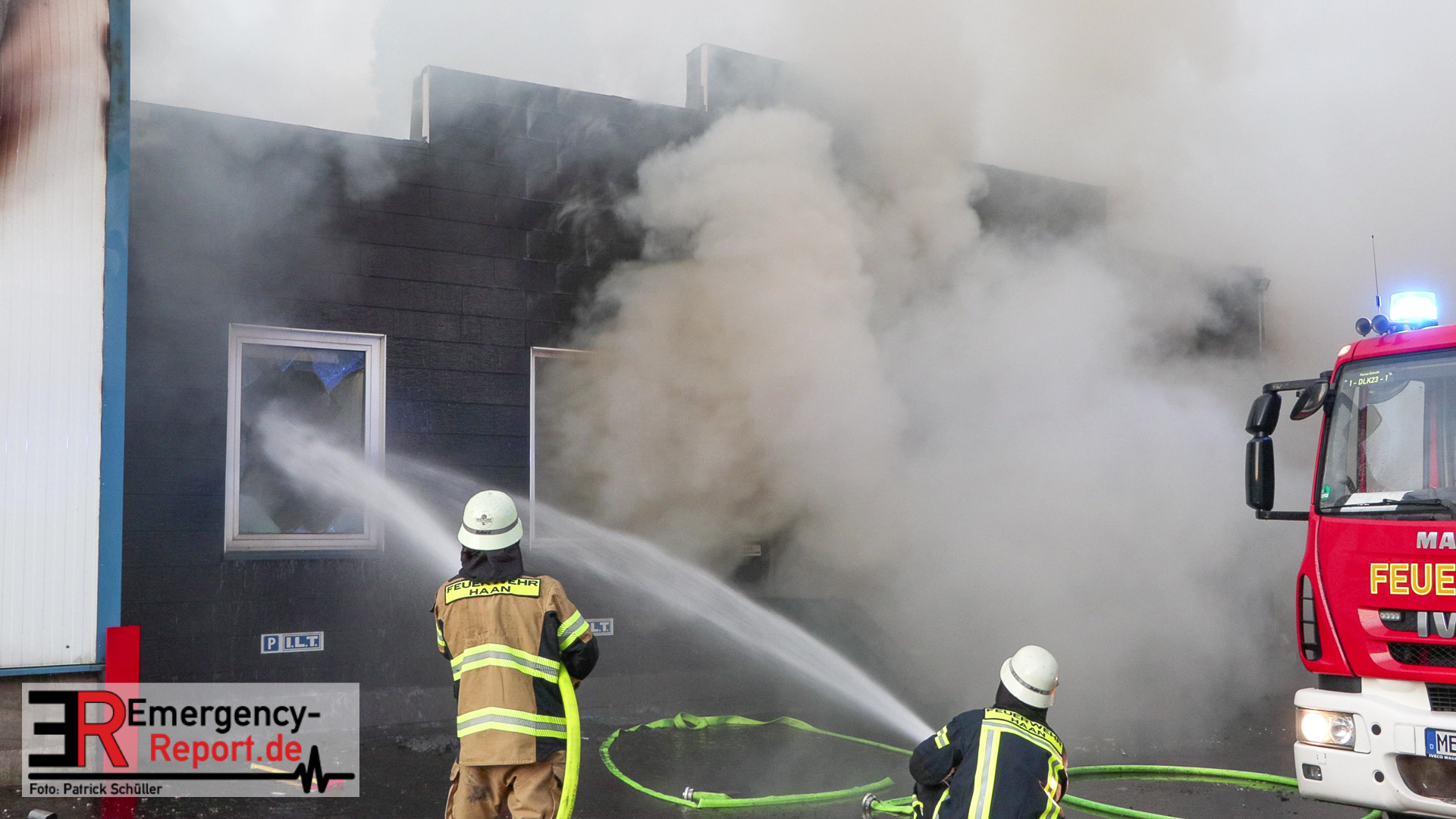Beim Eintreffen der ersten Einsatzkräfte war bereits Feuerschein deutlich zu erkennen, so dass der Einsatzleiter direkt das Alarmstichwort erhöhen ließ und damit Stadtalarm für Haan auslöste. Aufgrund des Schadensbildes wurde auch umgehend überörtliche Hilfe über die Kreisleitstelle angefordert.