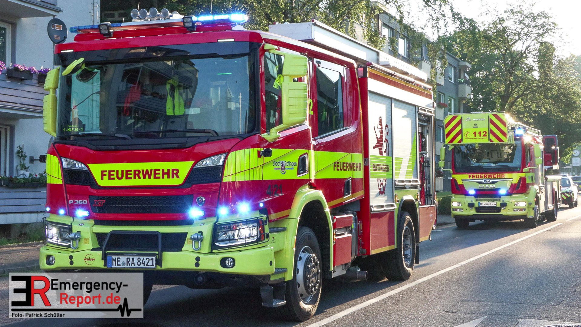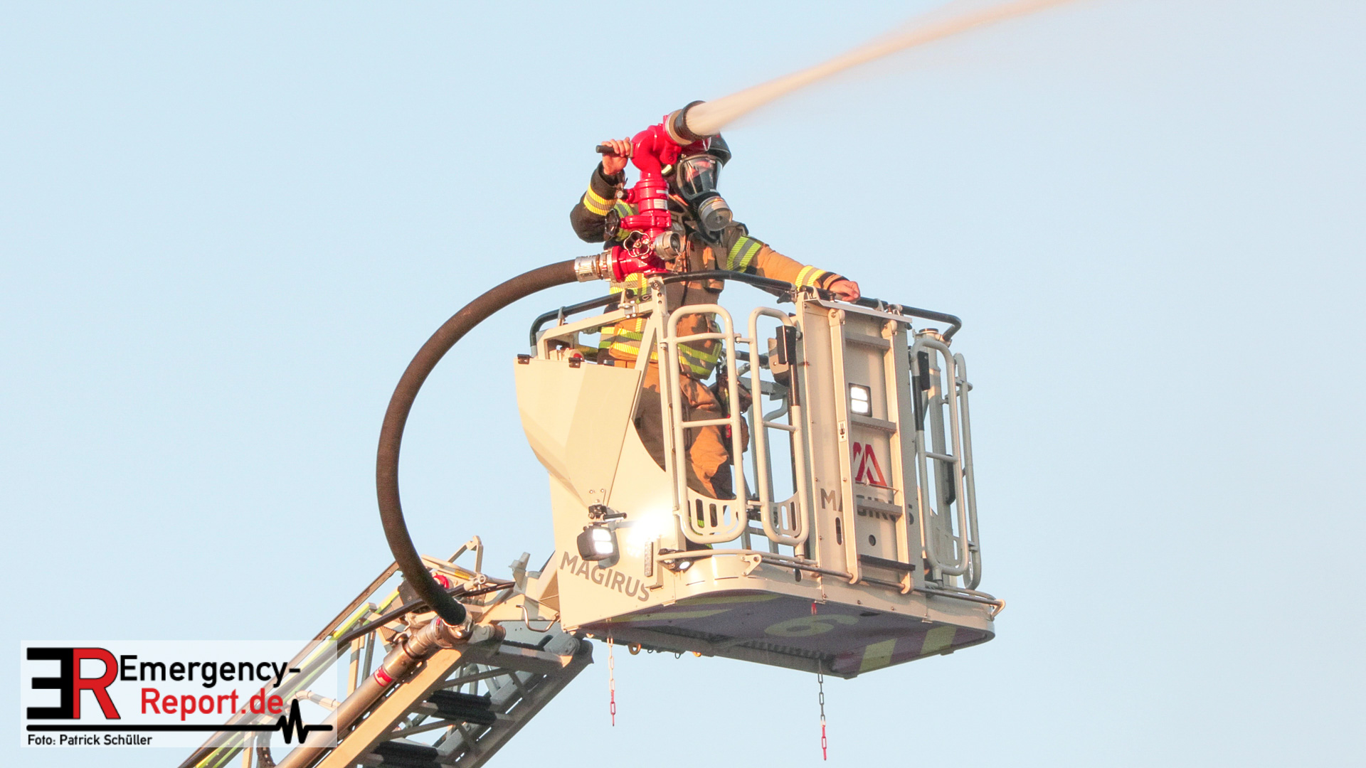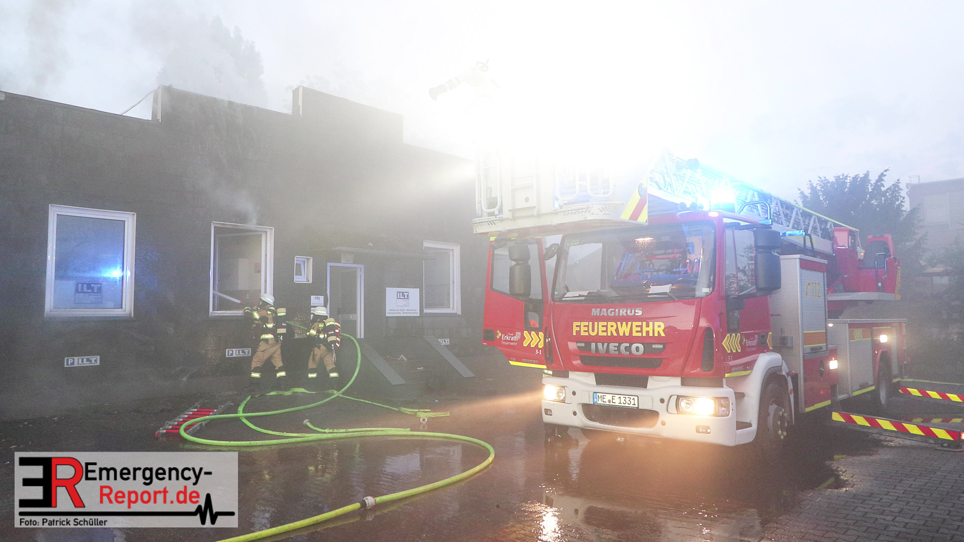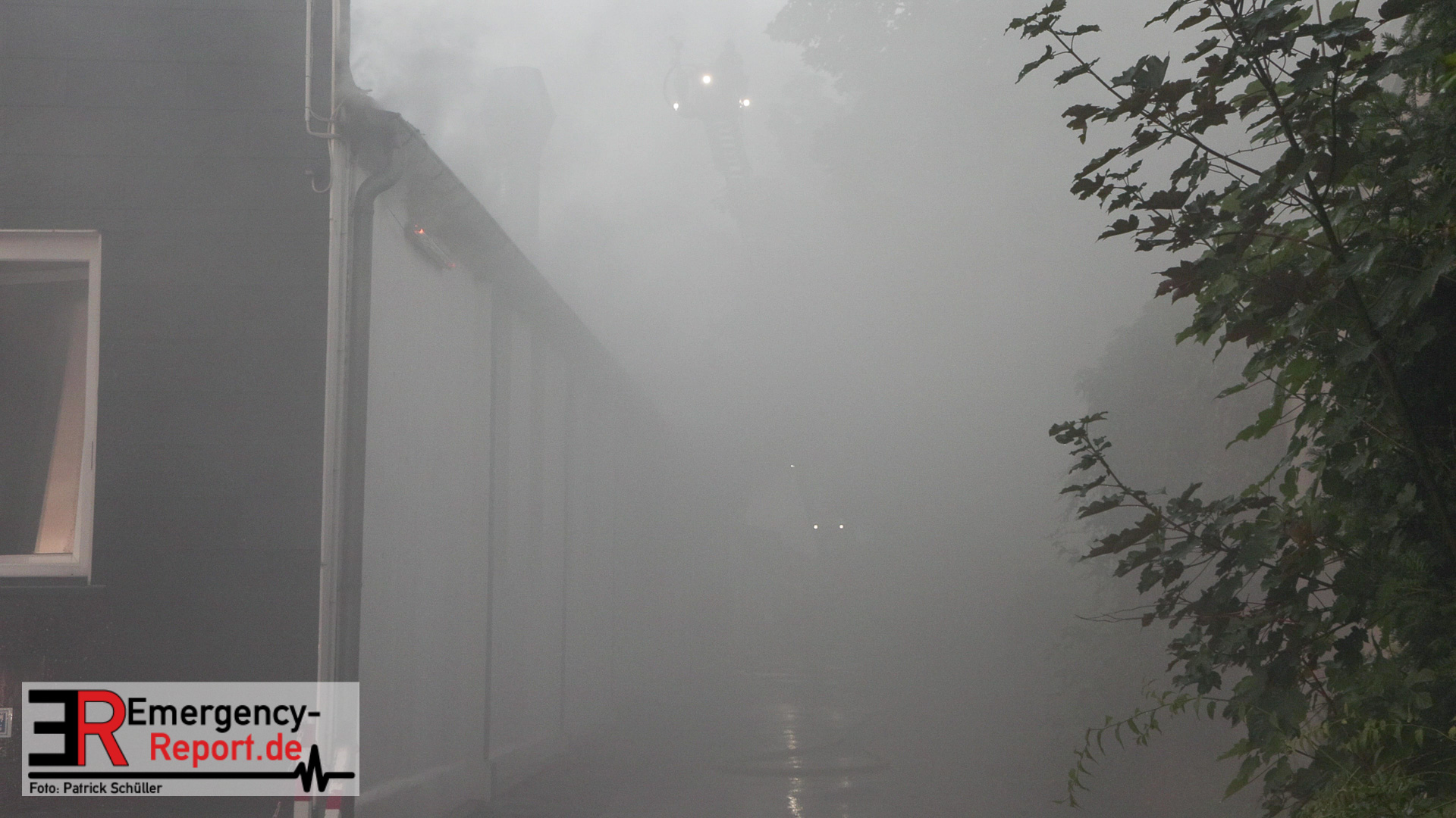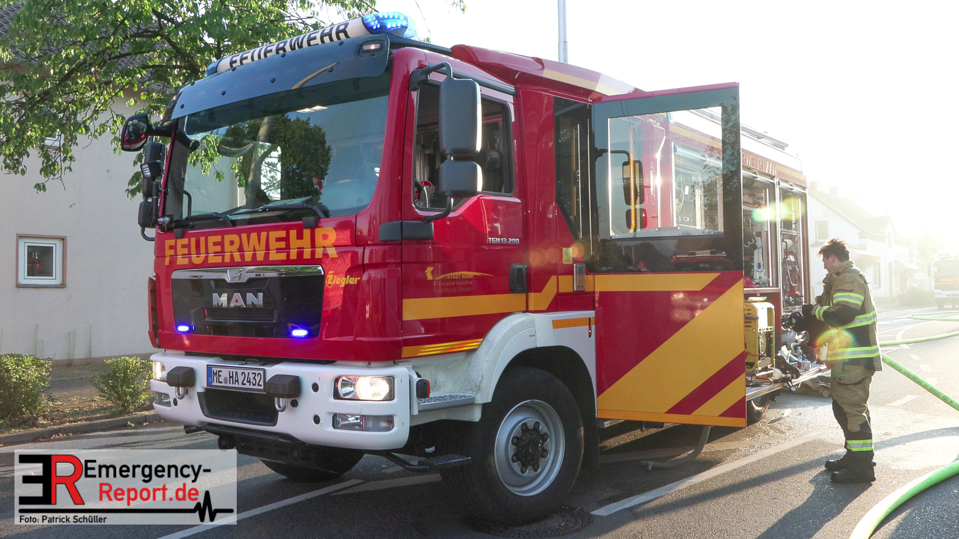 Beim Eintreffen der ersten Einsatzkräfte war bereits Feuerschein deutlich zu erkennen, so dass der Einsatzleiter direkt das Alarmstichwort erhöhen ließ und damit Stadtalarm für Haan auslöste. Aufgrund des Schadensbildes wurde auch umgehend überörtliche Hilfe über die Kreisleitstelle angefordert.
