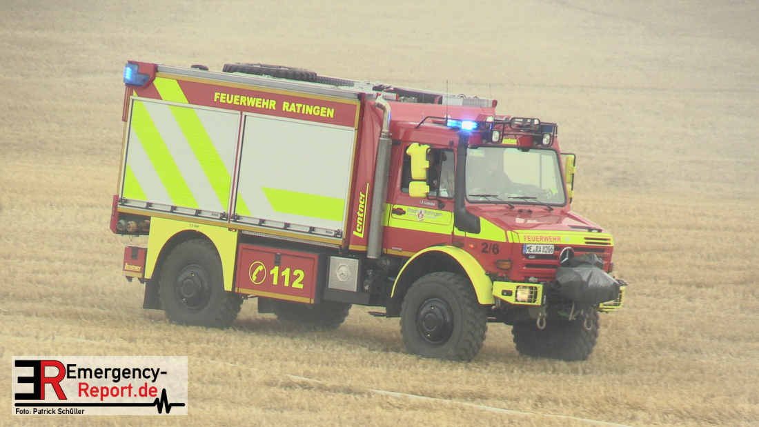 Bereits auf der Anfahrt war eine massive Rauchentwicklung für die Kräfte sichtbar. Bei Eintreffen der ersten Einsatzkräfte brannte ein Stoppelfeld, sowie einige Strohballen lichterloh. Durch den Wind breiteten sich die Flammen rasend schnell aus. Umgehend wurde ein umfangreicher Löschangriff eingeleitet und parallel die Alarmstufe auf Vollalarm mit Sirene erhöht. Im weiteren Einsatzverlauf wurden überörtliche Kräfte der Feuerwehr Ratingen angefordert. Der Grundschutz auf der Feuerwache in Mettmann wurde durch Einsatzkräfte der Feuerwehr Erkrath sichergestellt. Das DRK versorgte die Einsatzkräfte mit Getränken. Die Bevölkerung wurde aufgrund der starken Rauchentwicklung über die Warn-App „NINA“ dazu aufgefordert Fenster und Türen im Bereich der Einsatzstelle geschlossen zu halten. Die Feuerwehr schätzt die abgebrannte Fläche auf ca. 40.000 – 45.000m². Insgesamt waren 70 Kräfte im Einsatz.