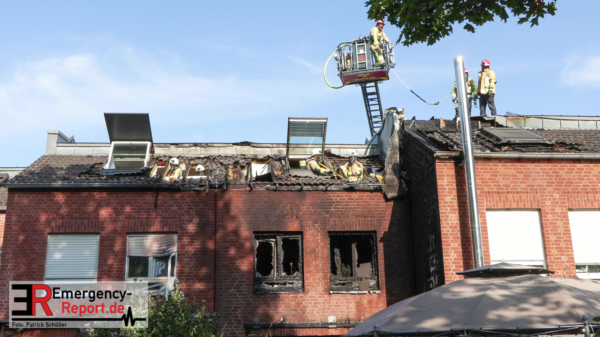 Wie die Stadt Monheim am Rhein bereits in einer eigenen Pressemeldung berichtet hatte, kam es am Dienstagnachmittag (30. August 2022) im Monheimer Ortsteil Baumberg zu dem Brand eines Reihenmittelhauses an der Schlegelstraße. Das Bewohnerpaar musste wegen des Verdachts lebensgefährlicher Verletzungen mit zwei Rettungshubschraubern in Spezialkliniken geflogen werden. Die Polizei hat Ermittlungen zur Brandursache eingeleitet.