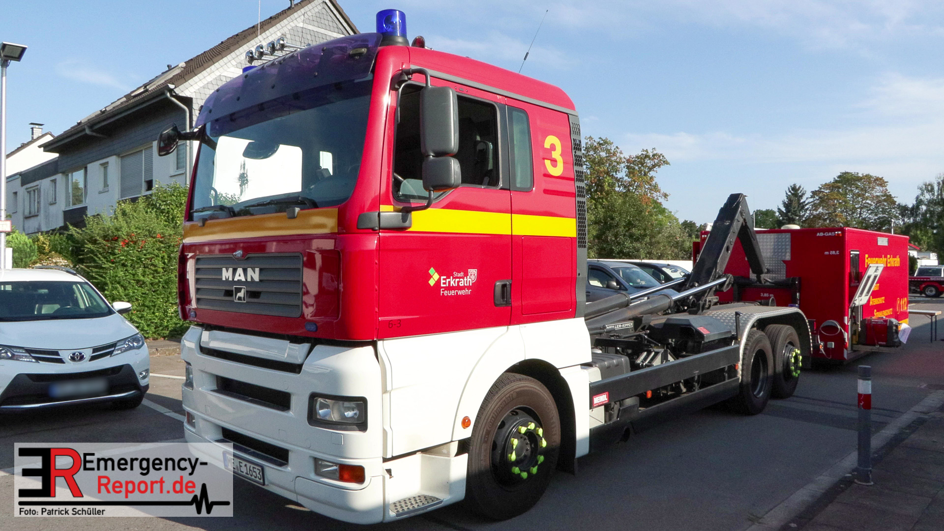 Gegen 15:10 Uhr wurden Feuerwehr und Polizei von Anwohnern über ein in Vollbrand stehendes Reihenmittelhaus an der Schlegelstraße informiert. Als die Polizei am Brandort eintraf, hatte die Feuerwehr der Stadt Monheim bereits Stadtalarm ausgelöst und ihren Lösch- und rettungsdienstlichen Einsatz begonnen. Hierbei wurde sie im weiteren Verlauf unterstützt durch Einheiten aus Langenfeld, Erkrath, Ratingen und Hilden.