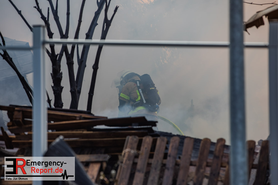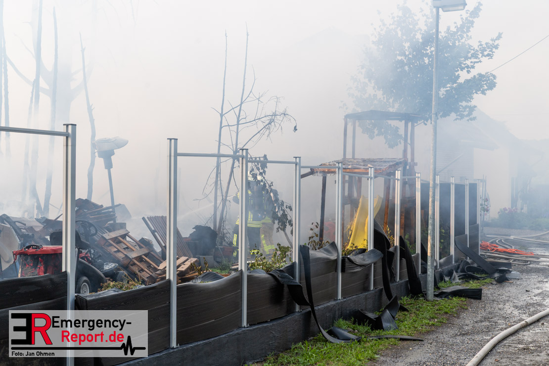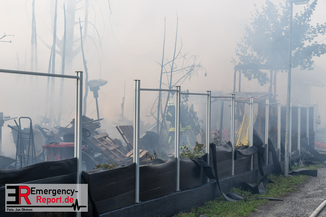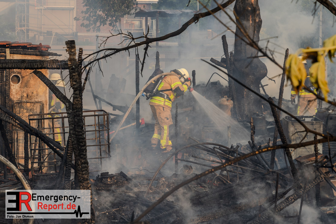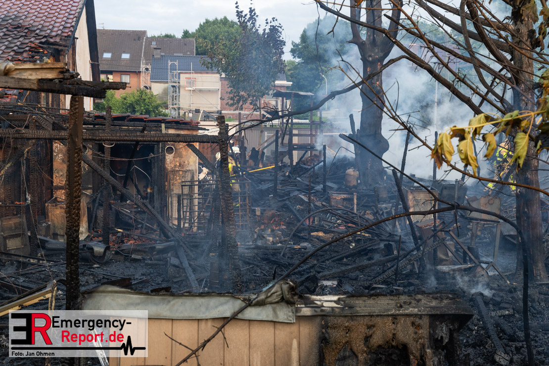 und Brabanter Straße brannten auf einer Fläche von 20 mal 30 Metern Bauten in einem Garten. Die Rauchsäule war weithin sichtbar.