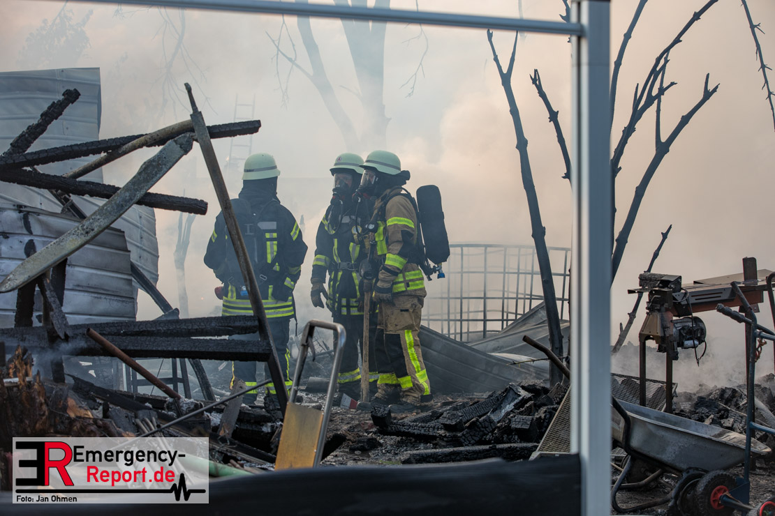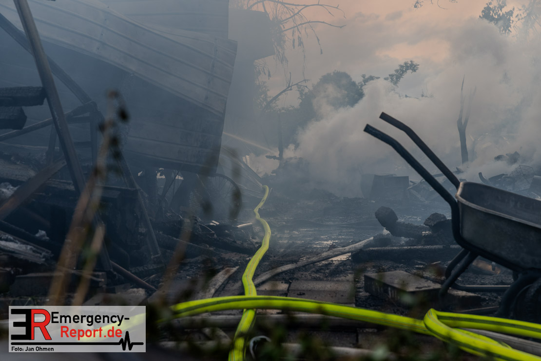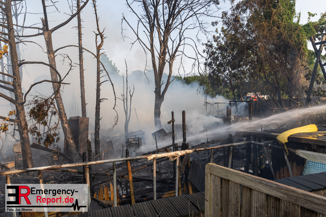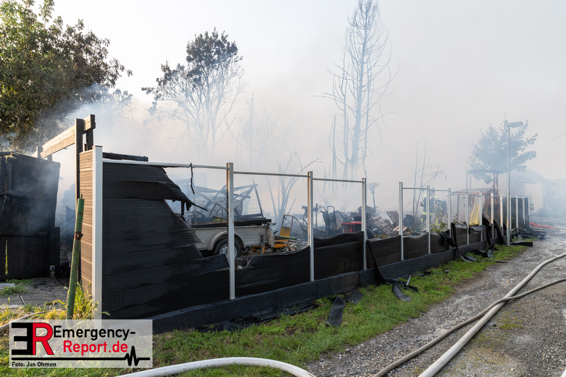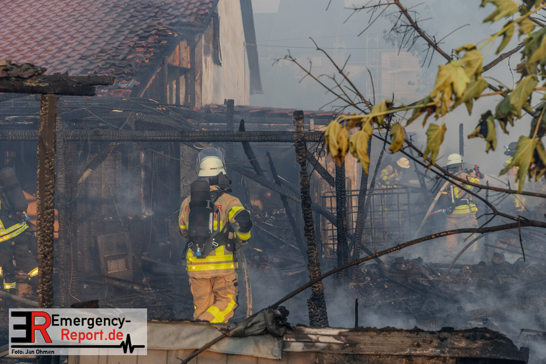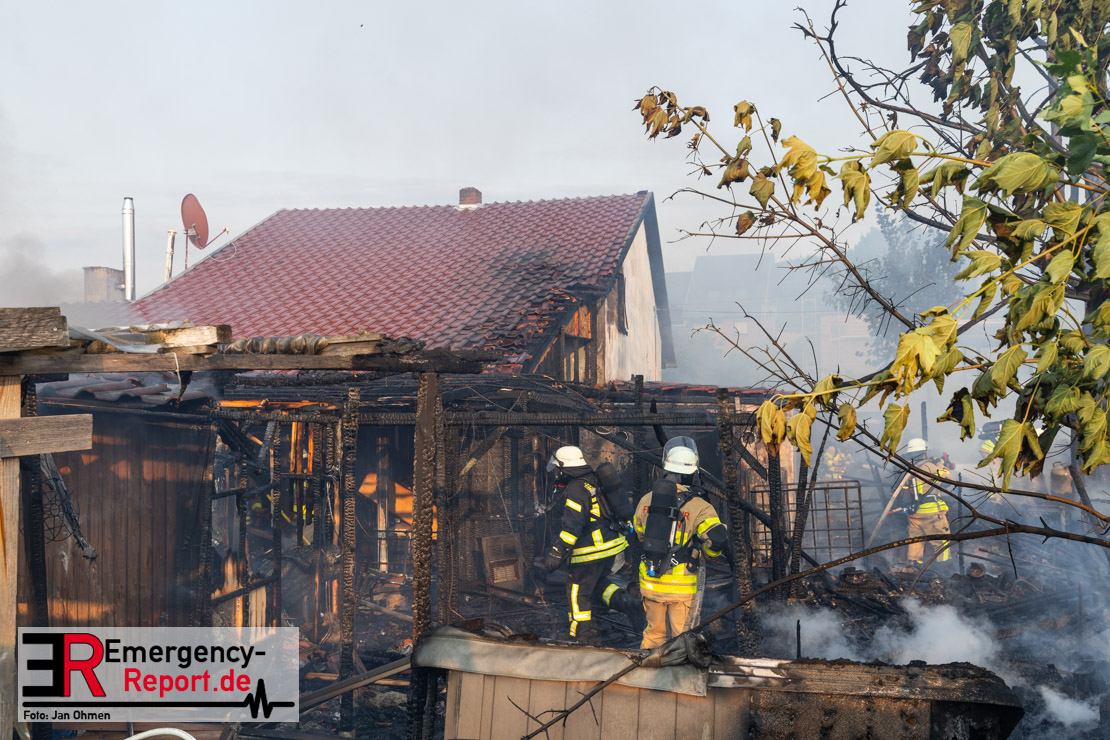 und Brabanter Straße brannten auf einer Fläche von 20 mal 30 Metern Bauten in einem Garten. Die Rauchsäule war weithin sichtbar.