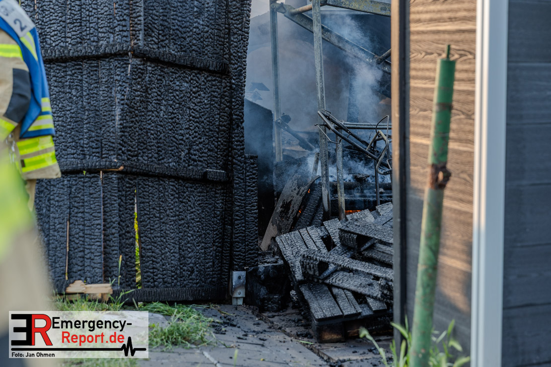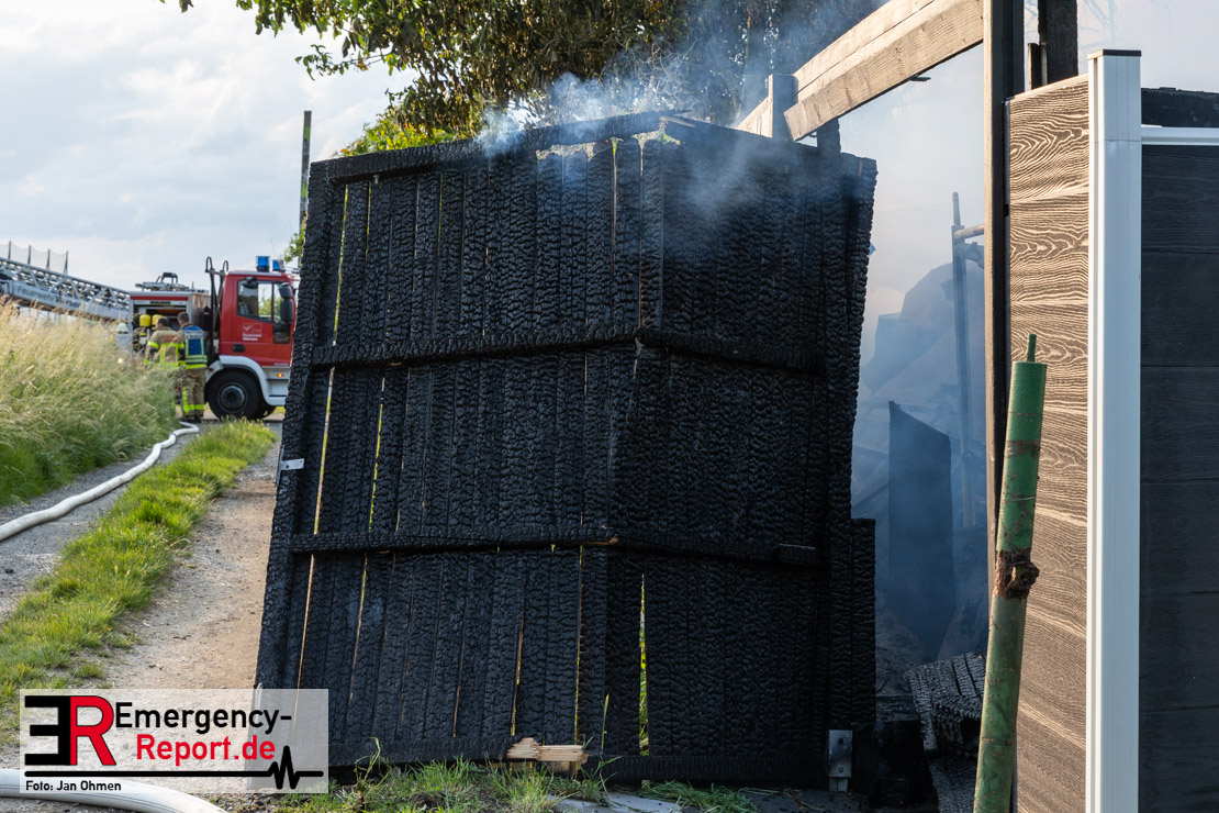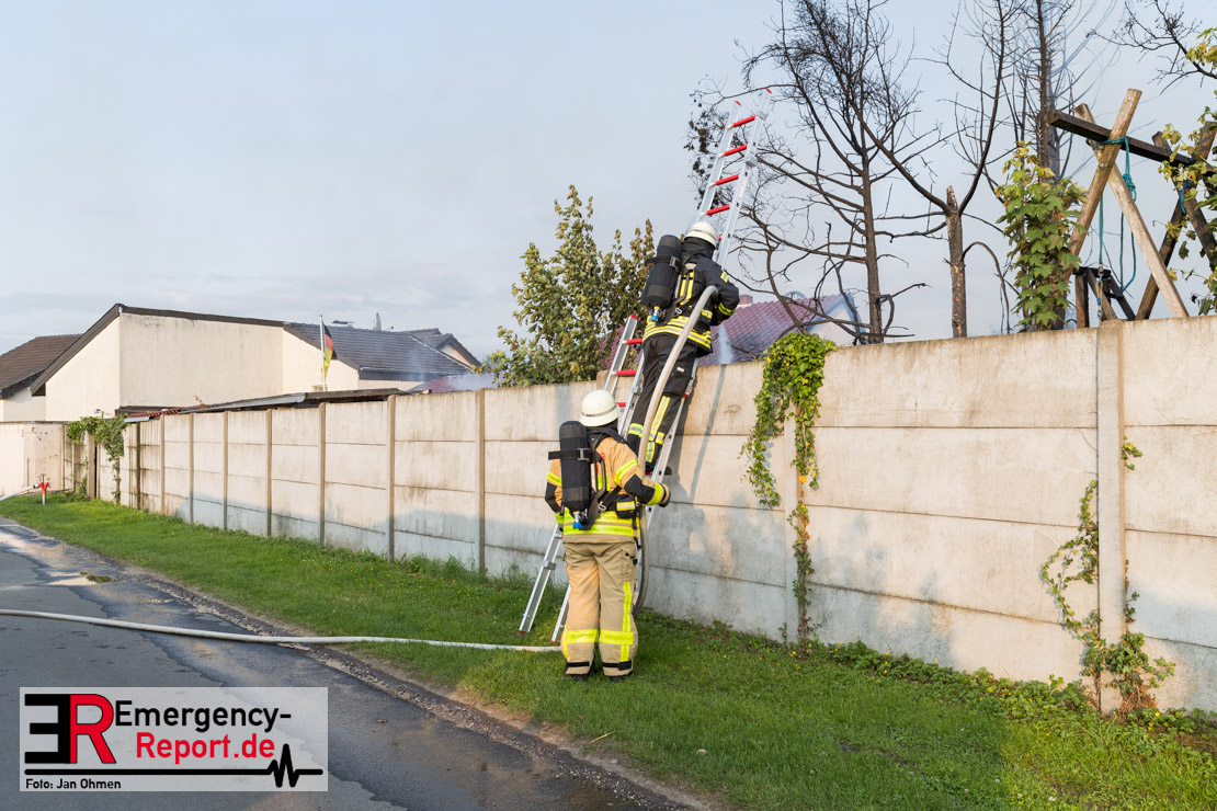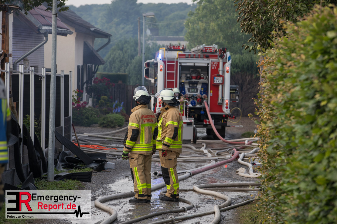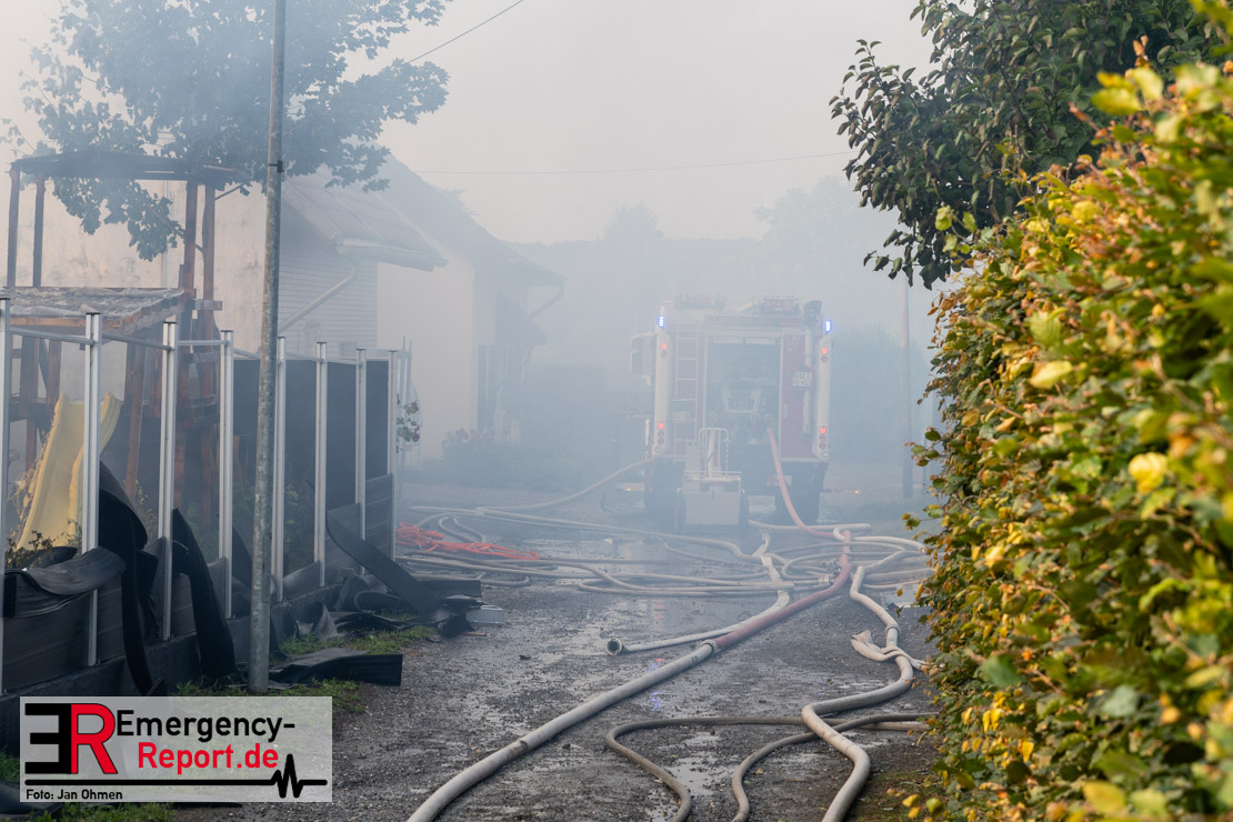 Glutnester für ein Wiederaufflammen des Feuers sorgen, legte die Feuerwehr abschließend einen Schaumteppich. Ein kleinerer Entstehungsbrand im Dachbereich eines benachbarten Hauses wurde