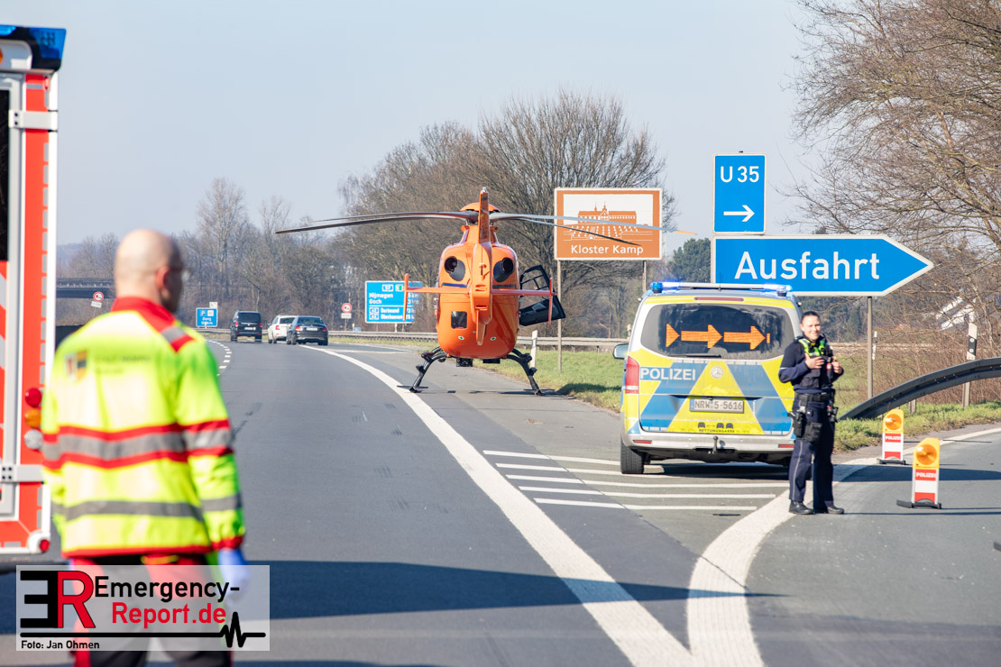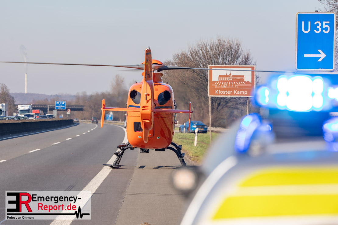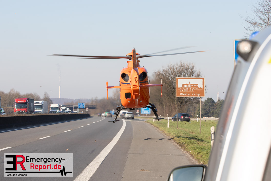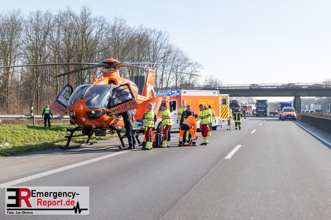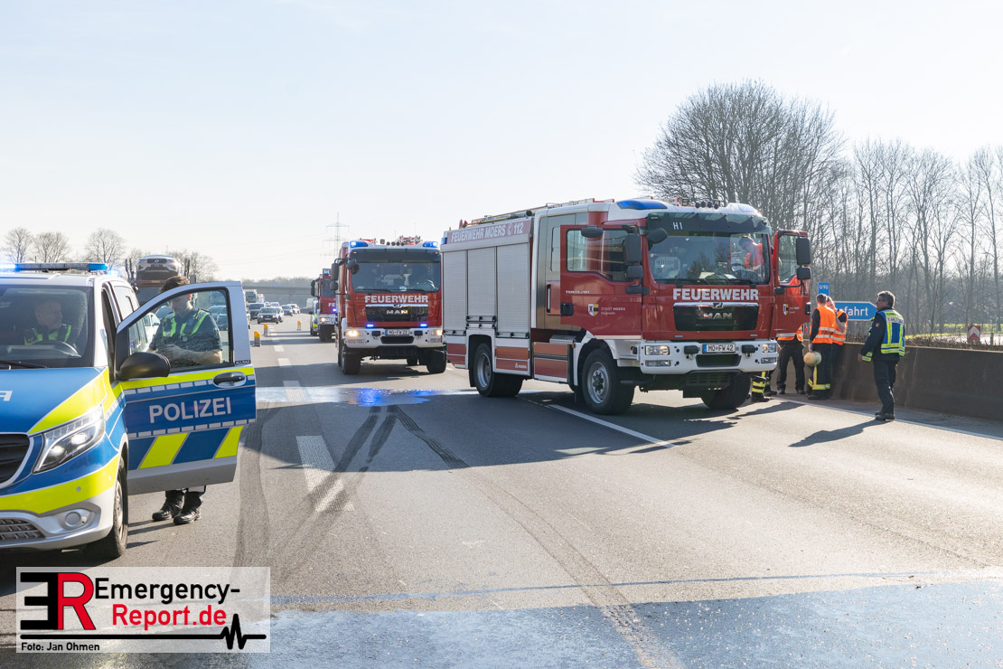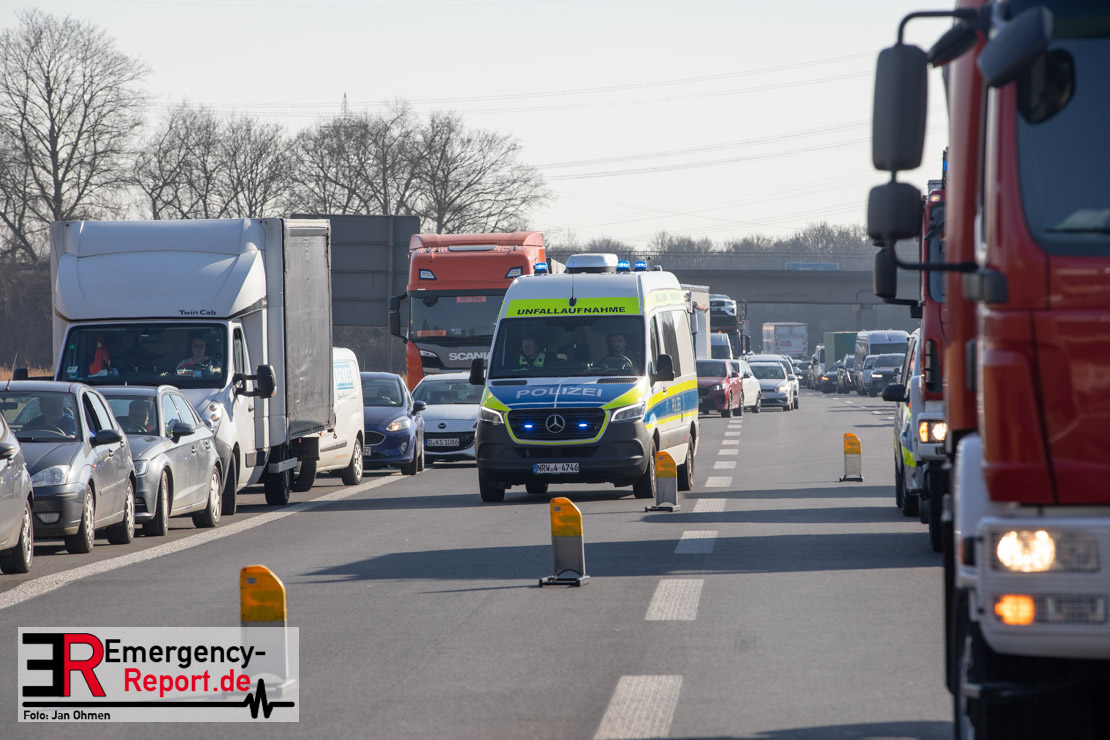 Bei einem schweren Verkehrsunfall gestern Mittag auf der A 57 bei Moers, wurde der Fahrer eines Lkw eingeklemmt und musste von der Feuerwehr befreit werden. Er wurde mit lebensgefährlichen Verletzungen in ein Krankenhaus geflogen. Die Spezialisten des Verkehrsunfallaufnahmeteams sicherten die Spuren.