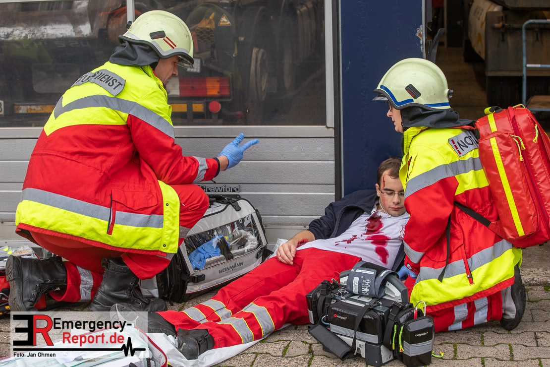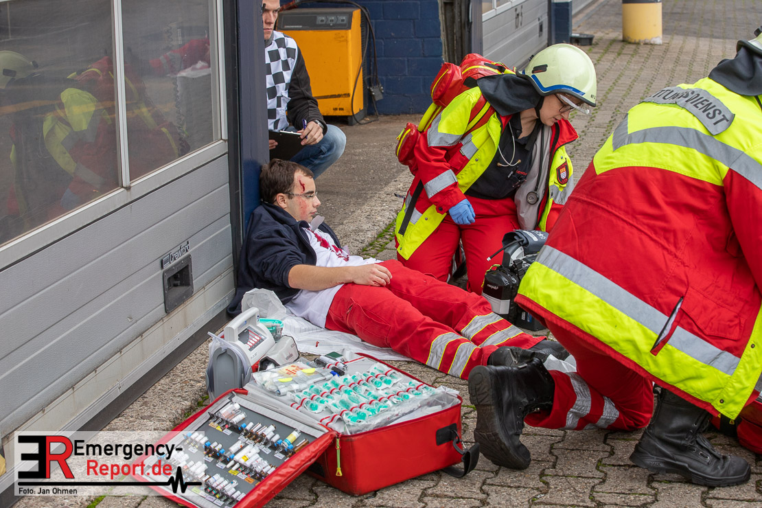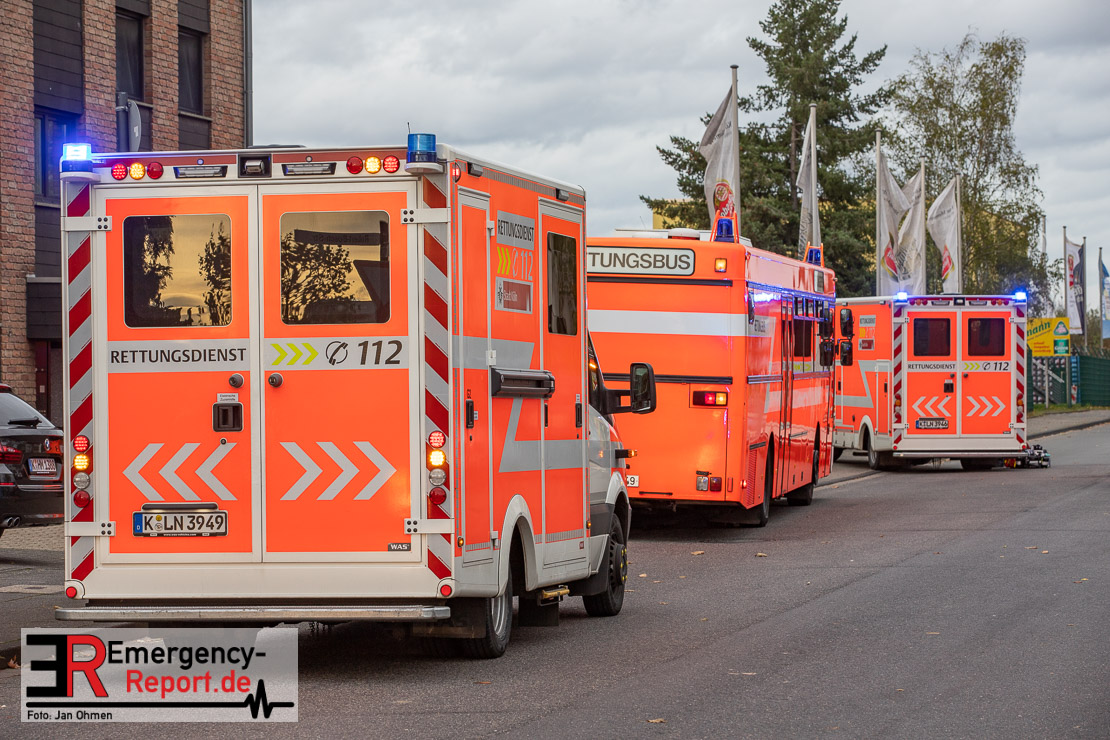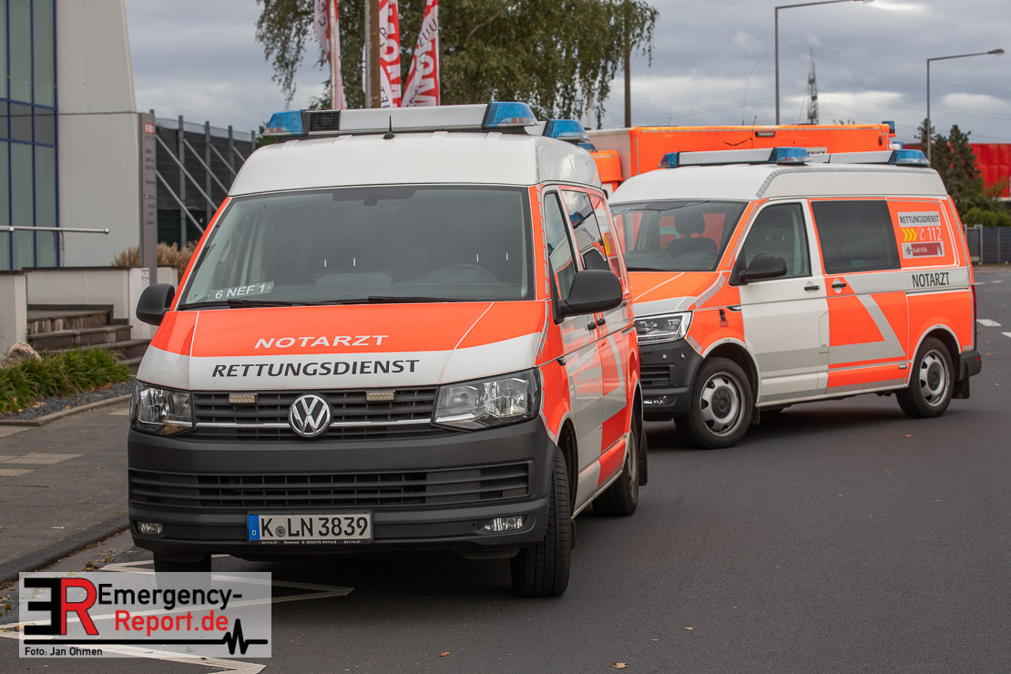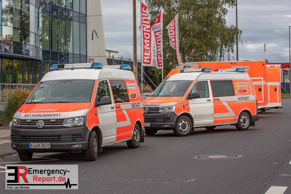 Am heutigen Samstagnachmittag, den 02.11., fanden, verteilt an drei unterschiedlichen (Übungs-)Einsatzstellen die jährliche Großübung des Kölner Rettungsdienstes statt. Ziel dieser Einsatzübungen sollte die Kommunikation und Organisation von drei parallel verlaufenden Unglücksfällen mit mehreren Verletzten sein. Im Kölner Norden war eine detonierte Gasflasche, im Westen ein Unfall mit einer Straßenbahn und im Süden ein umgestürztes Baugerüst als Ursache für den Massenanfall an Verletzten. Jede Einsatzstelle wurde gemäß Alarmierungskette mit einem Hilfeleistungslöschfahrzeug, 6 Rettungswagen und 3 Notärzten alarmiert, die zur Bewältigung solcher Einsatzstellen vorgeplant sind.