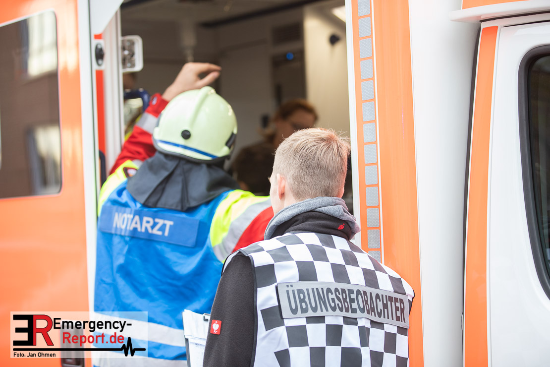 Die Kliniken der Universität zu Köln und das Krankenhaus Porz beteiligten sich an dieser Einsatzübung und von den Rettungsdienstfahrzeugen mit den erstversorgten Patienten zur weiteren Behandlung angefahren.