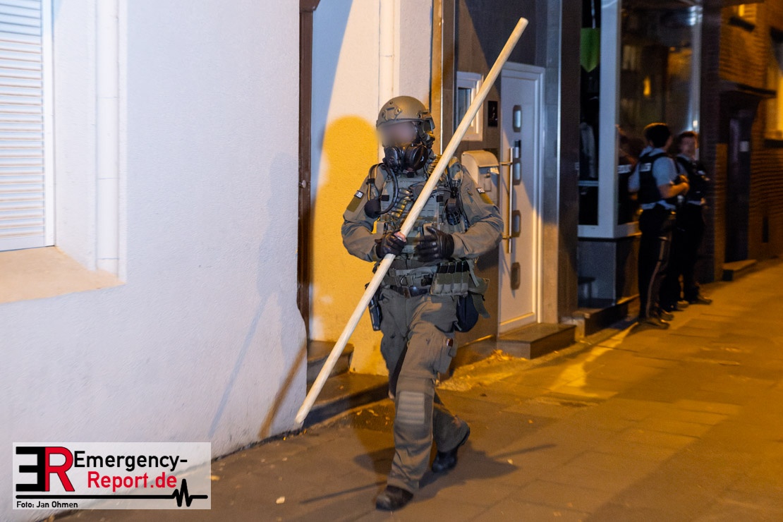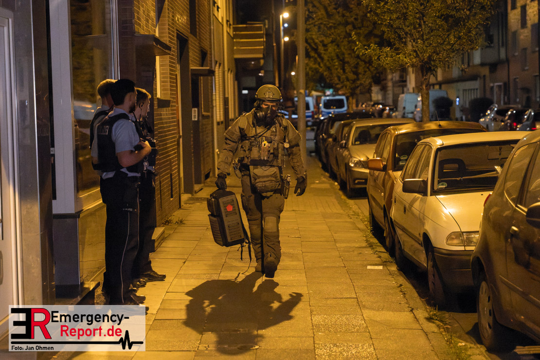 In der Nacht auf Samstag kam es in Duisburg zu einem größeren Polizeieinsatz wegen einer Bedrohungslage. Gegen 22:50 Uhr wurden Einsatzkräfte zur Karl-Albert-Straße gerufen, nachdem ein polizeibekannter Mann eine Frau in seiner Wohnung bedroht und festgehalten haben soll. Aufgrund der Gefährdungslage wurde das Spezialeinsatzkommando (SEK) hinzugezogen. Einzelheiten zur Art der Bedrohung nannte die Polizei aus ermittlungstaktischen Gründen nicht. Beim Zugriff sprengten die Spezialkräfte die Wohnungstür. Auffällig war, dass SEK-Beamte und Rettungskräfte Gasmasken trugen – warum, blieb zunächst unklar. Die Frau konnte schließlich unverletzt befreit werden. Der Tatverdächtige wurde bei der Festnahme leicht verletzt und kam in Polizeigewahrsam. Der Einsatz dauerte insgesamt rund sechs Stunden. Die Polizei hat die Ermittlungen zu den Hintergründen aufgenommen.