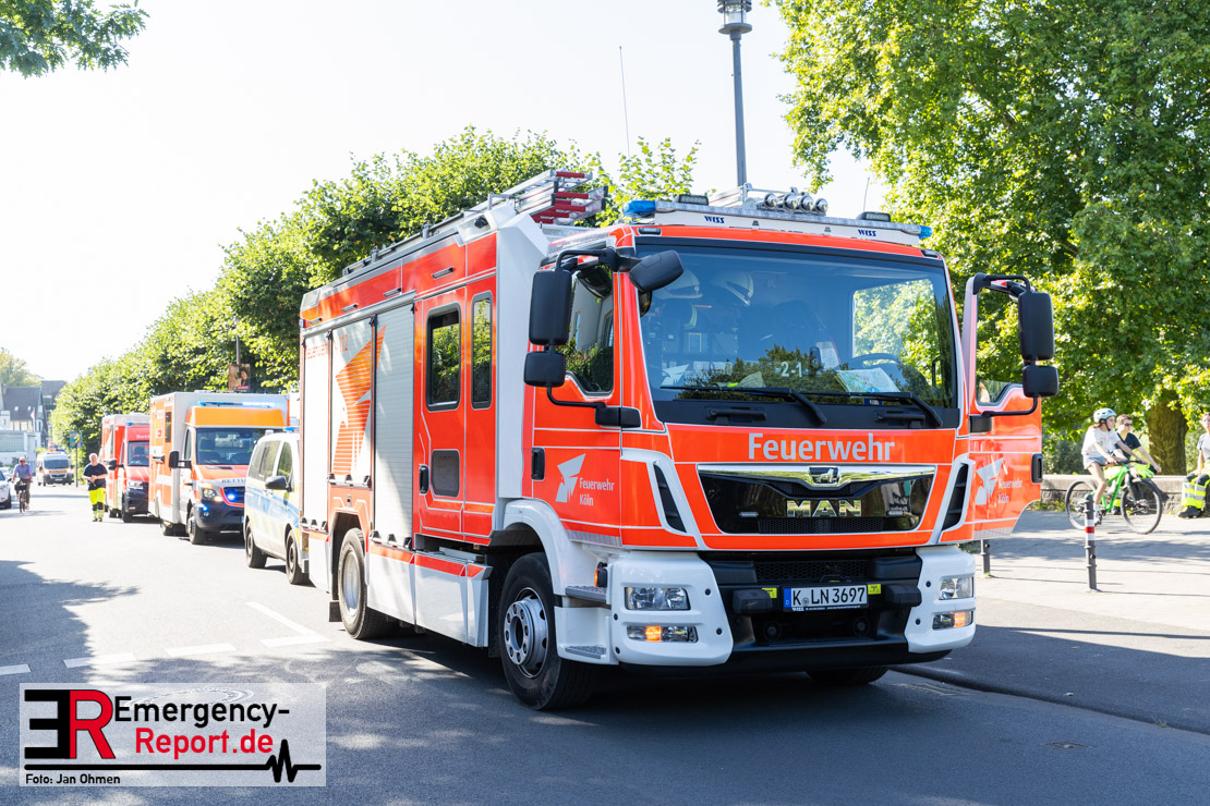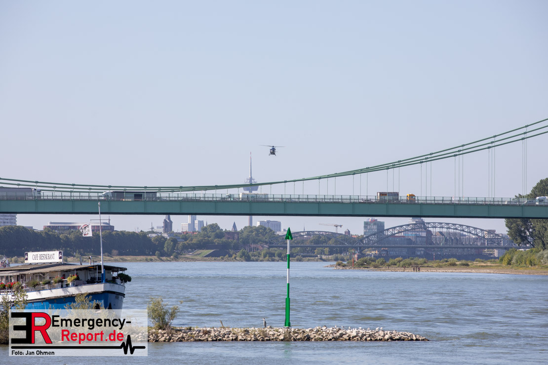 Die Feuerwehr Köln wurde am Nachmittag des 11.08.2025 zu einem Wasserrettungseinsatz auf dem Rhein bei Rodenkirchen alarmiert. Zeugen berichteten, dass eine Person mit Badehose ins Wasser ging und in der Fahrrinne von der Strömung mitgerissen wurde. Zur Personensuche wurden mehrere Boote, zwei Hubschrauber und Taucher eingesetzt. Die Suche nach dem vermissten Schwimmer wurde am frühen Abend eingestellt. Zeugen, die das Ereignis beobachteten, wurden vom Rettungsdienst versorgt. Die Polizei hat die Ermittlungen aufgenommen.