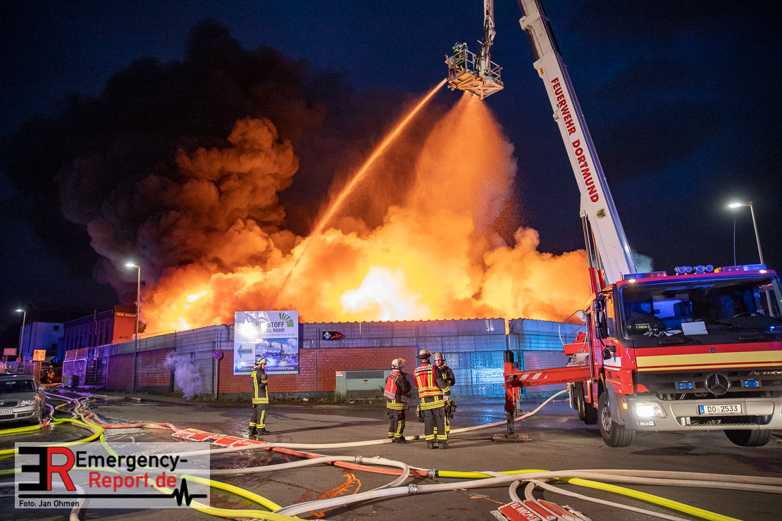 Folgemeldung: Bochum (ots) – Das Feuer ist mittlerweile unter Kontrolle, jedoch sind weiterhin noch Glutnester vorhanden die perspektivisch mit Schaummittel abgedeckt werden sollen. Im Einsatz waren bisher 200 Einsatzkräfte. Neben Einsatzkräfte der Feuerwehr Bochum ist auch Unterstützung von der Feuerwehr Dortmund, Feuerwehr Herne, dem THW OV Bochum und der Johanniter Unfallhilfe vor Ort. Vom Landesamt für Natur, Umwelt und Verbraucherschutz (LANUV) sind Fachberater an der Einsatzstelle, um die Auswirkung des Löschwassers auf die Umwelt zu beurteilen.