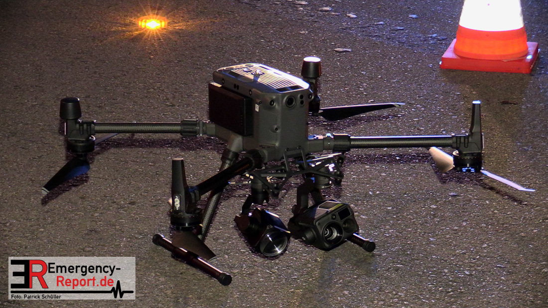 Aktuell sind wir mit rund 60 Einsatzkräften vor Ort. Durch einen massiven Löschangriff mit mehreren Strahlrohren wird aktuell versucht ein Übergreifen der Flammen auf eine benachbarte Lagerhalle zu verhindern. Auch zwei Drehleitern sind dafür im Einsatz. Bei der Erkundung der Einsatzstelle kommt zudem eine Drohne mit Wärmebildkamera zum Einsatz.