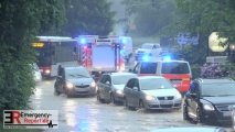 Auch am heutigen Tag bleibt der Einsatzschwerpunkt der Düsseldorfer Süden. Die Stadtteile Wersten, Vennhausen, Holthausen, Eller sowie Lierenfeld und auch Berath sind am stärksten vom gestrigen Starkregen betroffen. Vollgelaufene Keller und Tiefgaragen werden weiter von den Feuerwehrleuten vor Ort an die Einsatzzentrale gemeldet. Mit Schutzwasserpumpen rücken die Einsatzkräfte an, um weiter dem Wasser Stirn bieten zu können.