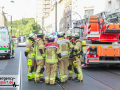 Gegen halb acht meldeten mehrere Anrufer einen Kellerbrand an der Westfalenstraße in Rath. Umgehend alarmierte die Leitstelle mehrere Einheiten von Feuerwehr und Rettungsdienst zur gemeldeten Adresse. Als die ersten Einsatzkräfte vor Ort eintrafen, stellten diese eine Rauchentwicklung aus dem Keller des Gebäudes fest. Umgehend entsandte der Einsatzleiter mehrere Einsatzkräfte unter Atemschutz zur Menschenrettung und Brandbekämpfung in das Gebäude. Das Feuer konnte durch die vorgehenden Trupps schnell abgelöscht werden, sodass der Einsatzleiter nach etwa 30 Minuten „Feuer unter Kontrolle“ an die Leitstelle der Feuerwehr Düsseldorf melden konnte. Parallel dazu kontrollierten weitere Einsatzkräfte das Gebäude auf eine Ausbreitung von Feuer und Rauch.