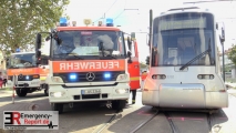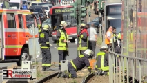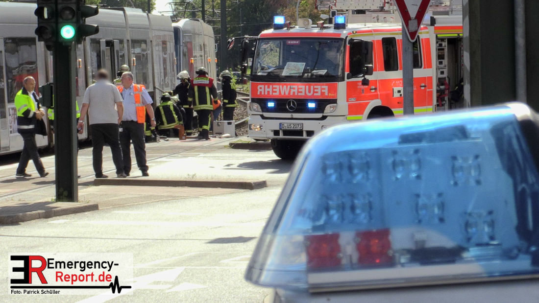 (ots) – Um 12:45 kam es auf der Bonner Str. in Düsseldorf-Holthausen zu einem schweren Unfall mit einer Straßenbahn bei dem eine 81-jährige Frau ums Leben kam. Aus noch unbekannter Ursache kam die Person unter die Straßenbahn und wurde überollt. Die Feuerwehr-Leitstelle entsandte nach dem Eingang des Notrufes umgehend einen großen Kräfteansatz. Einheiten der Feuerwachen 1, 2, 3, 6 und 7. Dazu kamen Spezialkräfte der Feuerwache Umweltschutz mit dem Feuerwehrkran und Rüstwagen. Ein, zufällig vorbei kommender, Rettungswagen war sofort vor Ort. Die Besatzung konnte, aufgrund der schweren Verletzungen, leider nur noch den Tod der Dame feststellen. Drei Mitarbeiter der Rheinbahn, welche unter Schock standen, wurden durch den Rettungsdienst und im Anschluß durch die Notfallseelsorger der Feuerwehr betreut. Fahrgäste wurden bei dem Unfall nicht verletzt. Zur Bergung der Person musste die Straßenbahn mit schwerem Gerät durch die Feuerwehr angehoben werden. Die Feuewehr war mit ca. 40 Einsatzkräften vor Ort. Im Umkreis des Unfalls kam es zu erheblichen Verkehrsbehinderungen im Straßenverkehr. Auch die Betriebsabläufe der Rheninbahn waren davon betroffen. Die Polizei hat die Ermittlungen zur Unfallursache aufgenommen. Auf Unverständnis ist das Verhalten der Schaulustigen bei den Einsatzkräften gestossen. Auch wenn durch Gaffer die Einsatzkräfte nicht direkt behindert worden sind, entschloss sich der Einsatzleiter einen Sichtschutz während der Bergung zu errichten. Selbst Eltern mit kleinen Kindern blieben in unmittelbarer Nähe des Unfalls stehen um die Einsatzkräfte bei iher Arbeit zu beobachten.