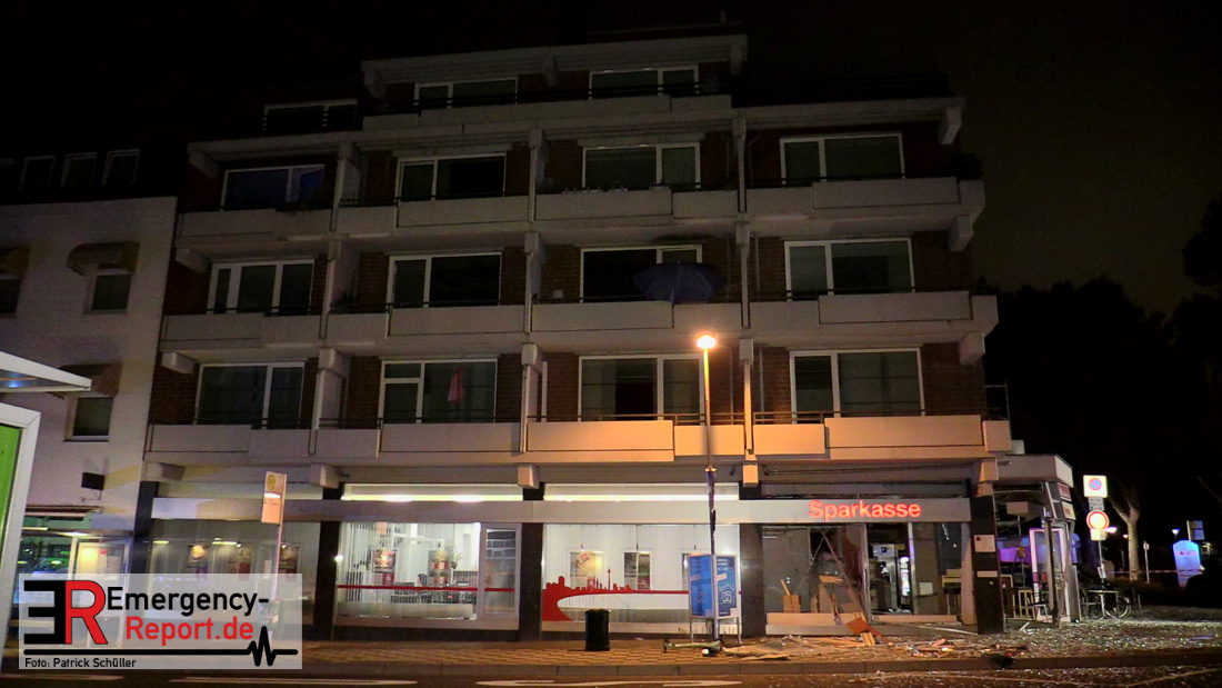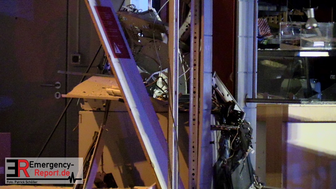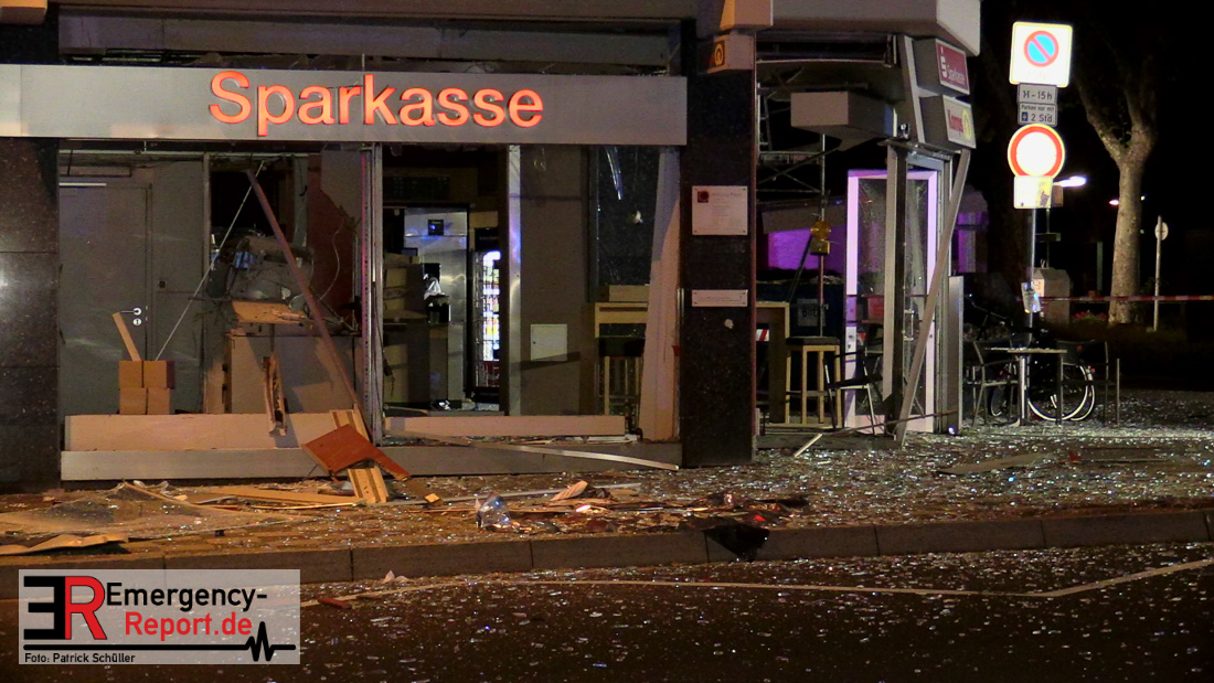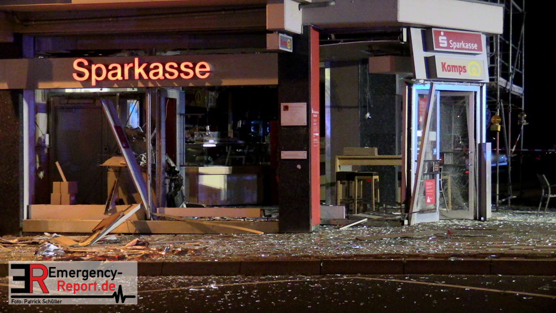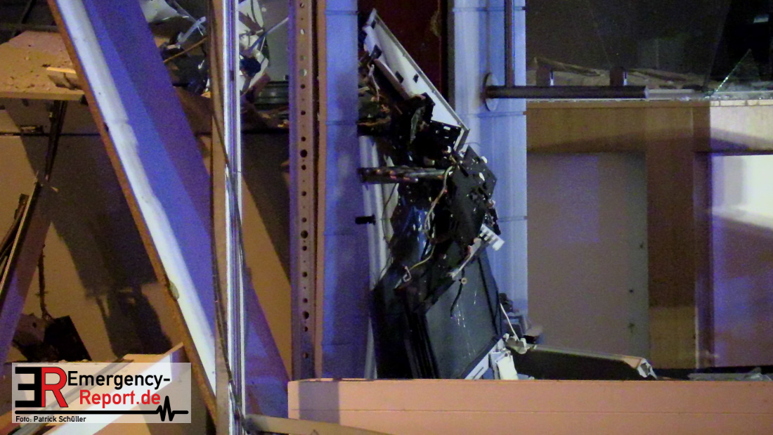 Nach einer Geldautomatensprengung in der vergangenen Nacht in Stockum fahndet die Düsseldorfer Kriminalpolizei nach mehreren Männern. Die Täter flüchteten nach jetzigem Stand ohne Beute. Sie hinterließen jedoch einen enormen Sach- bzw. Gebäudeschaden.
