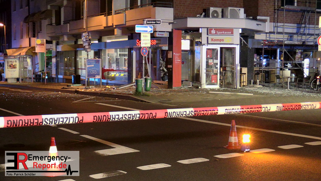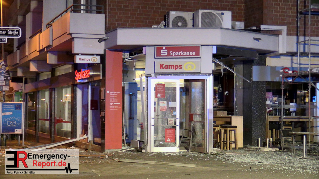Zur Tatzeit waren die Anwohner in Stockum in der Nähe der Messe durch einen gewaltigen Knall aus dem Schlaf gerissen worden. In dem Gebäude an der Amsterdamer Straße / Ecke Stockumer Kirchstraße hatten Unbekannte versucht, einen Geldautomaten zu sprengen. Als die Polizei Sekunden später eintraf, waren die Täter schon „über alle Berge“. Die Einsatzleitstelle der Düsseldorfer Polizei löste eine Großfahndung aus. Mit negativem Ergebnis. Die Ermittler gehen davon aus, dass es sich um ortsfremde Täter handelt, die sich über die A 44, A 52 oder A 57 in unbekannte Richtung entfernt haben. Entsprechende Ermittlungen laufen.