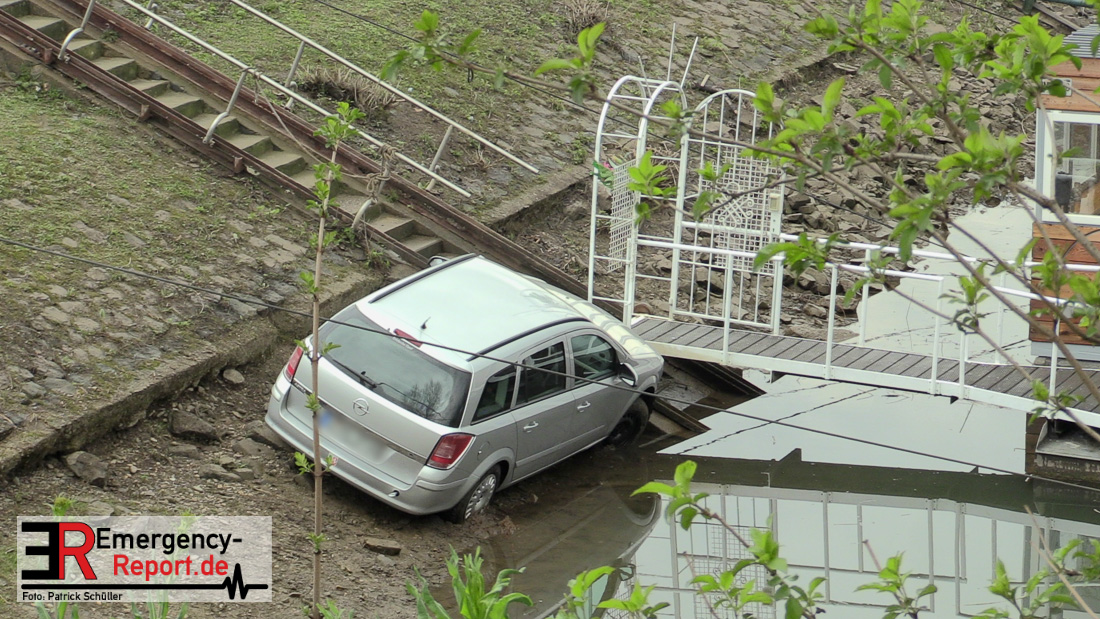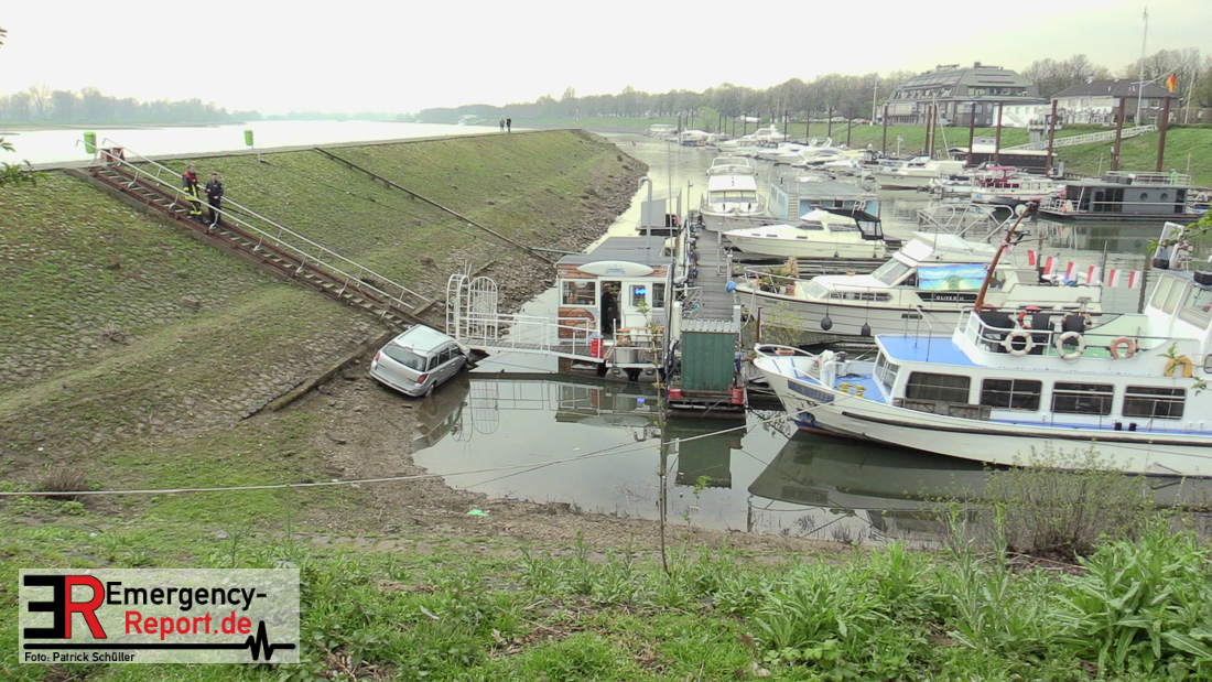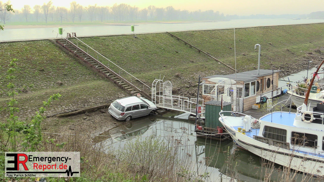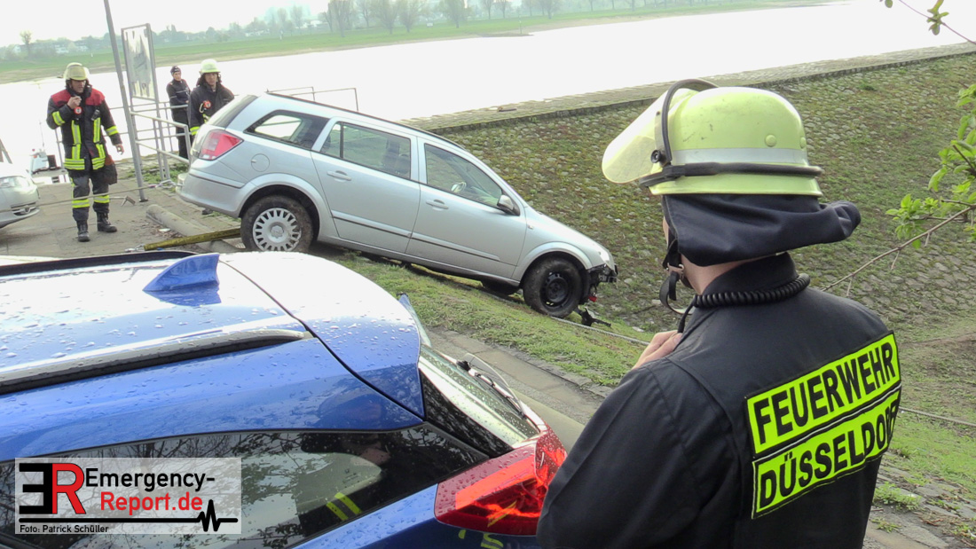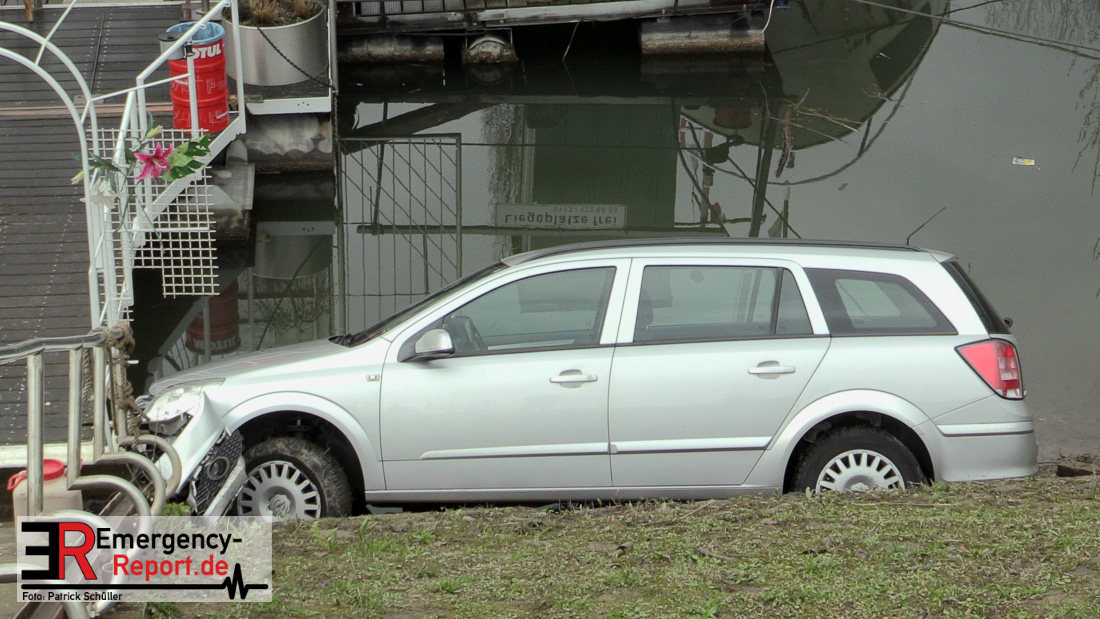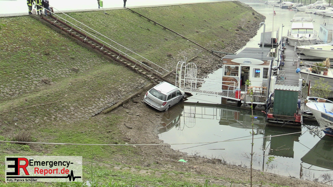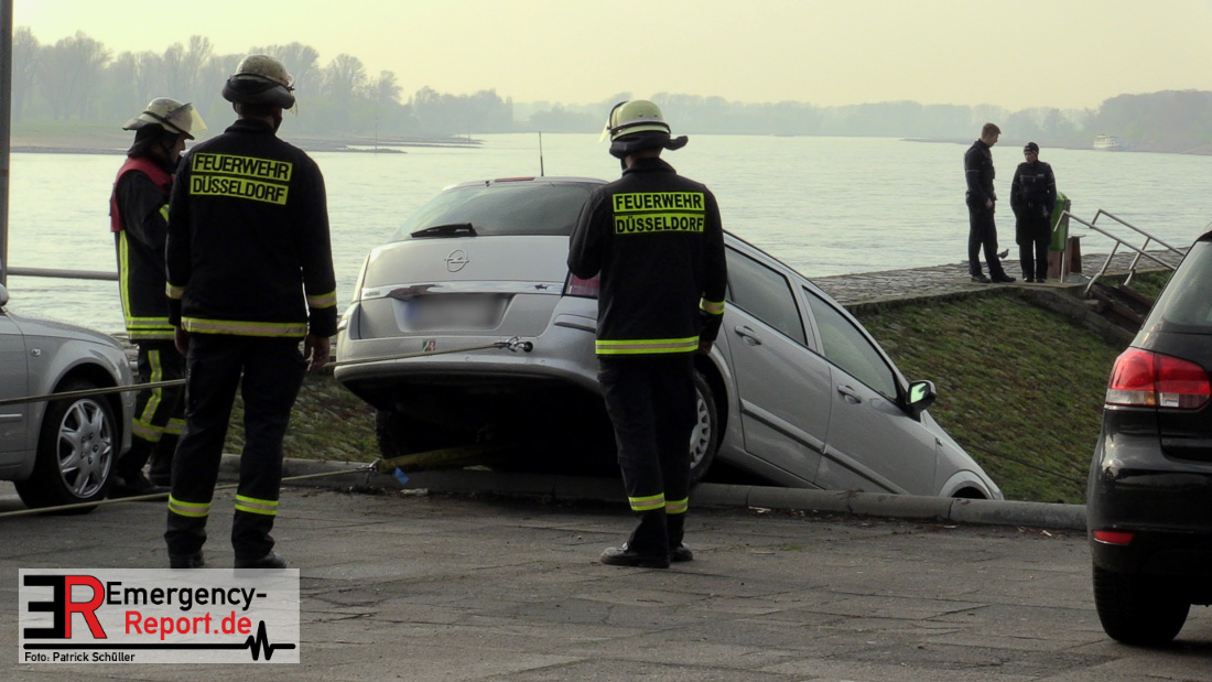 02.04.2019 – Düsseldorf Golzheim – Kurioser Unfall: Auto rollte Uferböschung hinunter und krachte gegen Anleger