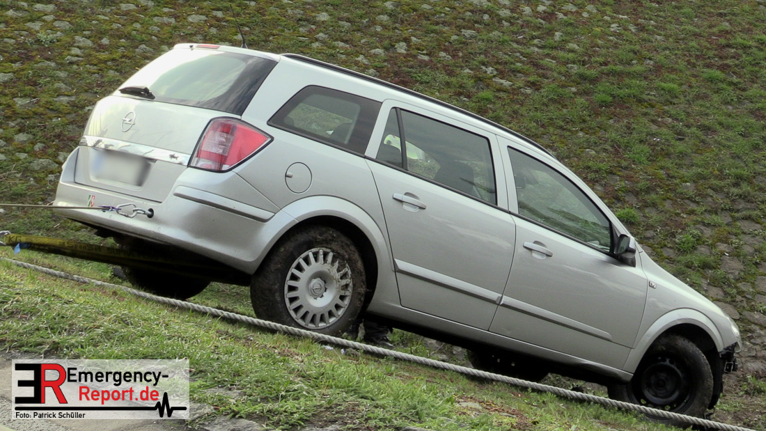 Durch die Einsatzkräfte der Feuerwehr wurde der PKW aus seiner misslichen Lage geborgen.