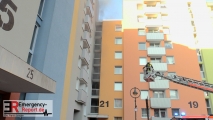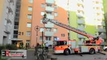 Parallel dazu ging ein Trupp zur Brandbekämpfung in das verrauchte Treppenhaus vor und hatte das Feuer schnell unter Kontrolle. Da sich der Rauch im gesamten Treppenraum ausgebreitet hatte, mussten im weiteren Verlauf sämtliche Wohnungen auf Verrauchung hin kontrolliert werden und der Treppenraum aufwendig mit Hochleistungslüftern der Feuerwehr entraucht und belüftet werden.