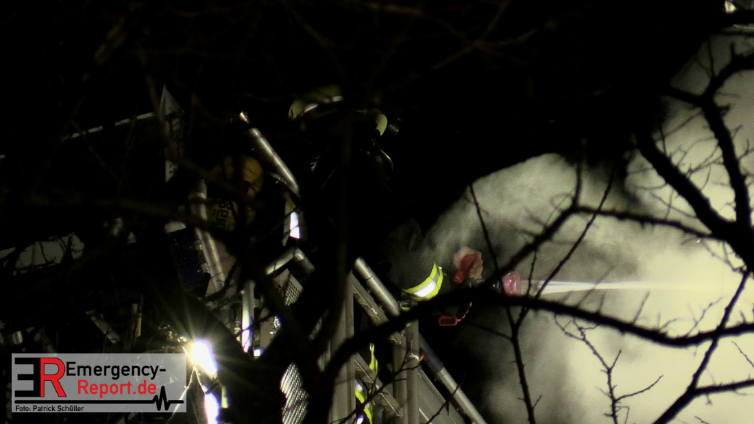 Für die anrückenden Feuerwehrleute der Wache Behrenstraße waren schon auf der Anfahrt Flammen deutlich sichtbar, die aus einer Dachgaube schlugen. Vor Ort trafen die Einsatzkräfte den verletzten Wohnungsinhaber im Treppenraum an. Dort erfuhren sie auch, dass in der Nachbarwohnung noch eine Familie mit Kind und Hund vom Rauch eingeschlossen waren.