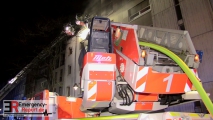 Nachrückende Feuerwehrkräfte räumten schließlich auch die übrigen Wohnungen. Hierzu kamen auch zwei Drehleitern zum Einsatz. Der ca. 40 Jahre alte Wohnungsinhaber erlitt eine Rauchvergiftung sowie leichtere Verletzungen und musste ins Krankenhaus gebracht werden.