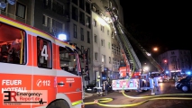 In der Nacht zum Sonntag brannte auf der Hoffeldstraße in Flingern eine Dachgeschosswohnung. Der Wohnungsinhaber wurde dabei verletzt und musste ins Krankenhaus gebracht werden. Insgesamt rettete die Feuerwehr 14 weitere Hausbewohner sowie fünf Hunde aus dem brennenden Gebäude.