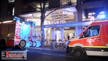 Um 23:01 Uhr wurde die Feuerwehr Düsseldorf durch die automatische Brandmeldeanlage zum Einkaufscenter Sevens auf der Königsalle alarmiert. Erste Erkundungsergebnisse ergaben, dass die Sprinkleranlage im dritten Untergeschoss ausgelöst hatte. Nachdem der erste Feuerwehrtrupp den gemeldeten Bereich ohne Feststellung kontrolliert hatte, ergaben weitere Erkundungen in dem Objekt, dass in einem im Umbau befindlichen Ladenlokal im Erdgeschoss, aus unbekannter Ursache, die Leitung der Sprinkleranlage gebrochen war und massiv Wasser austrat. Durch das austretende Wasser entstand ein erheblicher Schaden im Erdgeschoss und im ersten Untergeschoss. In beiden Ebenen stand das Wasser auf einer Fläche von circa 400 Quadratmetern mehrere Zentimeter hoch. Ebenso liefen die Schächte der Rolltreppen und des Aufzuges voll Wasser. Im Untergeschoss waren vier Gastronomiebereiche, in der sogenannten „Food-Mall“, vom Wasseraustritt betroffen. Die Feuerwehr war mit 20 Einsatzkräften drei Stunden lang damit beschäftigt, das Wasser mittels Tauchpumpen und Wassersaugern aus dem Gebäude zu entfernen. Die Höhe des Schadens kann zur Zeit nicht beziffert werden.