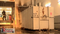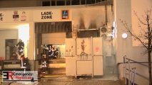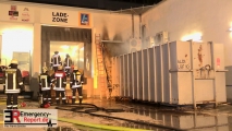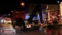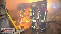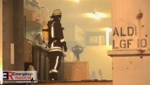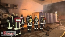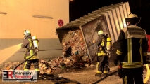 Beim Eintreffen der Feuerwehr brannte ein mobiler Presscontainer im Bereich der Warenanlieferung eines ALDI-Marktes. Umgehend wurden erste Lösch- und Kontrollmaßnahmen eingeleitet.