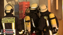 Das Lager des Supermarktes war durch das Feuer leicht verraucht. Durch den Einsatzleiter wurde ein Wechselladerfahrzeug angefordert, um den Container zu entleeren.