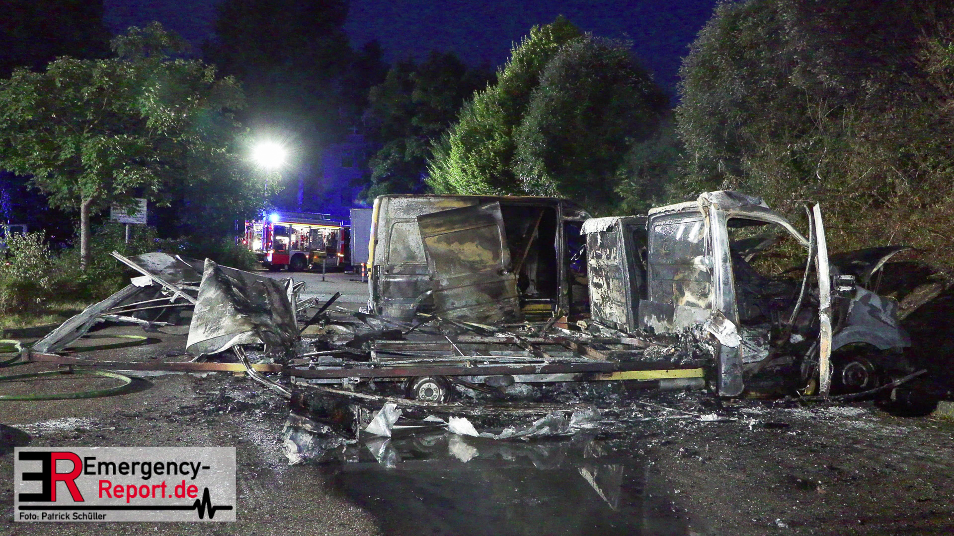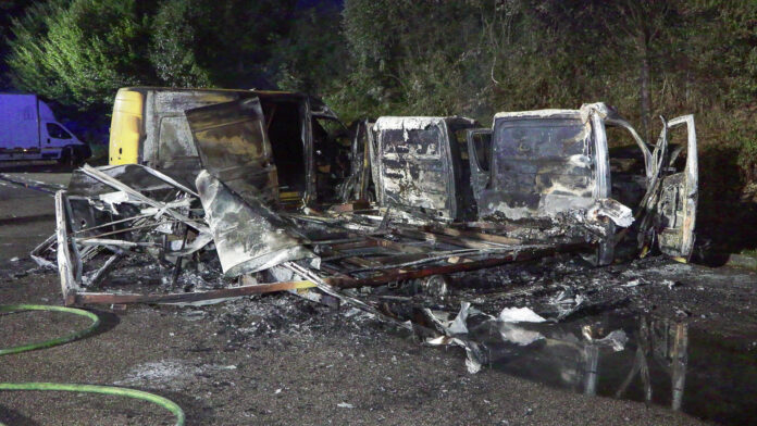 Die Feuerwehr Düsseldorf wurde in der Nacht (04.07.2025) zu einer Feuermeldung, auf den Franz-Rennefeld-Weg, alarmiert. Bei Eintreffen der ersten Einsatzkräfte stellte sich heraus, dass drei Transporter, auf einem Parkplatz, in voller Ausdehnung brannten. Die Flammen hatten sich bereits auf eine angrenzende Böschung ausgebreitet. Durch den umgehend eingeleiteten Löschangriff konnte eine weitere Brandausbreitung verhindert werden. Verletzt wurde niemand. Es entstand hoher Sachschaden. Die Polizei hat die Ermittlungen zur Brandursache aufgenommen.