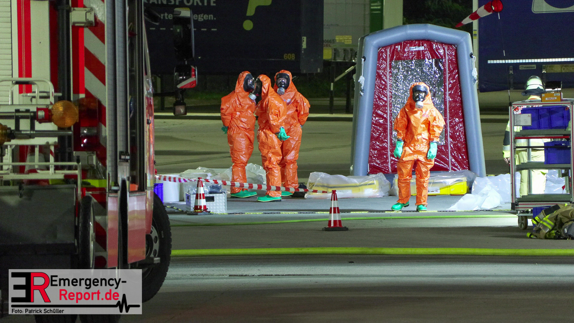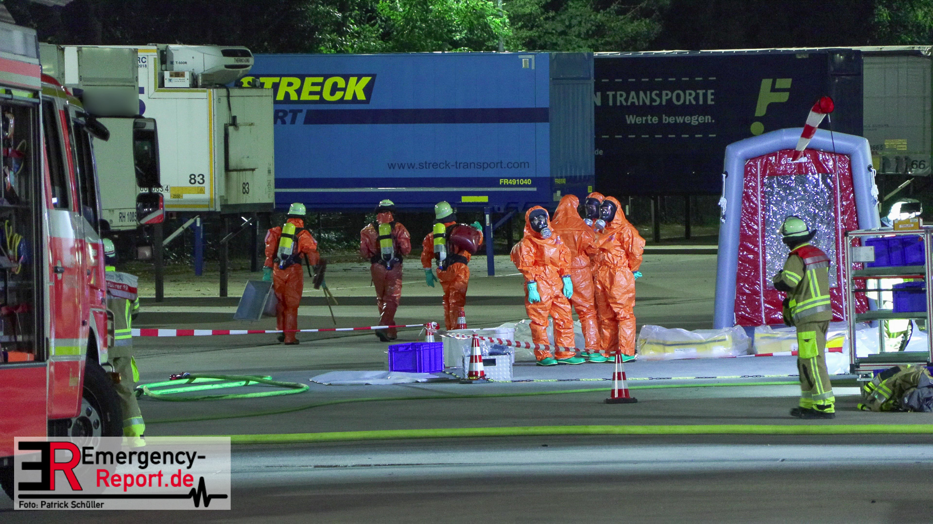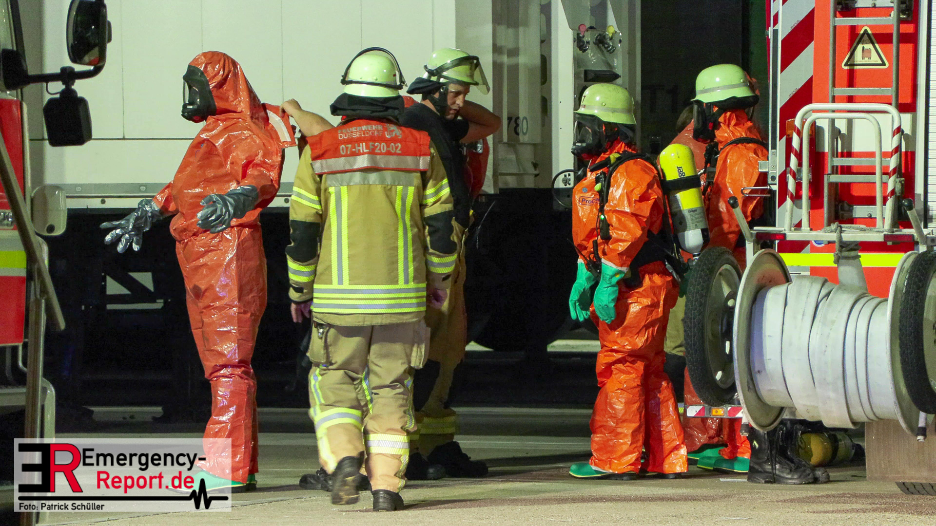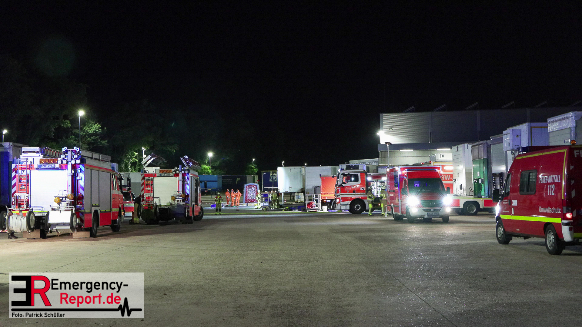 Am Donnerstagabend erreichte die Leitstelle der Feuerwehr Düsseldorf die Meldung über einen Gefahrstoffaustritt auf dem Gelände eines Logistikunternehmens an der Kappeler Straße in Benrath. Sofort alarmierte die Leitstelle zahlreiche Einsatzkräfte der Düsseldorfer Feuerwehr sowie des Rettungsdienstes zur gemeldeten Adresse. Als die ersten Einsatzkräfte kurze Zeit später vor Ort eintrafen, stellten diese eine Leckage an einem Gefahrgutbehälter fest, welcher bei Verladearbeiten beschädigt worden war. Mit speziellen Chemikalienschutzanzügen gingen die Einsatzkräfte in den Bereich vor und konnten die Leckage abdichten und einen weiteren Austritt verhindern. Anschließend wurde der bereits ausgelaufene Gefahrstoff durch die Feuerwehr aufgenommen. Hierzu erfolgte eine enge Abstimmung zwischen dem Einsatzleiter der Feuerwehr und dem städtischen Umweltamt.