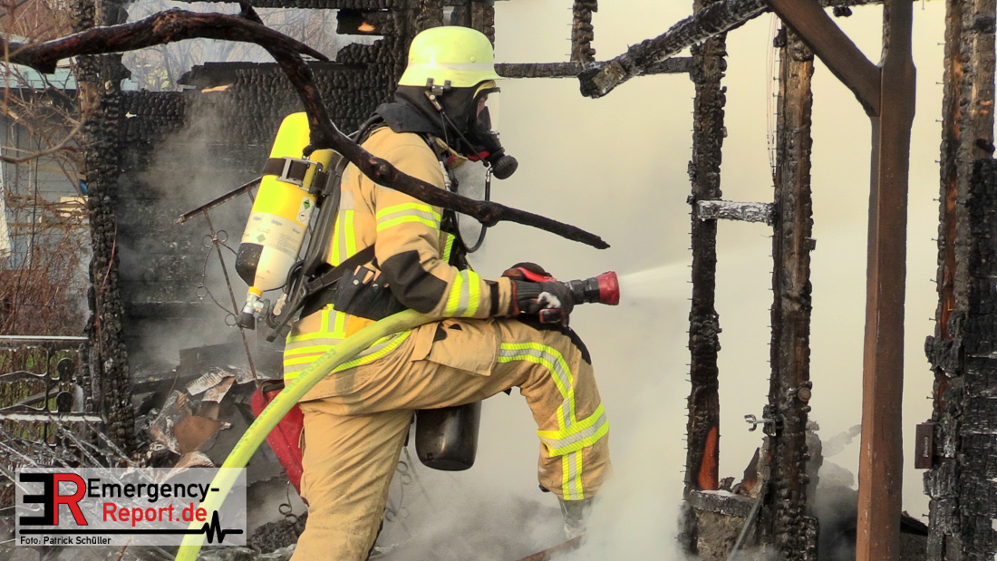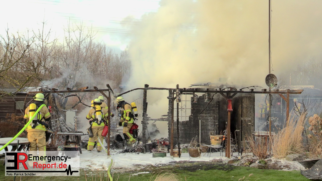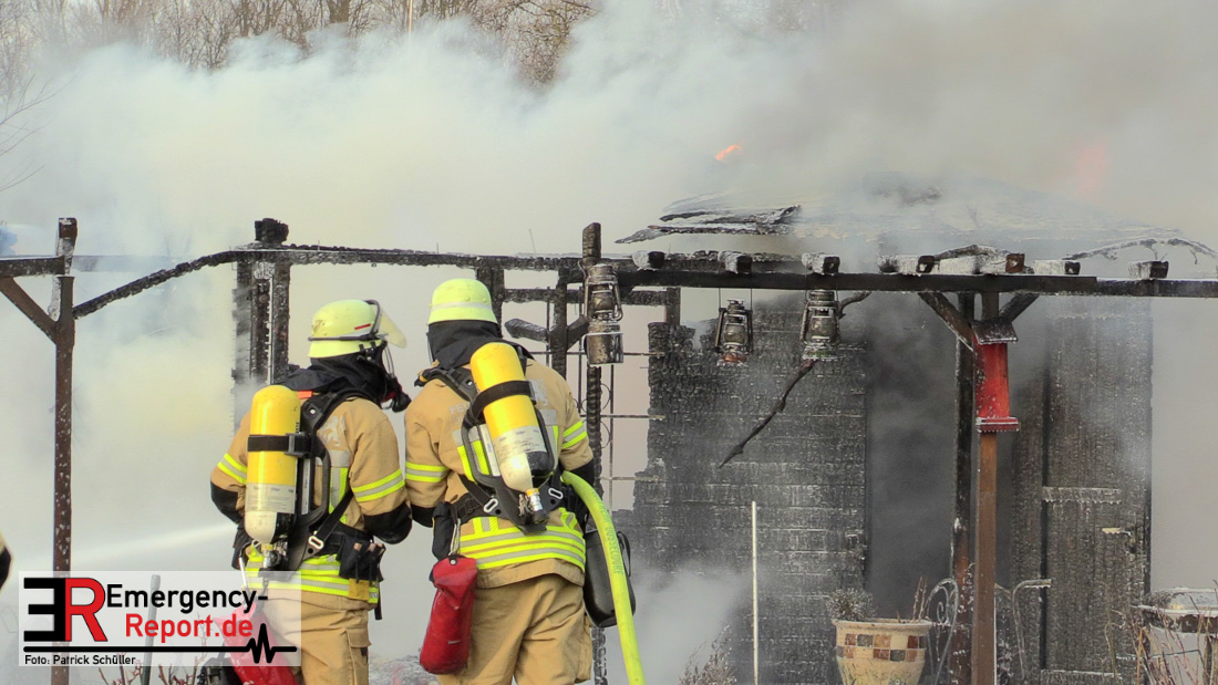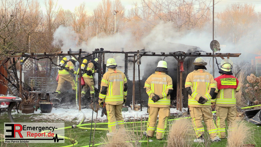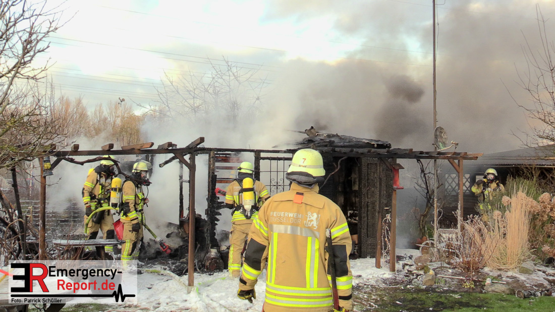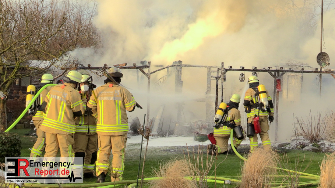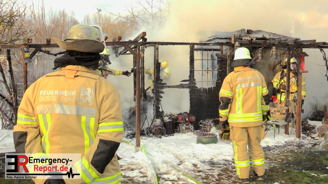 Am Montagnachmittag wurde die Feuerwehr Düsseldorf zu einer brennenden Gartenlaube auf der Further Straße gerufen. Als die Feuerwehrkräfte nach acht Minuten an der Einsatzstelle eintrafen, stand eine circa 20 Quadratmeter große Gartenlaube im Vollbrand. Eine benachbarte Gartenlaube wurde ebenfalls von den Flammen beschädigt.