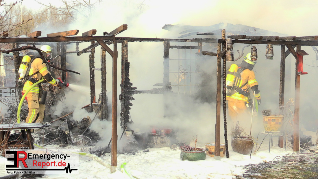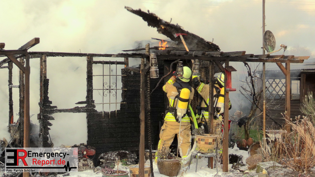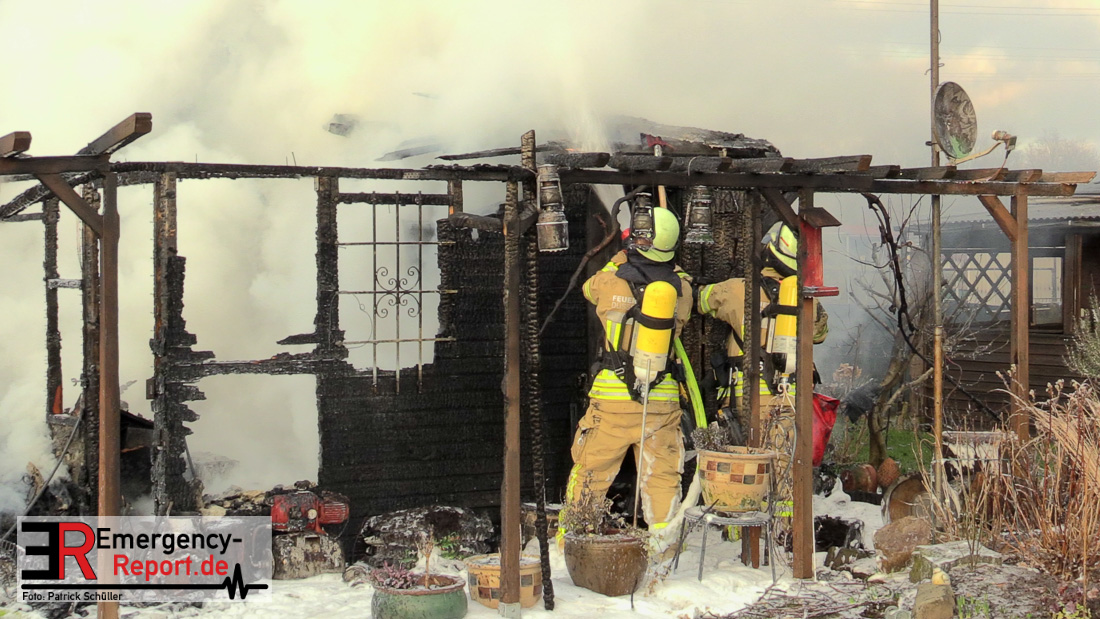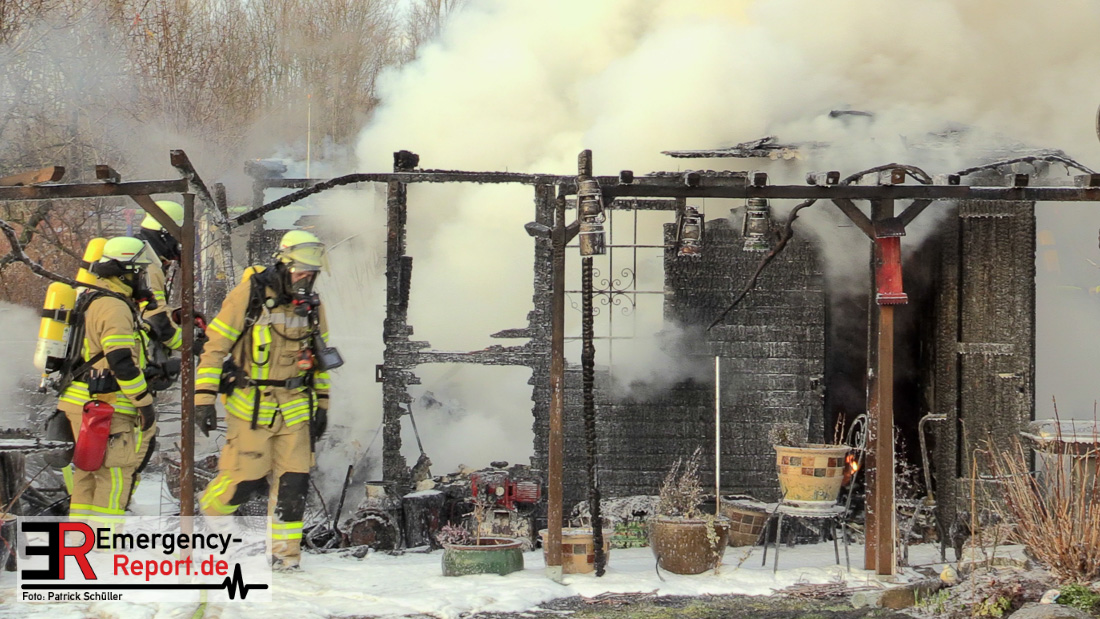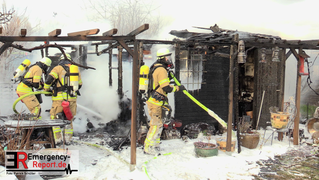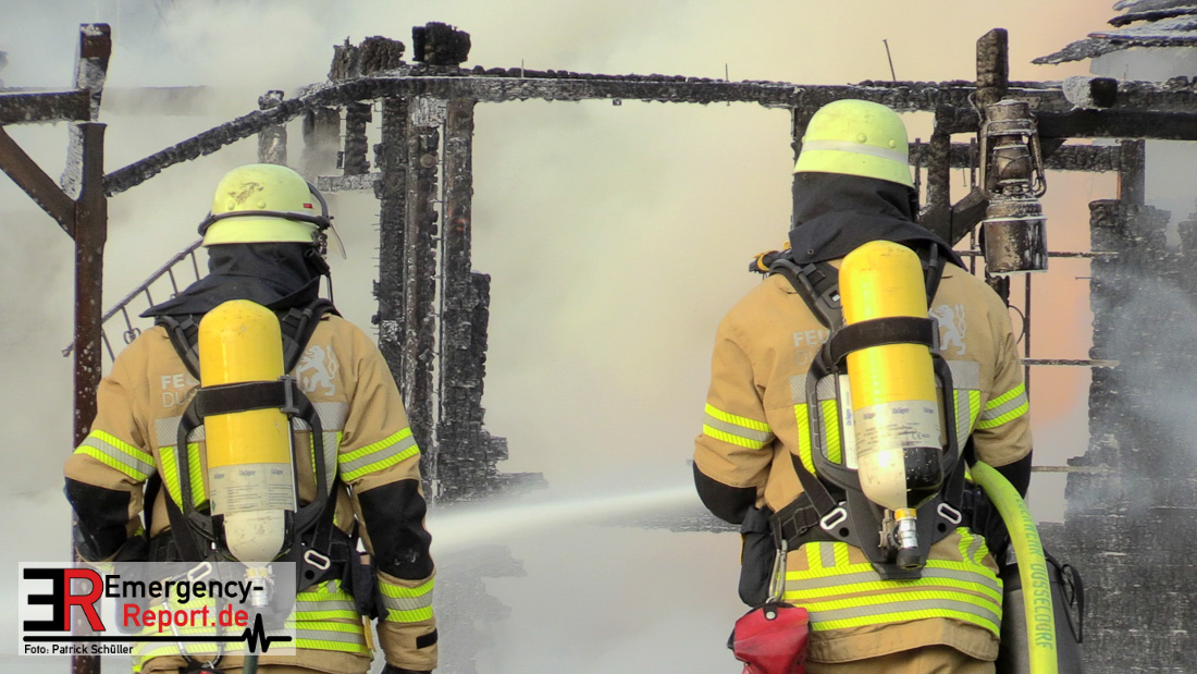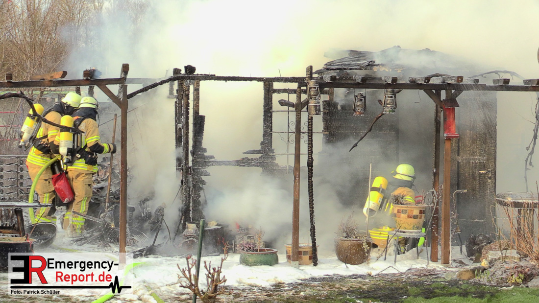Am Montagnachmittag wurde die Feuerwehr Düsseldorf zu einer brennenden Gartenlaube auf der Further Straße gerufen. Als die Feuerwehrkräfte nach acht Minuten an der Einsatzstelle eintrafen, stand eine circa 20 Quadratmeter große Gartenlaube im Vollbrand. Eine benachbarte Gartenlaube wurde ebenfalls von den Flammen beschädigt.