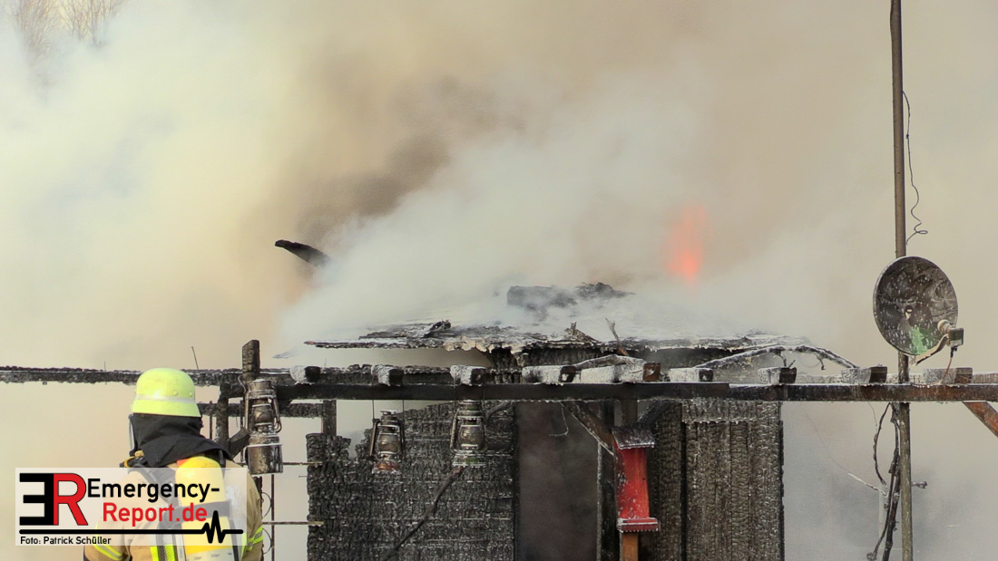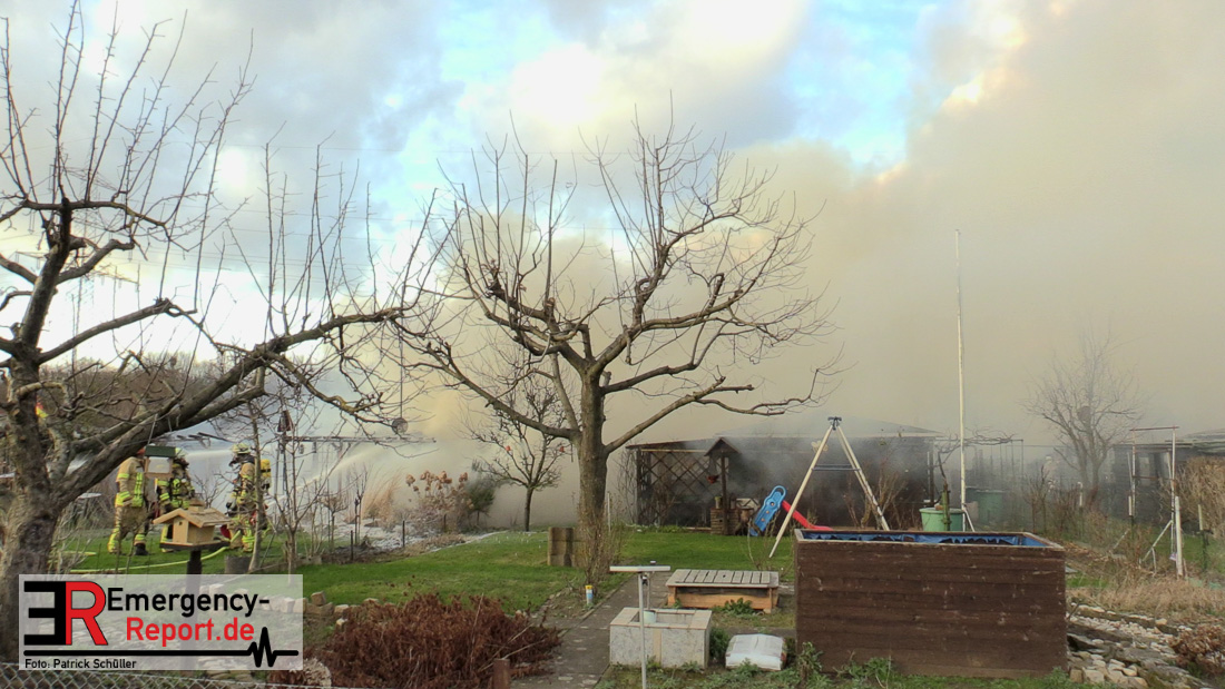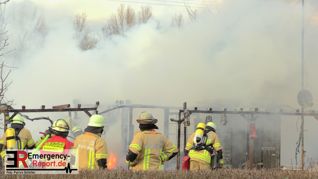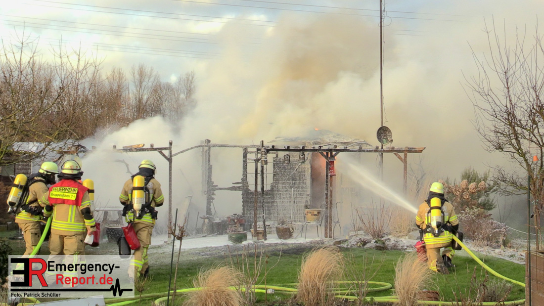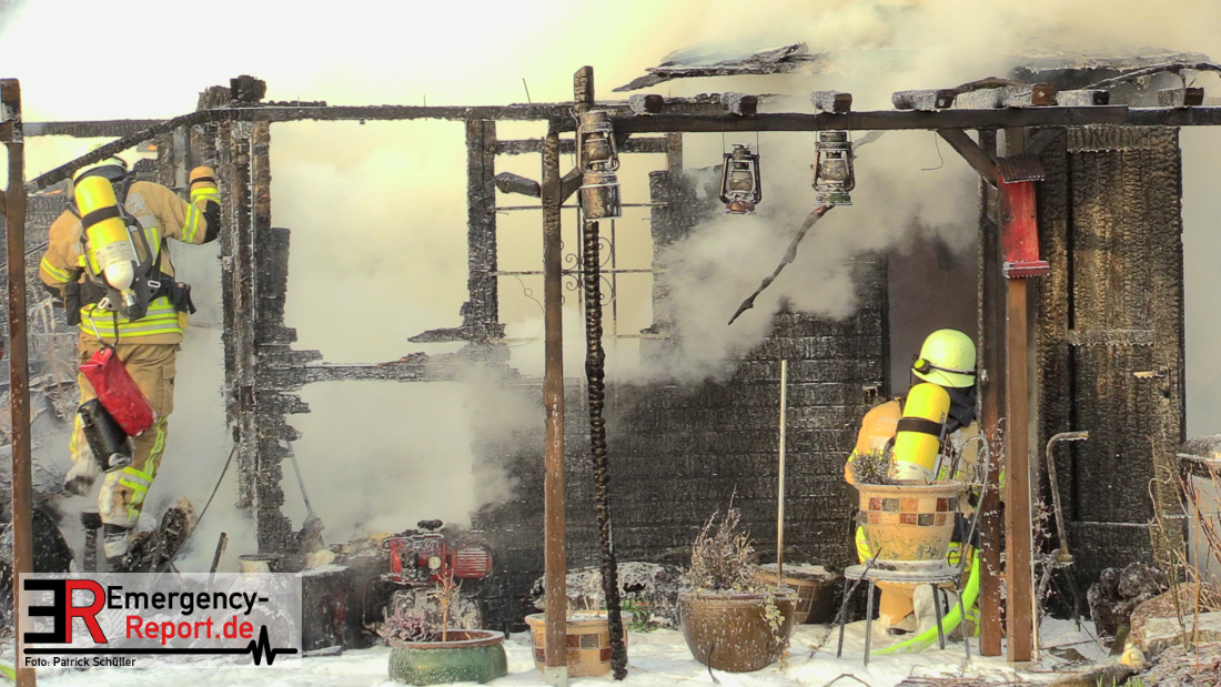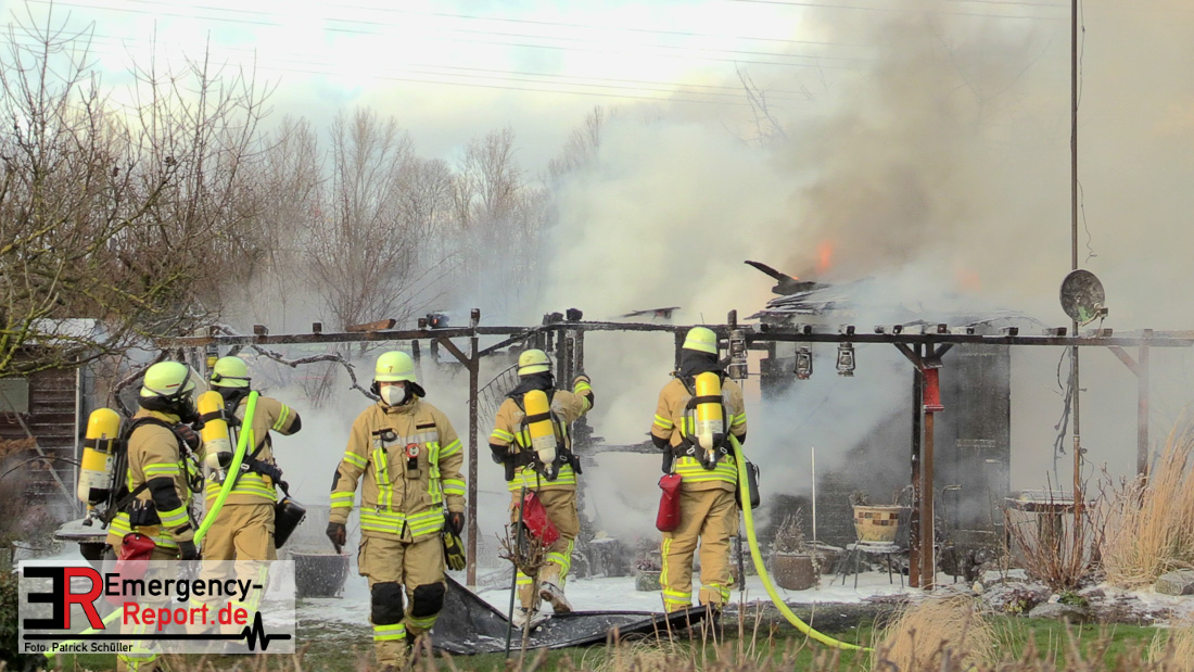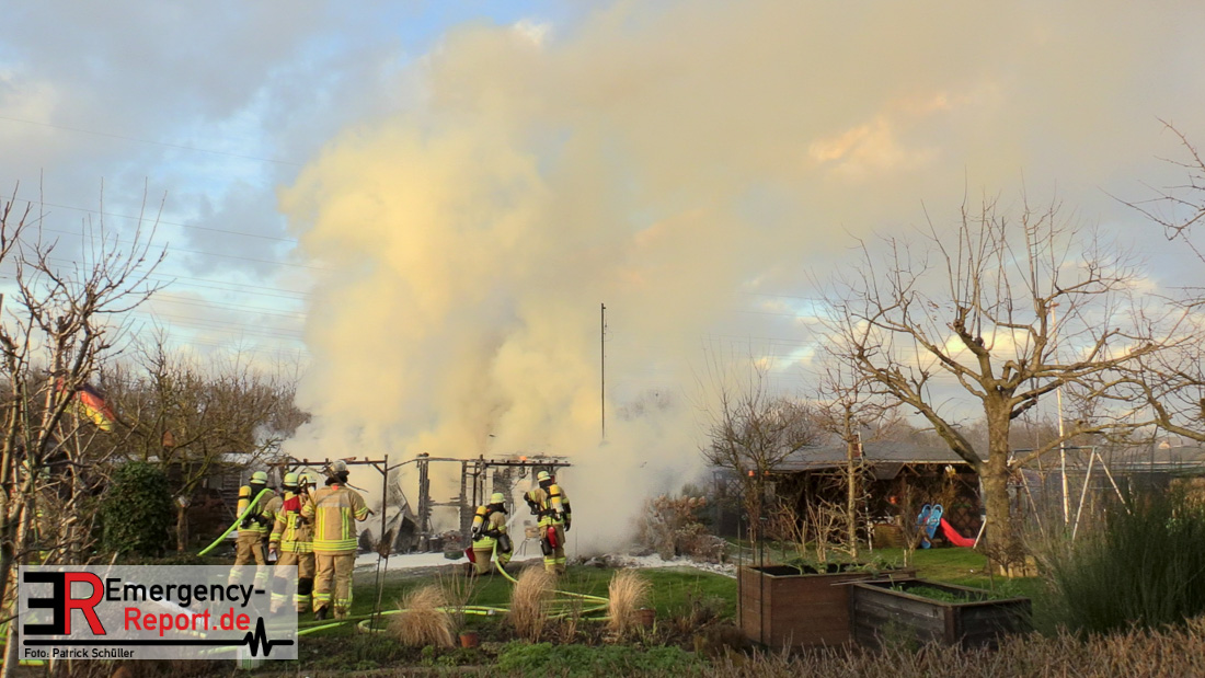 Am Montagnachmittag wurde die Feuerwehr Düsseldorf zu einer brennenden Gartenlaube auf der Further Straße gerufen. Als die Feuerwehrkräfte nach acht Minuten an der Einsatzstelle eintrafen, stand eine circa 20 Quadratmeter große Gartenlaube im Vollbrand. Eine benachbarte Gartenlaube wurde ebenfalls von den Flammen beschädigt.
