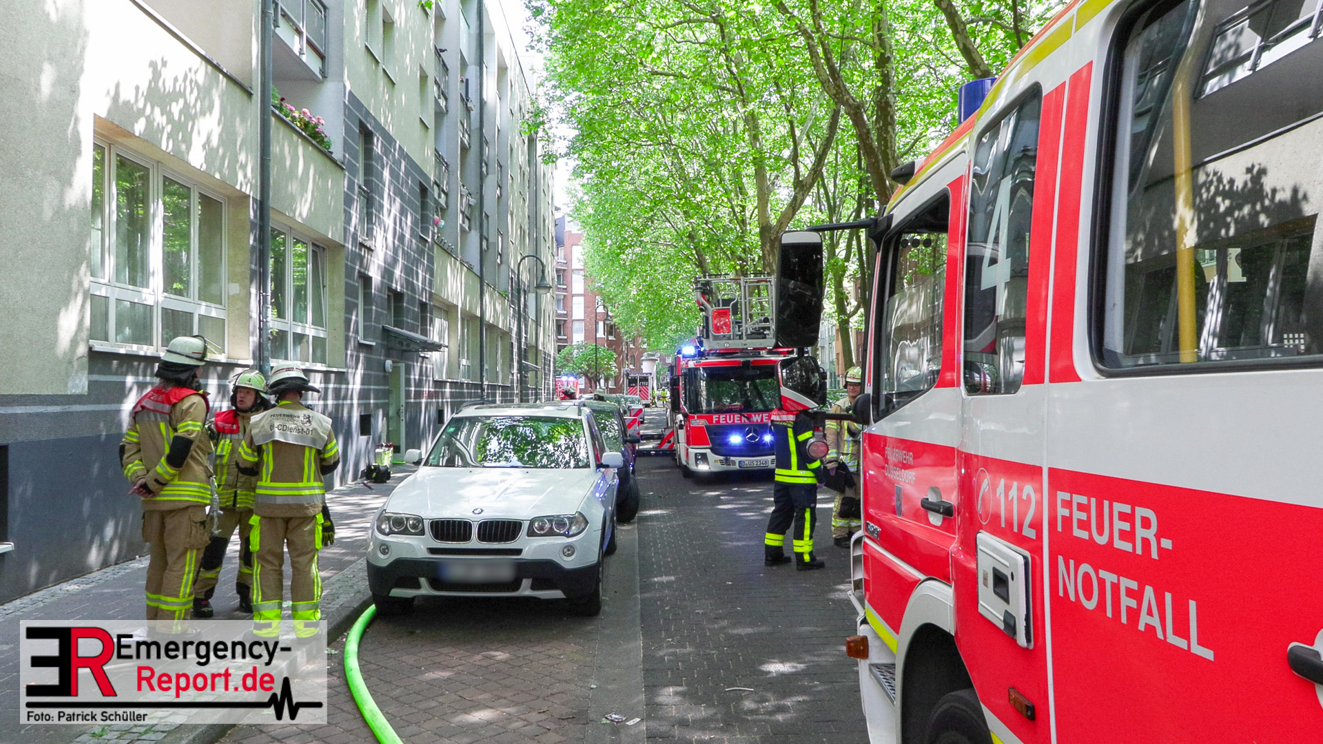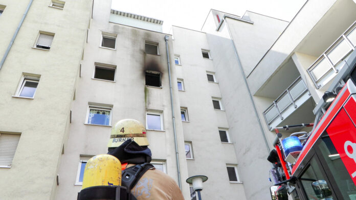 Kurz vor der Mittagszeit kam es in Oberbilk zu einem Feuer in einem Mehrfamilienhaus an der Eisenstraße. Als die ersten Einsatzkräfte an der Einsatzstelle eintrafen, stand die Küche der Wohnung bereits im Vollbrand und der Treppenraum des Hauses war leicht verraucht. Die Bewohnerin der Wohnung konnte sich vor Eintreffen der Rettungskräfte selbst ins Freie retten. Umgehend entsendete der Einsatzleiter einen Löschtrupp zur Brandbekämpfung in die betroffene Wohnung in der 3. Etage und weitere Einsatzkräfte kontrollierten den Treppenraum. Noch während die Löscharbeiten anhielten, verschaffte sich die Feuerwehr einen Überblick über eine mögliche Schadensausbreitung in den angrenzenden Wohnungen und dem Nachbargebäude. Hier konnten die Feuerwehrleute schnell Entwarnung geben: Der Schaden begrenzte sich auf die Brandwohnung. Vorsorglich betreuten Notarzt und Notfallsanitäter zwei Menschen, eine weiterführende medizinische Behandlung in einem Krankenhaus war nicht notwendig. Durch den Brand wurde die Wohnung so in Mitleidenschaft gezogen, dass diese aktuell nicht bewohnbar ist. Die vier Bewohner wurden durch die Landeshauptstadt in eine Ersatzunterkunft untergebracht. Nach rund zweieinhalb Stunden waren die letzten Lüftungsmaßnahmen abgeschlossen und die letzten der etwa 40 Einsatzkräfte kehrten zu ihren Wachen zurück.
