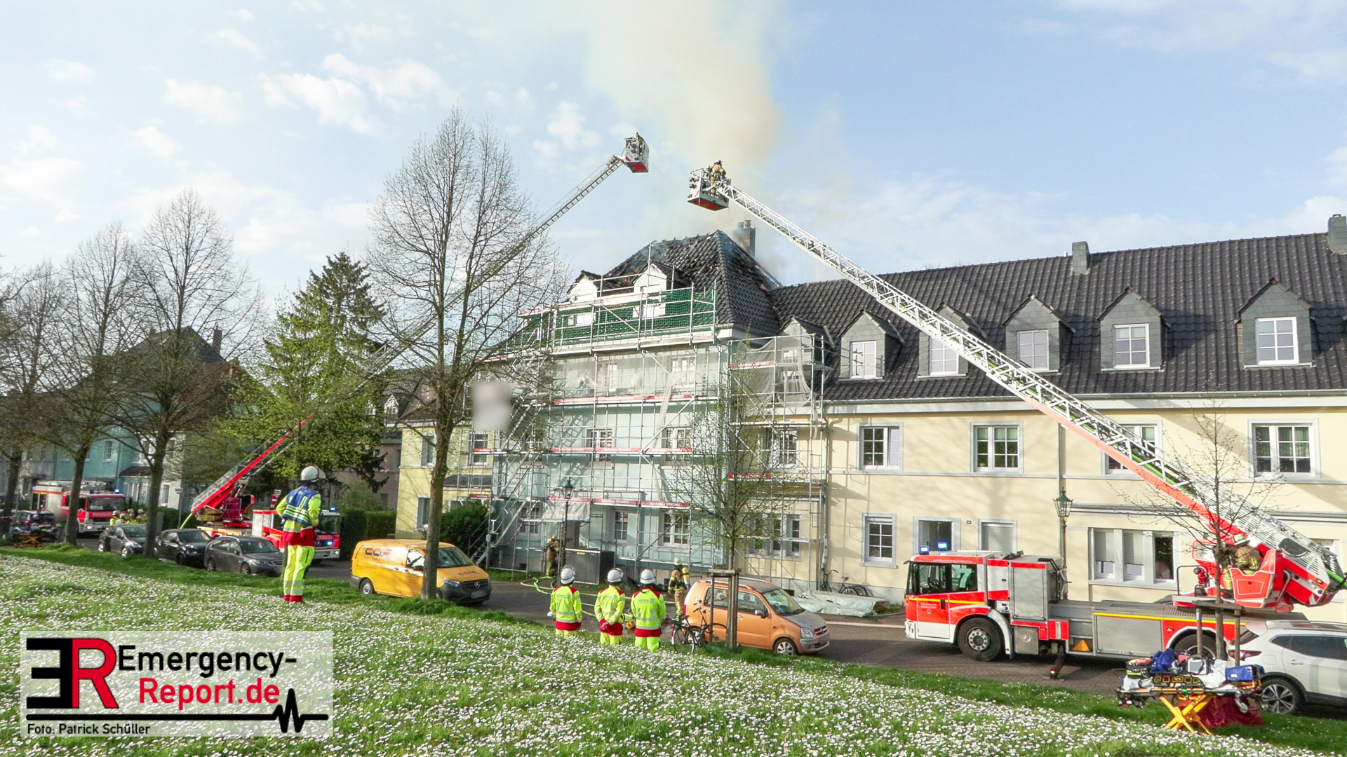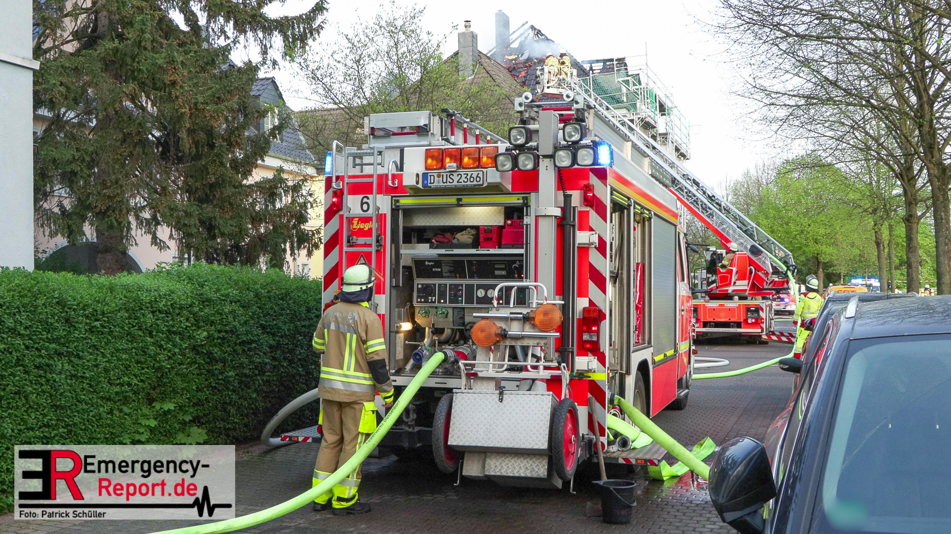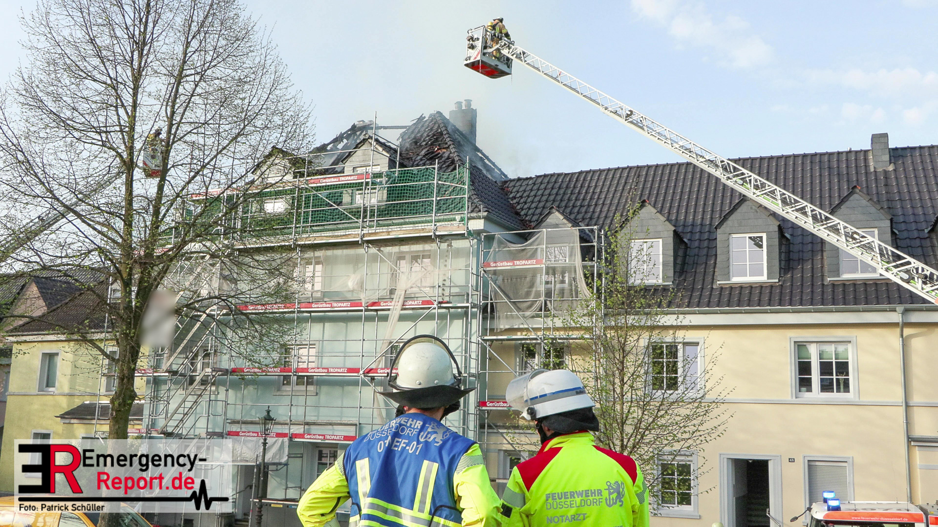 In einem Mehrfamilienhaus kam es am Montagabend zu einem Feuer im Dachbereich. Durch das schnelle und konsequente Eingreifen der Feuerwehr Düsseldorf verhinderten die Einsatzkräfte eine Brandausbreitung auf die benachbarte Wohnbebauung. Aufgrund des Feuers wurde die Dachkonstruktion so beschädigt, dass in einer zeit- und personalintensiven Handarbeit das Dach größtenteils abgedeckt werden musste, um so auch die letzten versteckten Glutnester ausfindig zu machen und abzulöschen. Ebenso war die Standsicherheit der beiden Kamine des Gebäudes nicht mehr gegeben, sodass diese um etwa ein Drittel abgetragen wurden. Die Kriminalpolizei hat die Brandursachenermittlung übernommen. Zum jetzigen Zeitpunkt kann noch keine Schätzung zur Schadenshöhe abgegeben werden.
