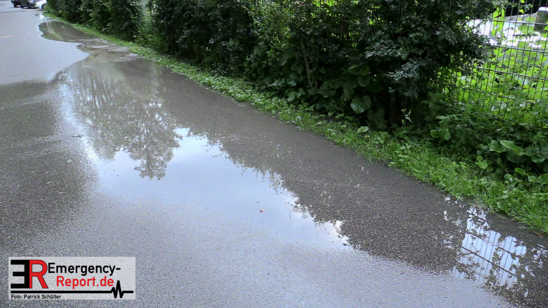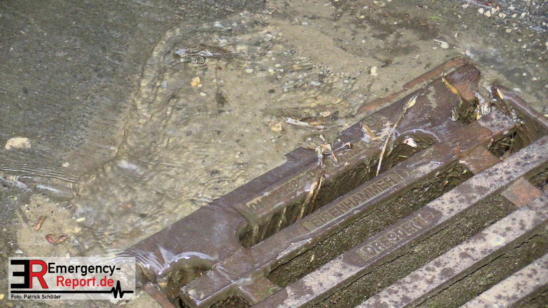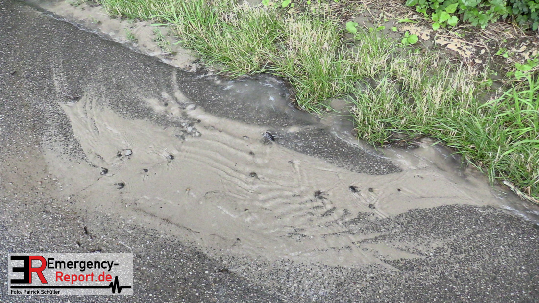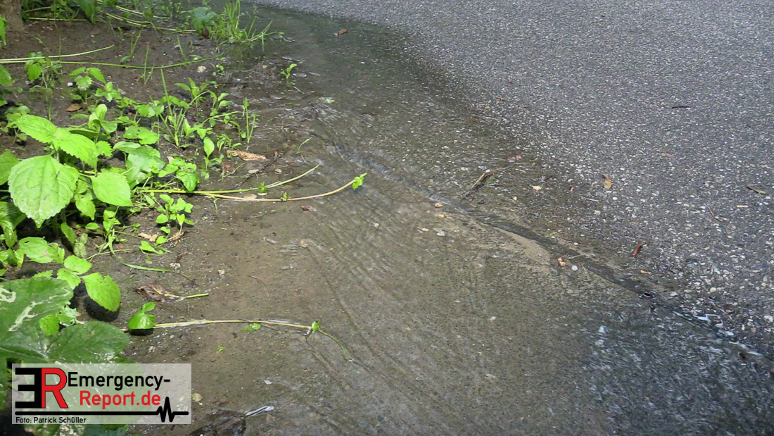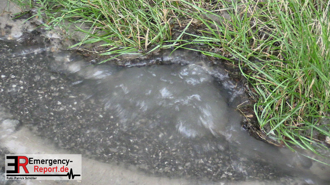 Wasser sprudelte aus mehreren Stellen neben der Fahrbahn. Glücklicherweise lief das Wasser kontrolliert in einen Gully ab, Gebäude waren nicht gefährdet. Durch die Feuerwehr wurden Maßnahmen eingeleitet.