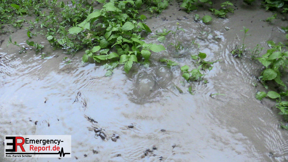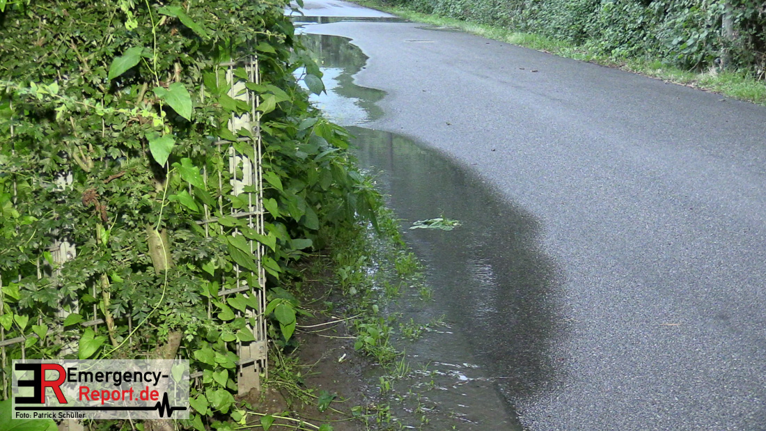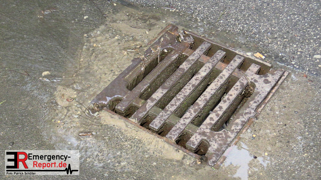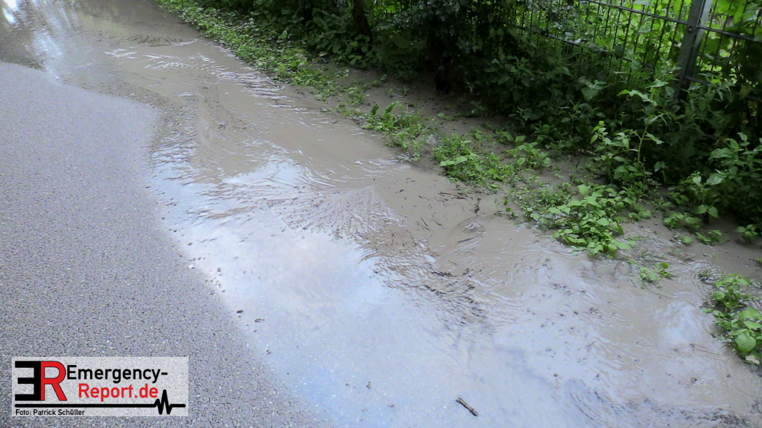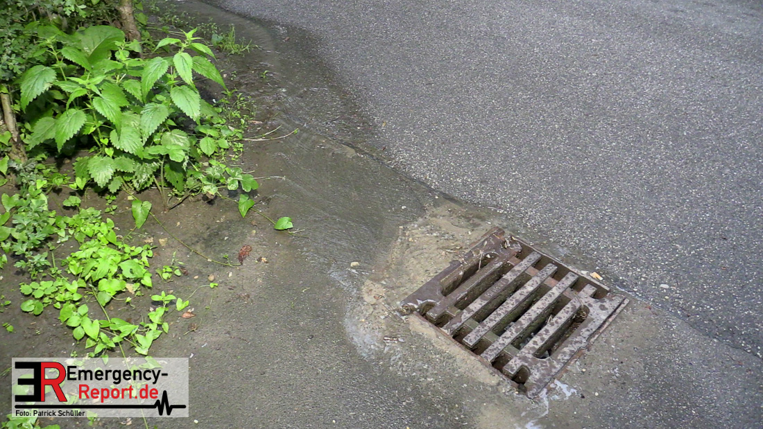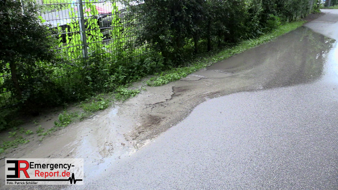 Wasser sprudelte aus mehreren Stellen neben der Fahrbahn. Glücklicherweise lief das Wasser kontrolliert in einen Gully ab, Gebäude waren nicht gefährdet. Durch die Feuerwehr wurden Maßnahmen eingeleitet.