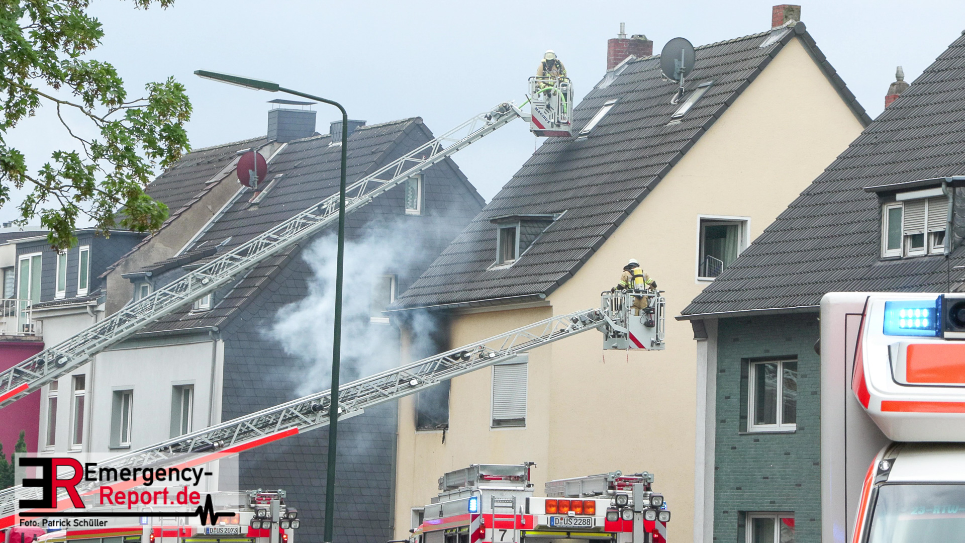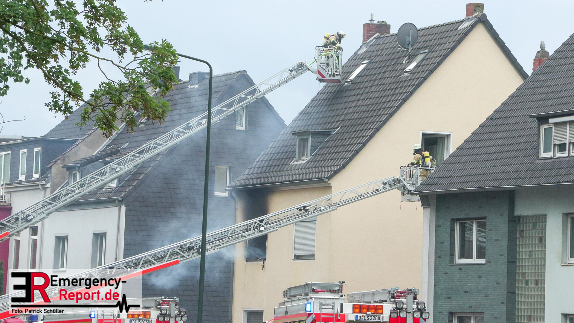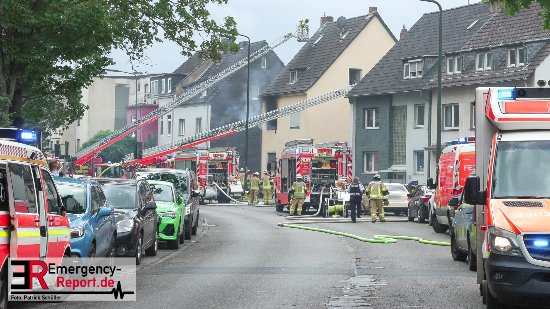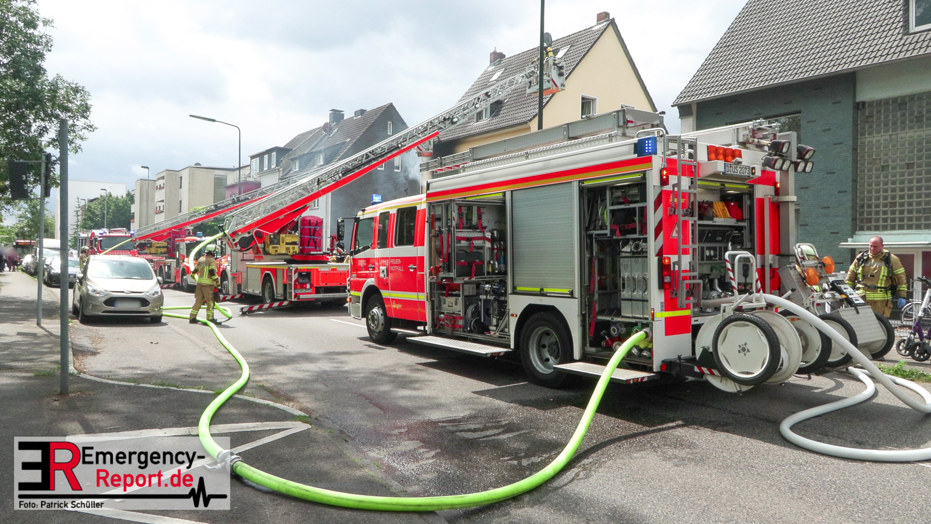 Um kurz nach 13 Uhr gingen mehrere Notrufe bei der Feuerwehr Düsseldorf ein und meldeten einen Wohnungsbrand in einem Mehrfamilienhaus im Stadtteil Hassels. Nur wenige Minuten nach der Alarmierung trafen die ersten Einsatzkräfte ein und bestätigten die gemeldete Lage. Die Flammen schlugen aus den Fenstern im ersten Obergeschoss der Wohnung. In der Anfangsphase war es noch unklar, ob sich Personen in der Wohnung befinden. Der Einsatzleiter vor Ort entsendete umgehend mehrere Trupps unter Atemschutz zur Menschenrettung. Die Bewohner hatten sich jedoch schon vor dem Eintreffen selbstständig aus der Wohnung gerettet. Außerhalb des Hauses stellten die Kräfte des Rettungsdienstes eine Betreuung aller Beteiligten sicher. Zeitgleich erfolgte die Brandbekämpfung mit mehreren C-Rohren. Der Löschangriff wurde dabei sowohl vom Inneren des Objektes als auch von außen vorgenommen. Nach kurzer Zeit konnten die Kräfte die Rückmeldung geben, dass das Feuer in Gewalt sei und die Nachlöscharbeiten beginnen. Drei Anwohner, darunter ein 12jähriges Kind, wurden durch den Rettungsdienst versorgt und zur weiteren Behandlung in eine Druckkammer der Uniklinik transportiert. Nach Abschluss der Brandbekämpfung erfolgten umfangreiche Lüftungsmaßnahmen des gesamten Wohngebäudes. Aufgrund der Rauchausbreitung und des Brandes ist das Wohnobjekt derzeit unbewohnbar. Die Stadtwerke musste aufgrund der massiven Beschädigungen die Strom,-Gas,- sowie Wasserzufuhr des gesamten Hauses absperren. Die Unterbringung aller Bewohner wurde sichergestellt. Zur Brandursache hat die Polizei die Ermittlung aufgenommen.