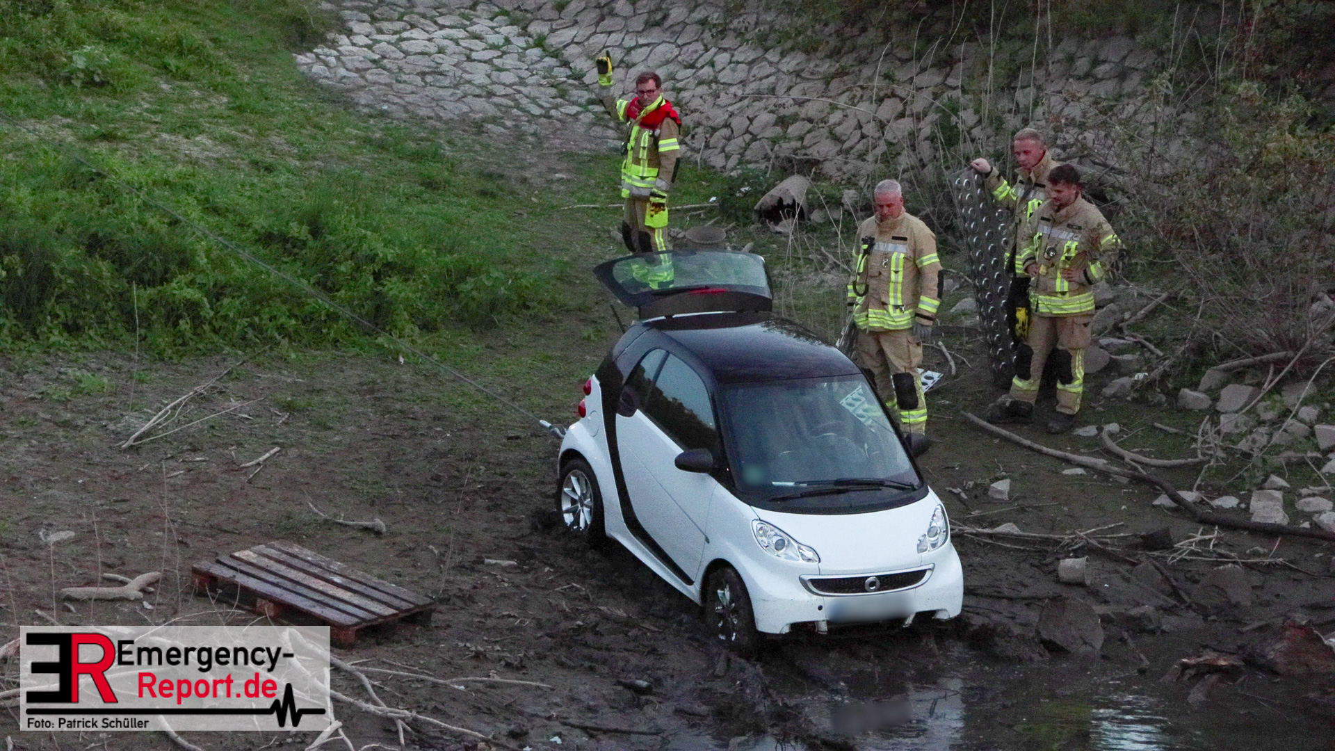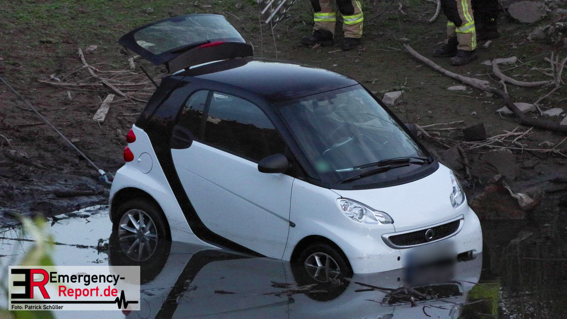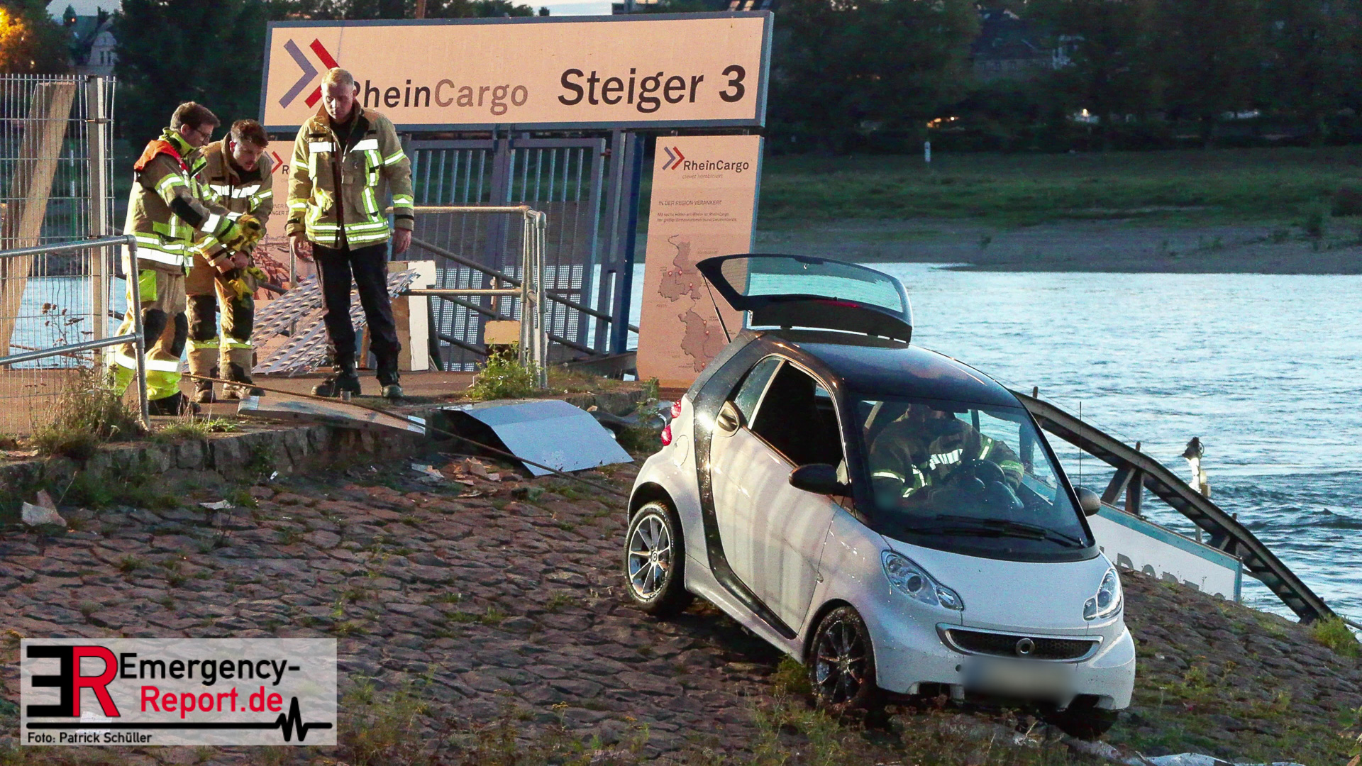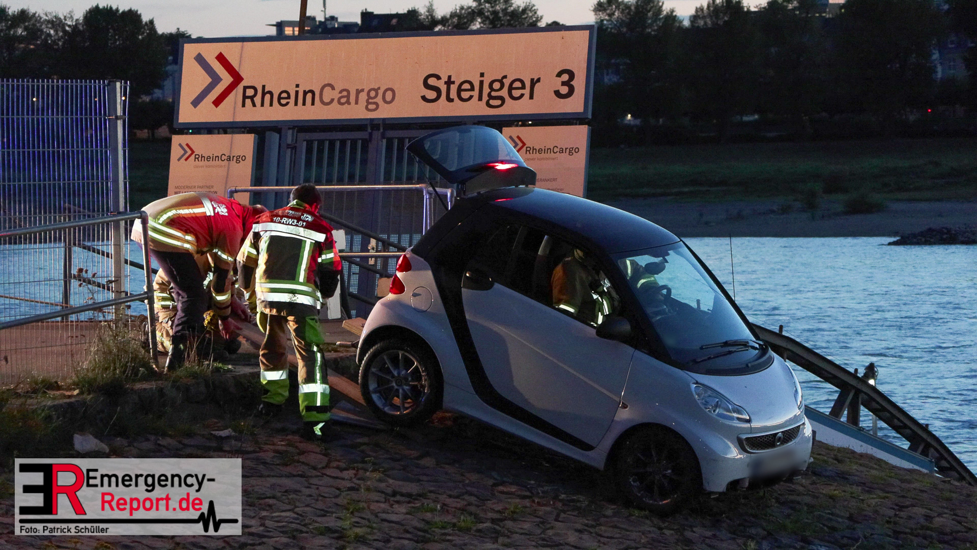 Am Abend des 08.09.2024 kam es in Düsseldorf, am Robert-Lehr-Ufer, zu einem kuriosen Unfall. Ein Smart war eine steile Uferböschung hinuntergerollt und im Wasser zum Stehen gekommen. Das Auto wurde durch die Feuerwehr, mittels Seilwinde eines Rüstwagens, geborgen. Verletzt wurde niemand.