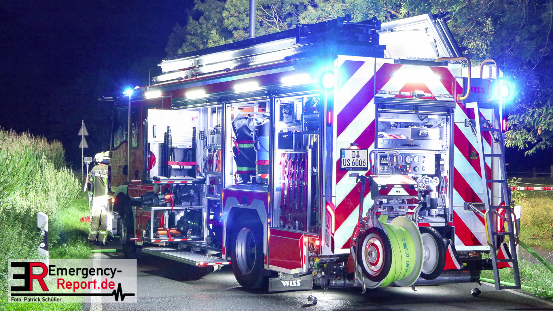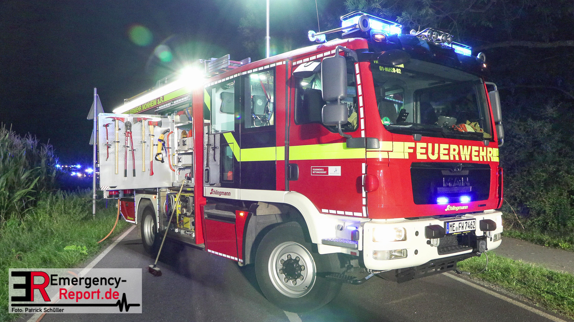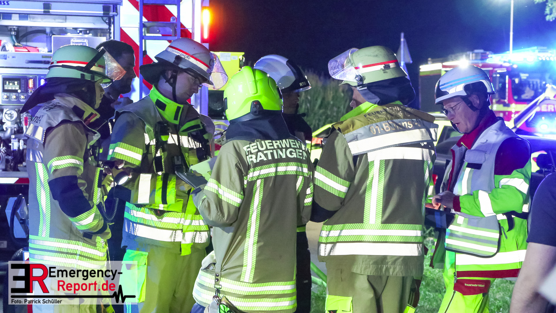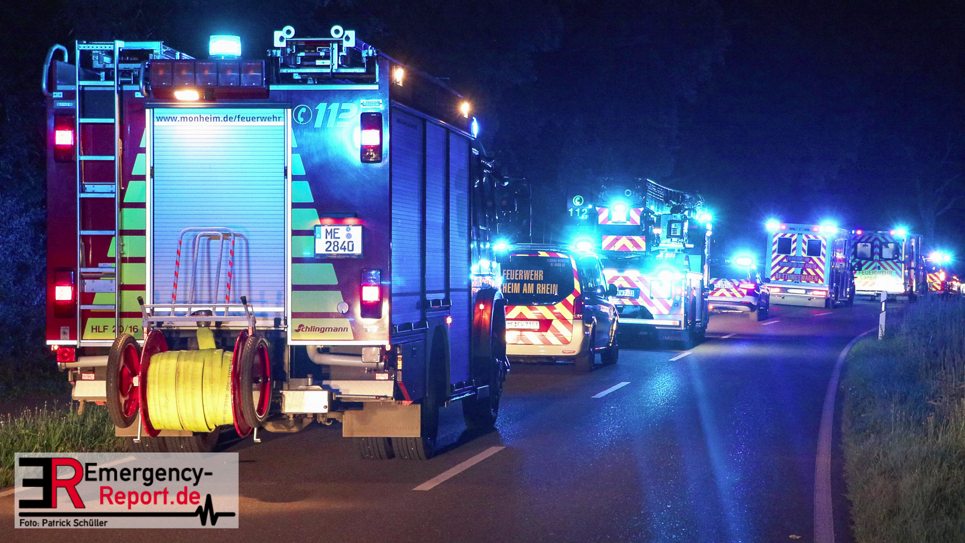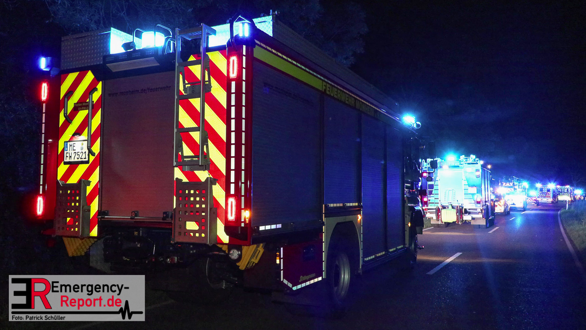 Am späten Samstagabend erreichte die Leitstelle der Feuerwehr Düsseldorf die Meldung über einen Verkehrsunfall auf dem Baumberger Weg im Stadtteil Urdenbach. Umgehend entsandte die Leitstelle mehrere Einheiten von Feuerwehr und Rettungsdienst zur Einsatzstelle. Da sich die Einsatzstelle in der Nähe der Stadtgrenze zu Monheim am Rhein befand, waren ebenfalls Einsatzkräfte aus Monheim am Einsatz beteiligt. Als die ersten Einsatzkräfte nur wenige Minuten später vor Ort eintrafen, fanden sie einen Pkw nach einem Alleinunfall vor. Die fünf Fahrzeuginsassen befanden sich bereits außerhalb des Fahrzeugs. Vier von ihnen waren lebensgefährlich verletzt, für einen Menschen kam bereits jede Hilfe zu spät. Sofort versorgten die Notärzte und Notfallsanitäter die Verletzten. Zur Unterstützung forderte der Einsatzleiter weitere Rettungsdiensteinheiten sowie einen Rettungshubschrauber aus Dortmund an. Trotz der sofort eingeleiteten medizinischen Versorgung verstarb eine weitere Person noch an der Einsatzstelle. Die anderen drei Fahrzeuginsassen transportierte der Rettungsdienst in Düsseldorfer Krankenhäuser.