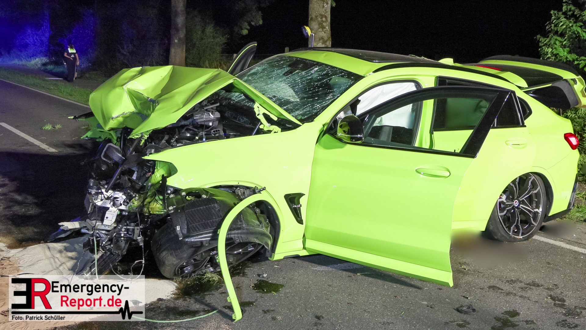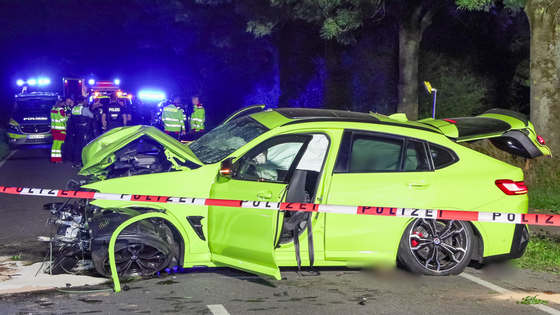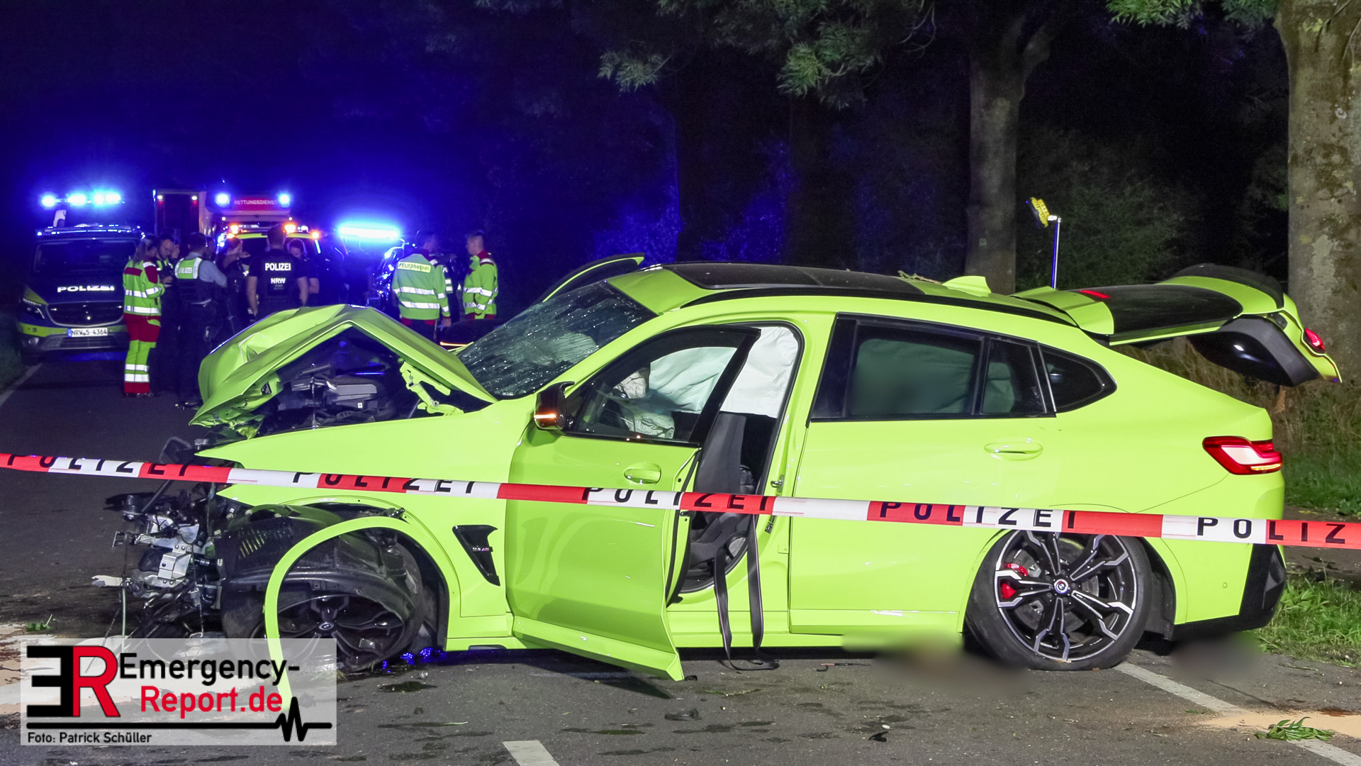 Gegen 23:40 Uhr wurden Polizei und Feuerwehr von einem Zeugen zu einem Verkehrsunfall am Urdenbacher Weg im Stadtteil Baumberg alarmiert. Der Fahrer eines BMW X4 M Competition war in Richtung Düsseldorf-Urdenbach unterwegs gewesen, als er in einer leichten Rechtskurve nach links von der Fahrbahn abkam und mit zwei Bäumen kollidierte. Stark verunfallt war der leistungsstarke SUV anschließend auf der Straße zum Stillstand gekommen.