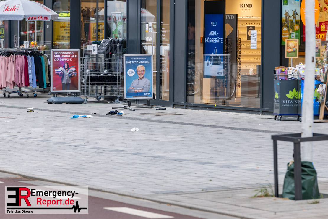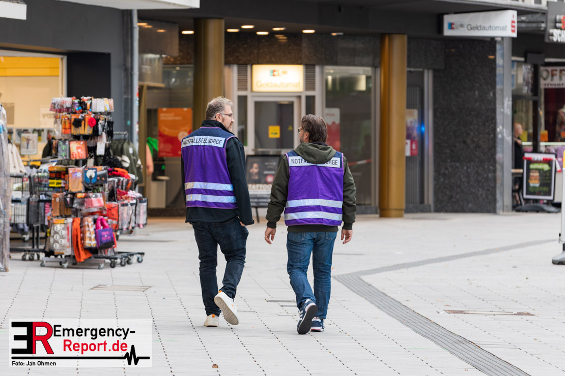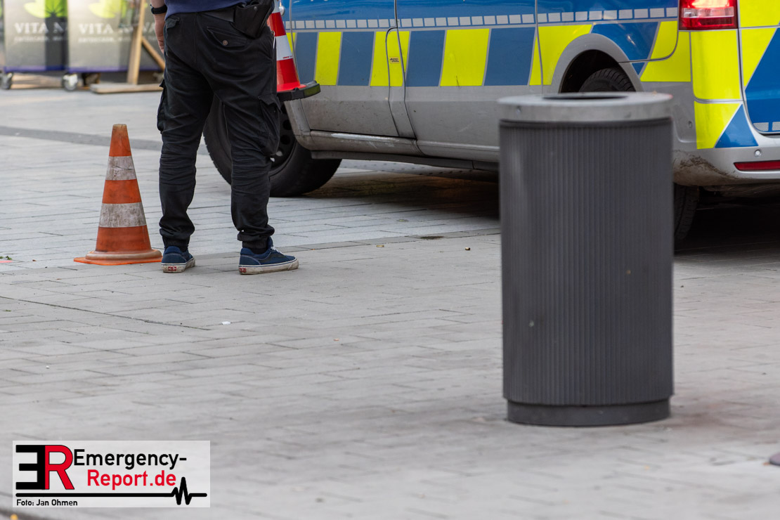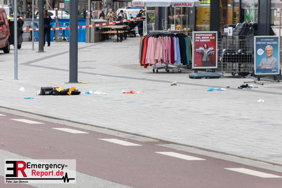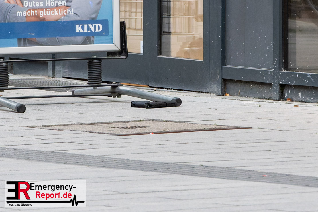 Nach bisherigen Erkenntnissen soll der Verletzte zuvor durch einen Kaufhausdetektiv angesprochen worden sein. Er habe den Kaufhausmitarbeiter daraufhin mit einer Schusswaffe bedroht und sei vor diesem geflüchtet. Wie zahlreiche Zeugen berichteten, hätten die eintreffenden Polizisten den 40-Jährigen zunächst mehrfach lautstark aufgefordert, die Waffe abzulegen. Dieser habe stattdessen die Waffe hochgehoben, eine Schussposition eingenommen und in Richtung der Beamten gezielt. In diesem Moment sei es zum Gebrauch der Dienstwaffen durch die Polizeibeamten gekommen. Der 40-Jährige sei dann zu Boden gegangen. Die bislang ausgewerteten Videosequenzen decken sich mit den Aussagen der Zeugen. Bei dem Mann konnte die anschließend sichergestellte Schreckschusswaffe gefunden werden.