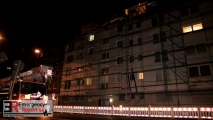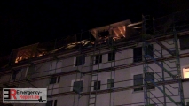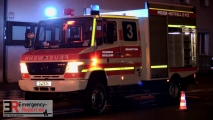 Kurz vor 19 Uhr erreichte die Leitstelle ein Notruf, dass es in einem Wohnhaus zu einem Wasserschaden gekommen ist. Aufgrund der Meldung entsendete der Leitstellendisponent umgehend ein Kleinsteinsatzfahrzeug zur Einsatzstelle. Die Besatzung vor Ort konnte als Ursache für den Wasserschaden ein undichtes Dach, welches zurzeit saniert wird, ausmachen. Aufgrund der besonderen Umstände wurde Unterstützung angefordert. Zur Unterstützung der Einsatzkräfte vor Ort entsendete die Leitstelle den Führungsdienst, ein Löschfahrzeug, Sonderfahrzeuge und die Höhenretter zur Einsatzstelle und informierte das Bauaufsichtsamt. Der Wasserschaden war schon so groß, dass in Absprache mit dem Bauaufsichtsamt die Wohnungen im dritten und vierten Obergeschoss geräumt werden mussten. Die betroffenen Bewohner kamen in Hotels, die von der Feuerwehr organisiert wurden, unter. Um einen noch größeren Schaden zu vermeiden, wurden der Hausflur und der Kellerabgang mit Sandsäcken gesichert. Während des Feuerwehreinsatzes wurde der Wind immer stärker, sodass das Baumaterial auf dem Dach von den Höhenrettern der Feuerwehr gesichert wurde.
