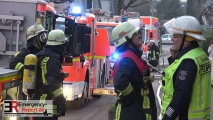Durch den Anrufer konnten sehr hilfreiche Angaben zu den sich noch im Objekt vermuteten Personen gemacht werden. Unverzüglich machten sich Einheiten der Feuerwache 7 (Wersten), Feuerwache 1 (Innenstadt) und der Wache 10 (Lierenfeld) auf den Weg. An der Einsatzstelle eingetroffen, wurden gleichzeitig mehrere Löschtrupps zur Menschenrettung und Brandbekämpfung im Gebäude eingesetzt. Nach nur kurzer Zeit konnten drei Bewohner durch die Löschtrupps ins Freie verbracht werden, um sie dort rettungsdienstlich behandeln zu lassen. Nachdem alle Bewohner in Sicherheit waren, konzentrierten sich die Maßnahmen der Feuerwehr vollumfänglich auf das Löschen des Feuers. Mit mehreren Rohren und zwei Drehleitern konnte das Feuer schnell bekämpft werden. Das Einfamilienhaus wurde von der Strom- und Gasversorgung getrennt.