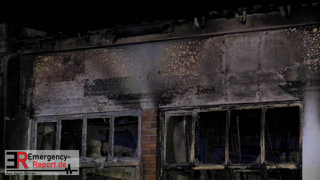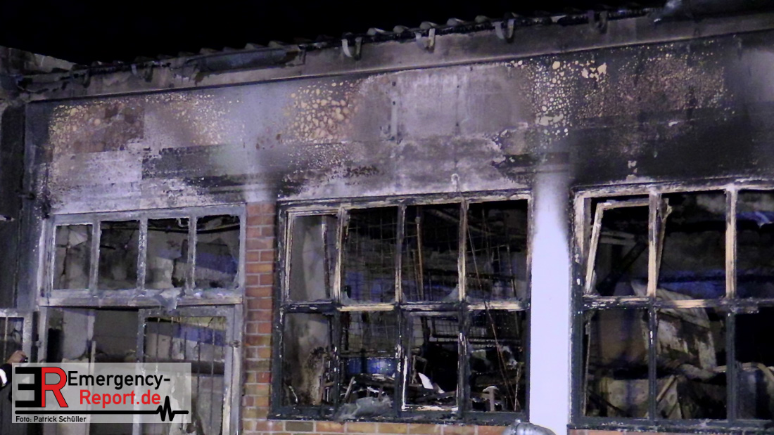 Über die Notrufnummern 112 erhielten die Disponenten der Feuerwehr Leitstelle am frühen Donnerstagmorgen die Meldung über einen Brand an der Einbrunger Straße in Wittlaer. Sofort alarmierte der Leitstellenmitarbeiter mehrere Feuerwehreinheiten der Berufs- und Freiwilligen Feuerwehr zur gemeldeten Einsatzadresse. Als die ersten Einheiten wenige Minuten später eintrafen, brannte das 8 mal 15 Meter große Gebäude bereits lichterloh. Sofort ließ der Einsatzleiter drei Löschtrupps einsetzen, um die Flammen zu bekämpfen. Da anfangs nicht klar war, was in der Halle gelagert war, mussten mehrere Fenster gewaltsam geöffnet werden. Der erste Löschangriff erfolgt zunächst von außen, im weiteren Verlauf wurde eine Tür durch die Einsatzkräfte ebenfalls gewaltsam geöffnet, sodass die Löscharbeiten im Inneren fortgeführt werden konnten. Bei der Kontrolle des Gebäudes fanden die Einsatzkräfte zwei Gasflaschen, die sofort ins Freie gebracht wurden. Die Flammen konnten schnell unter Kontrolle gebracht werden, sodass um 2.44 Uhr nur noch einige Glutnester vorhanden waren. Dem Löschwasser wurde ein Netzmittel beigefügt, damit konnten die tiefer liegenden Brandnester erreicht werden. In der 120 Quadratmeter großen Lagerhalle für Garten- und Landmaschine waren ebenfalls Betriebsstoffe für die Maschinen gelagert, die teilweise durch den Brand sich mit dem Löschwasser vermischten. Ein Mitarbeiter des städtischen Umweltamtes begleitet in diesem Zuge die Einsatzmaßnahmen der Feuerwehr. Für die Nachlöscharbeiten mussten die Feuerwehrleute die Decken- und Wandverkleidungen öffnen und kontrollierten diese mit einer Wärmebildkamera. Da die Gerätschaften im Gebäude größtenteils zerstört oder stark beschädigt wurden – es handelte sich dabei um Traktoren, Rasenmäher und motorbetriebene Gartengeräte – schätzt der Einsatzleiter der Feuerwehr den entstandenen Sachschaden auf mindestens 300.000 Euro. Aufgrund der unklaren Brandursache hat die Kriminalpolizei die Ermittlungen aufgenommen. Bei dem Feuer kamen keine Menschen zu Schaden.