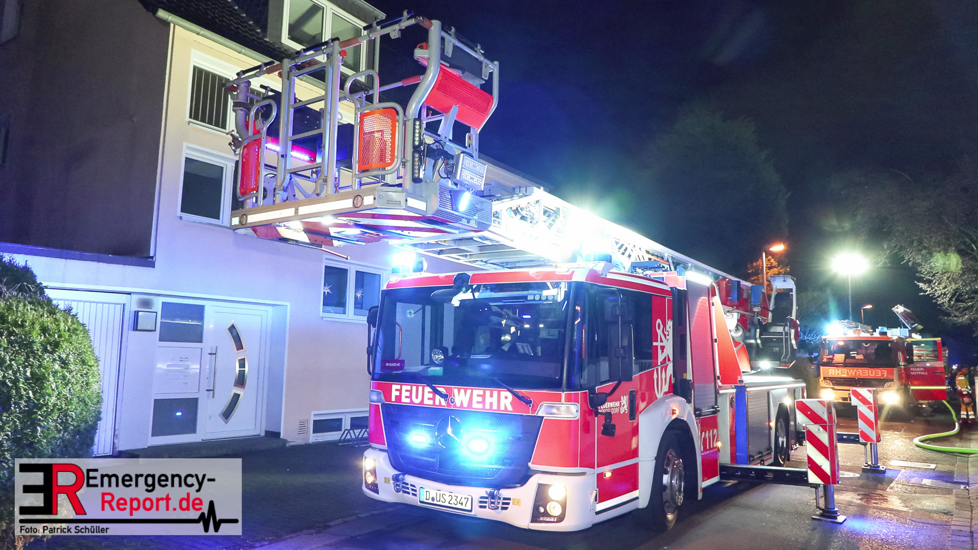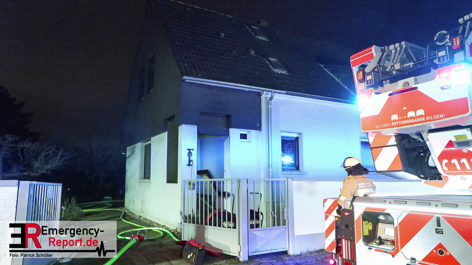 Gegen 17 Uhr erreichte die Leitstelle der Feuerwehr Düsseldorf ein Notruf, dass es in einem Wohnhaus brennt. Die ersten Einsatzkräfte trafen bereits nach 5 Minuten an der gemeldeten Einsatzadresse ein. Der Einsatzleiter stellte einen in Vollbrand stehenden Anbau im rückwärtigen Bereich einer Doppelhaushälfte fest und leitete umgehend eine Brandbekämpfung ein. Die Bewohner hatten bereits vor dem Eintreffen der Feuerwehr das Gebäude verlassen. Beide Personen wurden von den Notfallsanitätern rettungsdienstlich auf eine Rauchvergiftung und andere Verletzungen untersucht. Eine Person hat sich Verbrennungen zugezogen und musste in ein Krankenhaus transportiert werden. Die andere Person blieb unverletzt. Für die Brandbekämpfung wurden zwei Trupps unter Atemschutz und einem C-Rohr im Gebäude und außerhalb des Gebäudes eingesetzt. Parallel kontrollierten weitere Einsatzkräfte das Nachbargebäude und konnten hier ebenfalls eine Verrauchung des Gebäudes feststellen. Nach 10 Minuten konnte vom Einsatzleiter Feuer unter Kontrolle gemeldet werden und es mussten noch einige Glutnester abgelöscht werden. Beide Doppelhaushälften wurden mittels Hochleistungslüftern vom Brandrauch befreit.